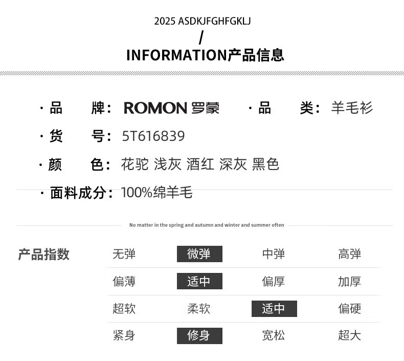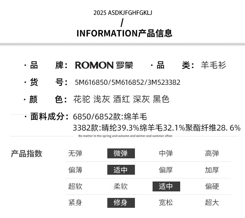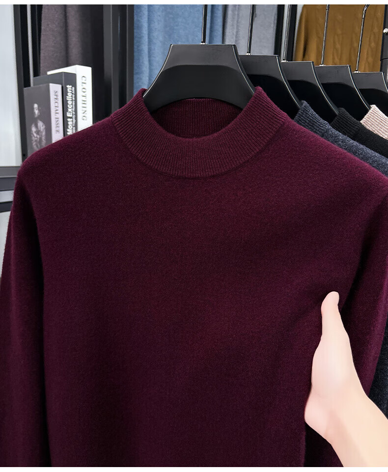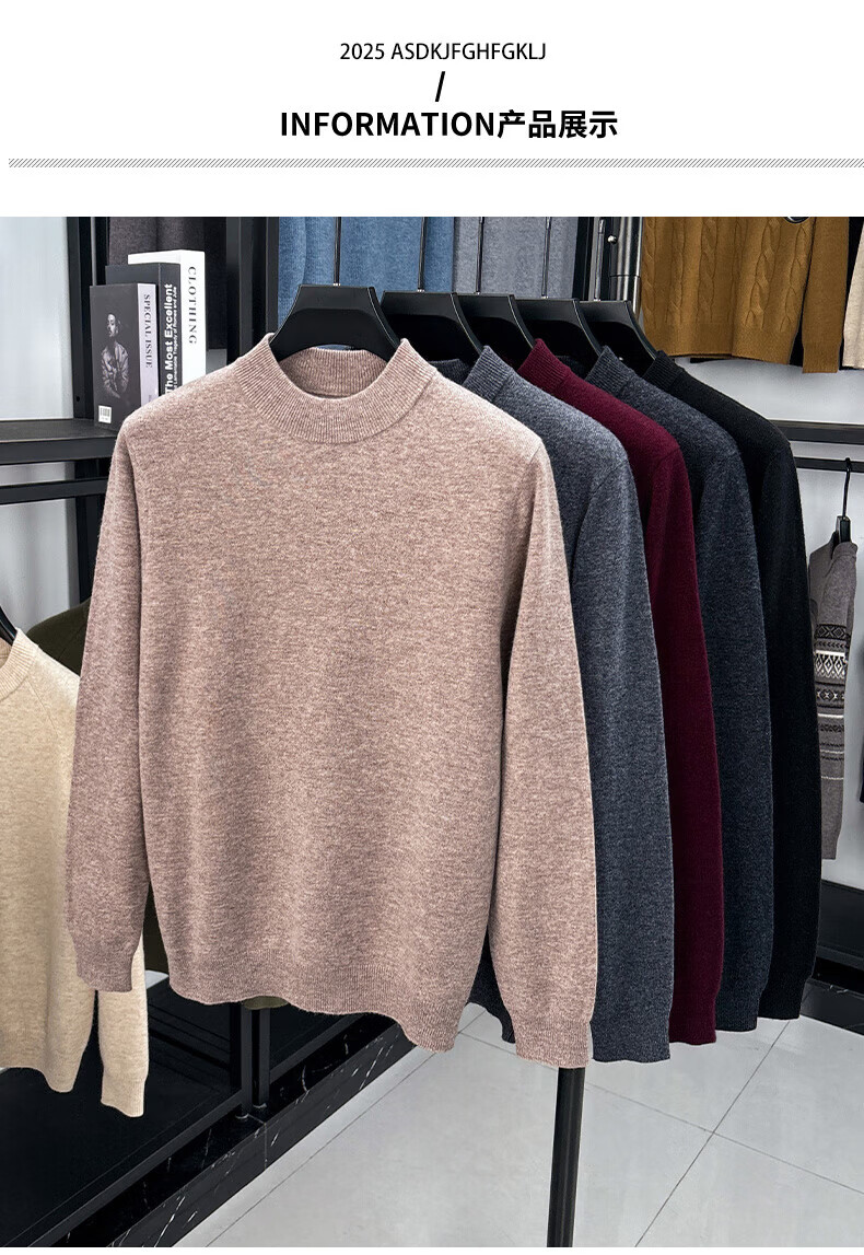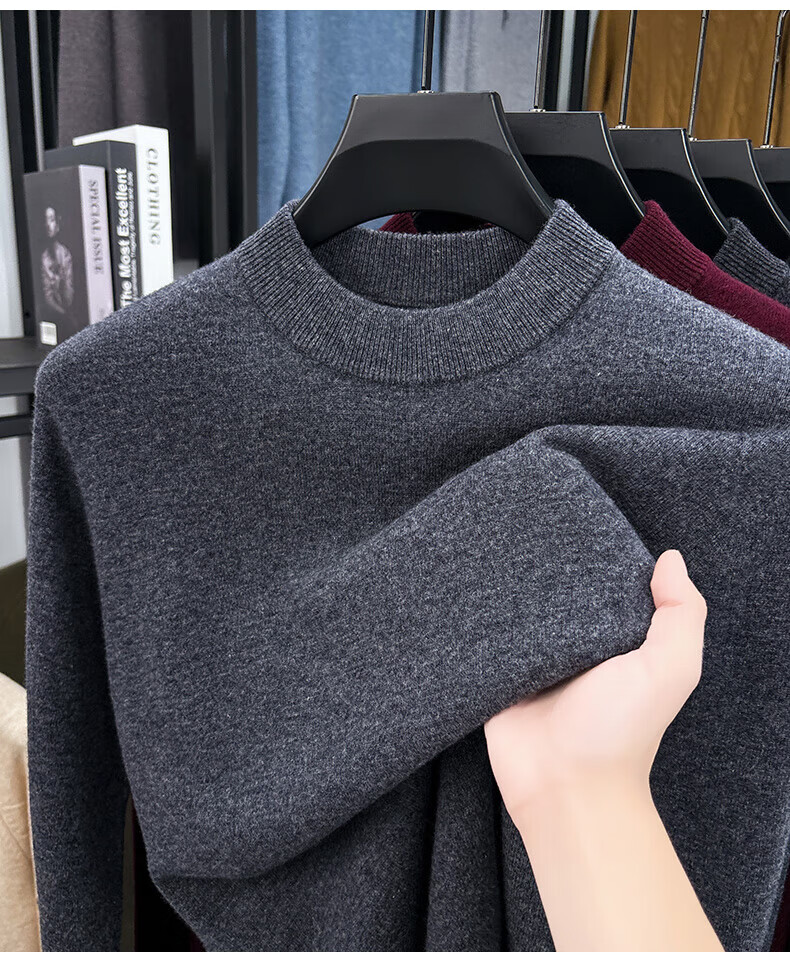 Romon 100% pure wool sweater for men, autumn and winter, young and middle-aged casual solid color bottoming shirt, warm sweater sweater top 5M616850 light gray pure wool L 175 (suitable for 140-155Jin Jin equals 0.5 kg)