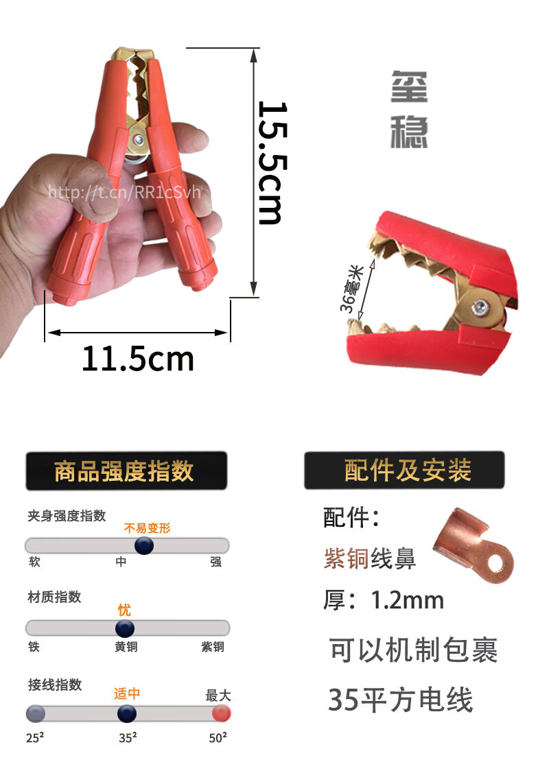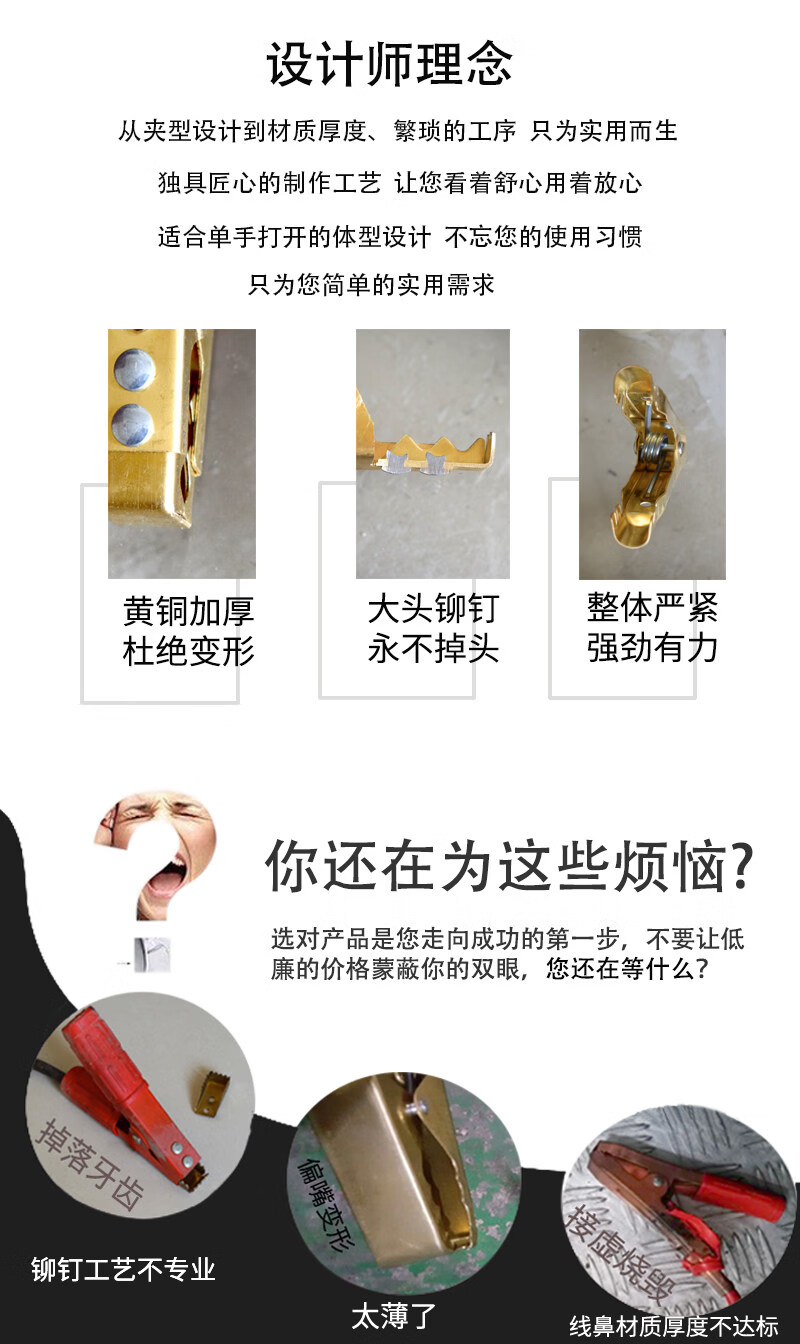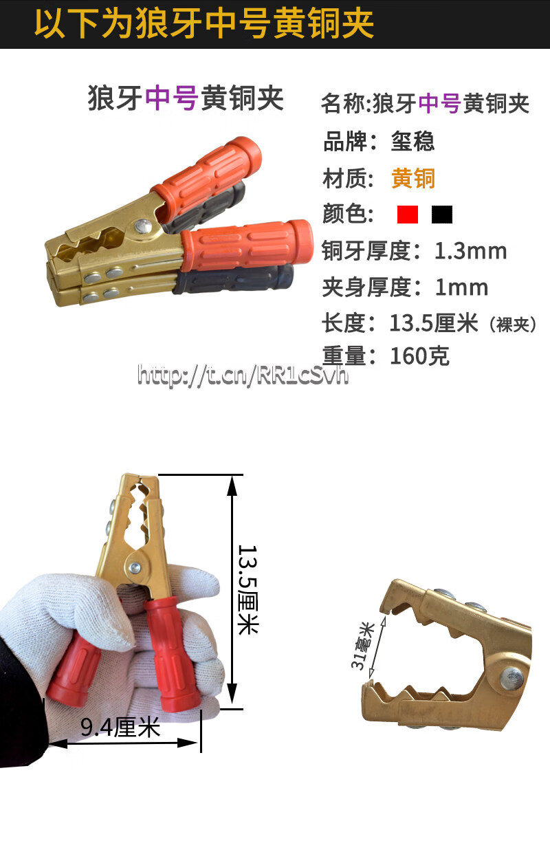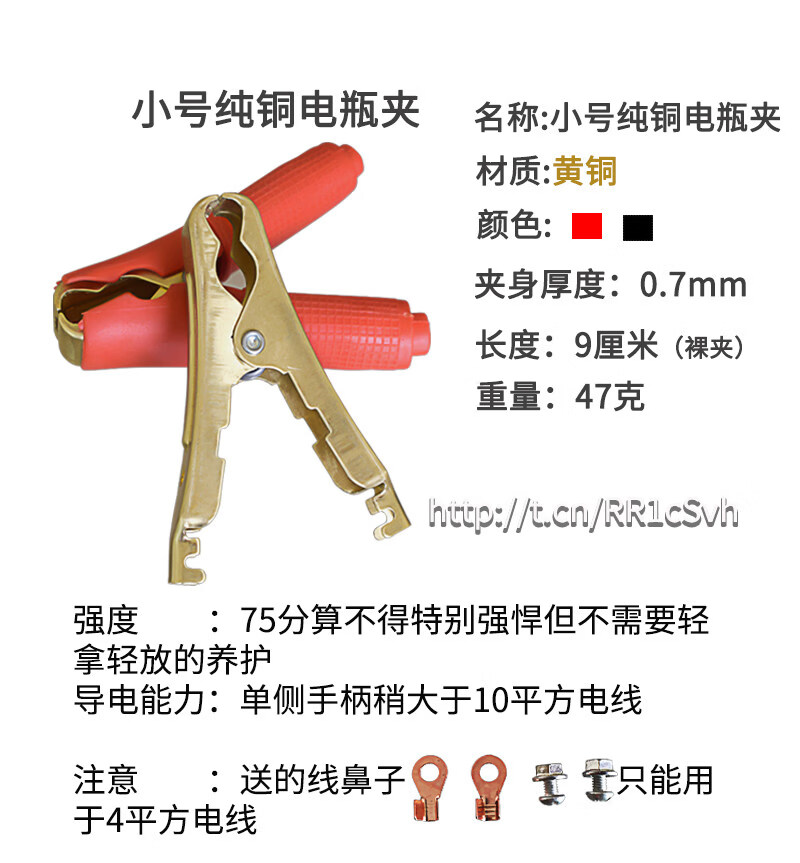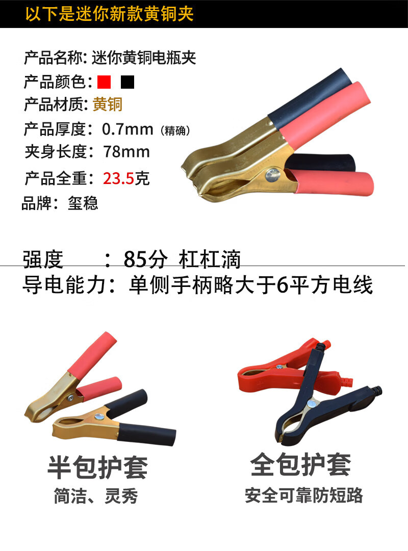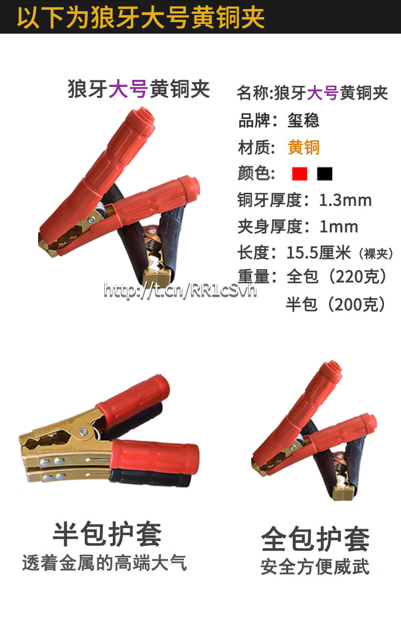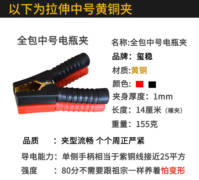 Gongma Battery Pure Copper Thickened Car Battery Battery Connection with Live Wire to Help Large Crocodile Power Supply Crossing the River Dragon Clips Wolf Tooth Medium Brass Clips 12 PCs 6 Black 6 Red