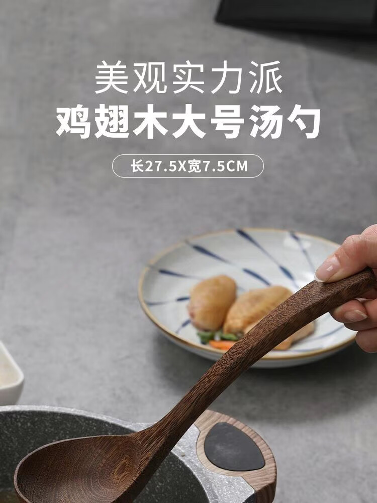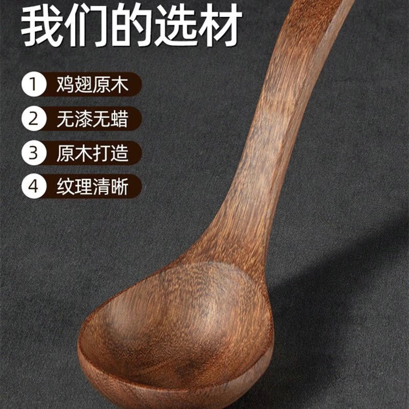 Kaooseen chicken wing wooden spoon large soup drinking soup deepening wooden spoon unpainted wooden household kitchen porridge spoon porridge spoon 27cm chicken wing wooden spoon 1 pack
