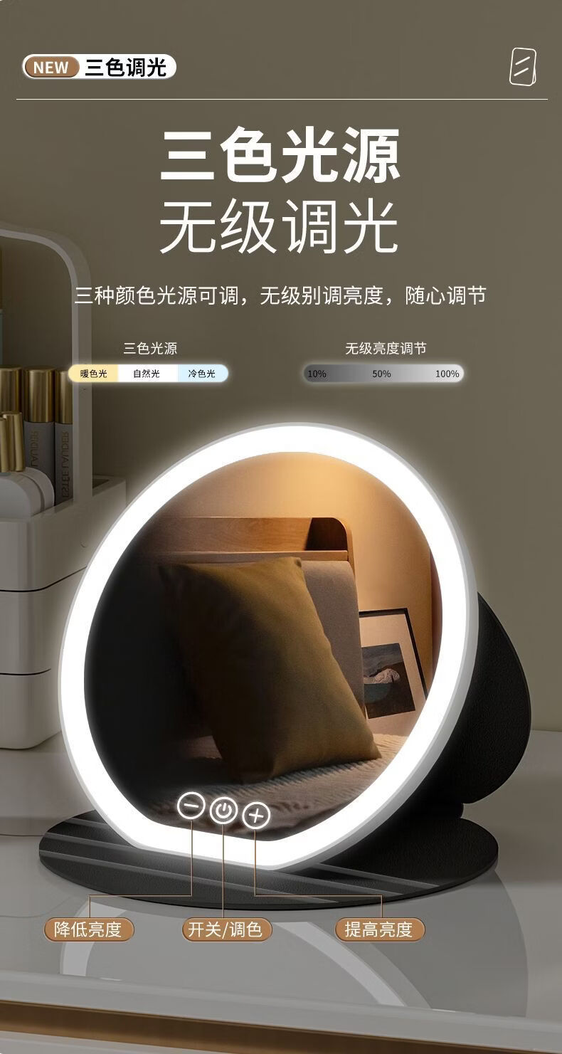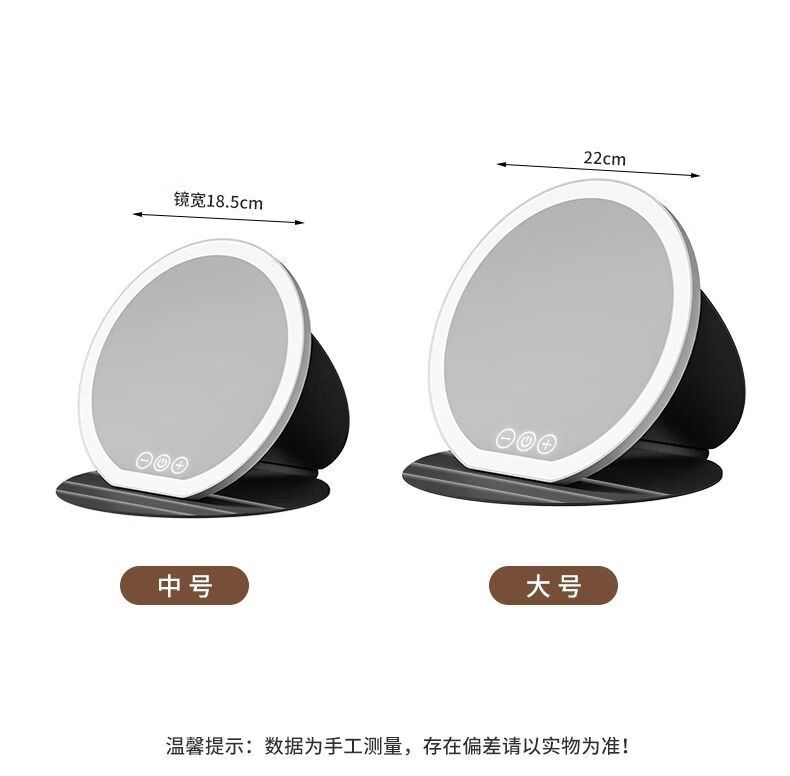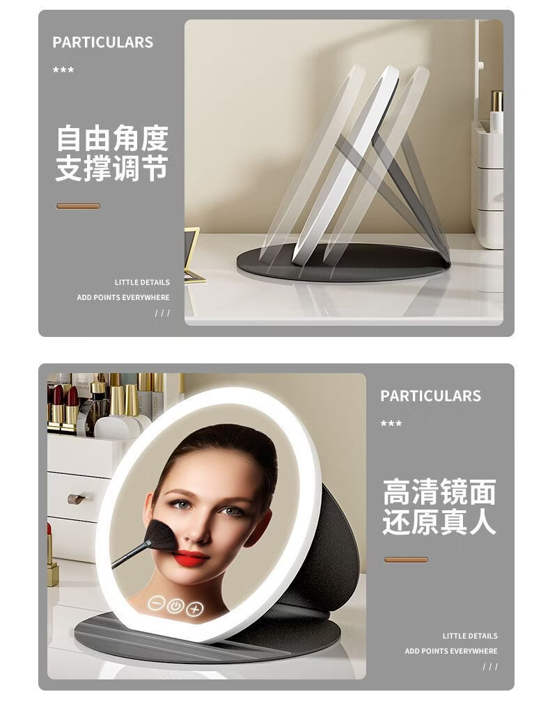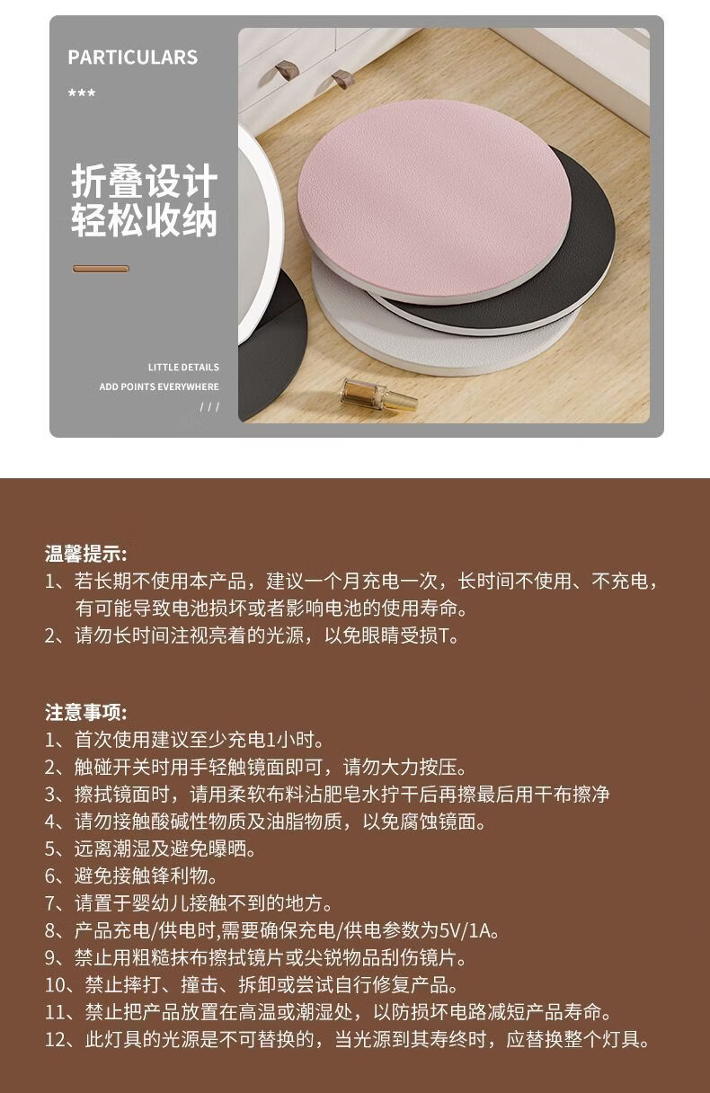 LED makeup mirror rechargeable PU leather shell portable folding mirror table top lighted dressing mirror office dormitory supplementary light medium simple black rechargeable round PU folding model