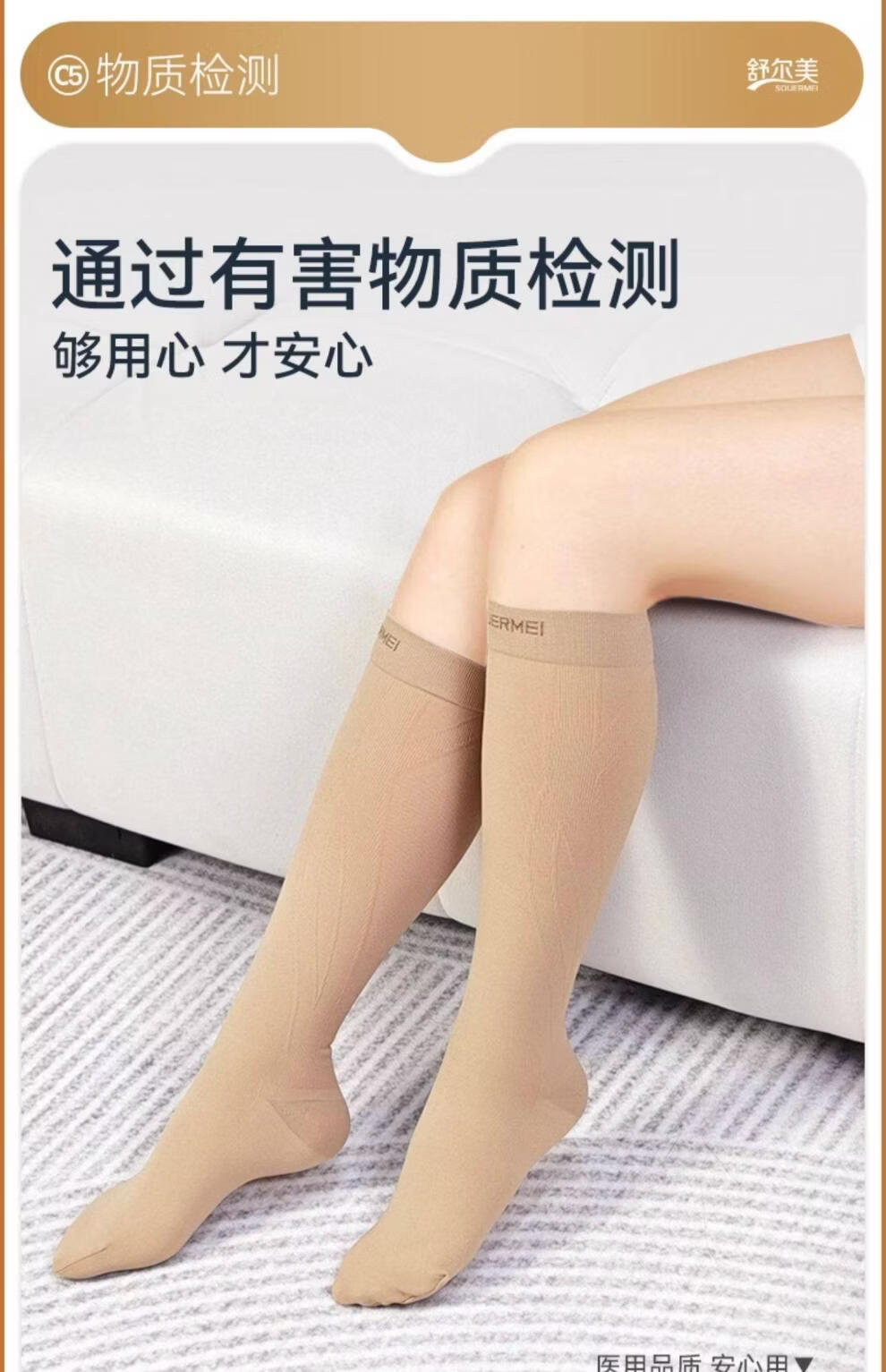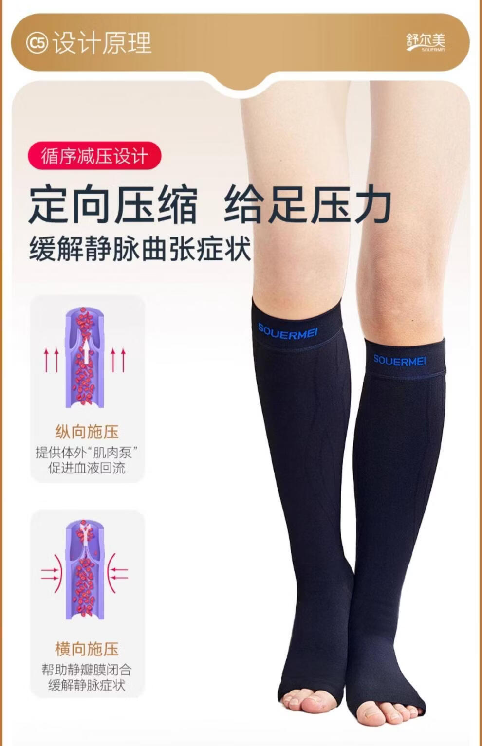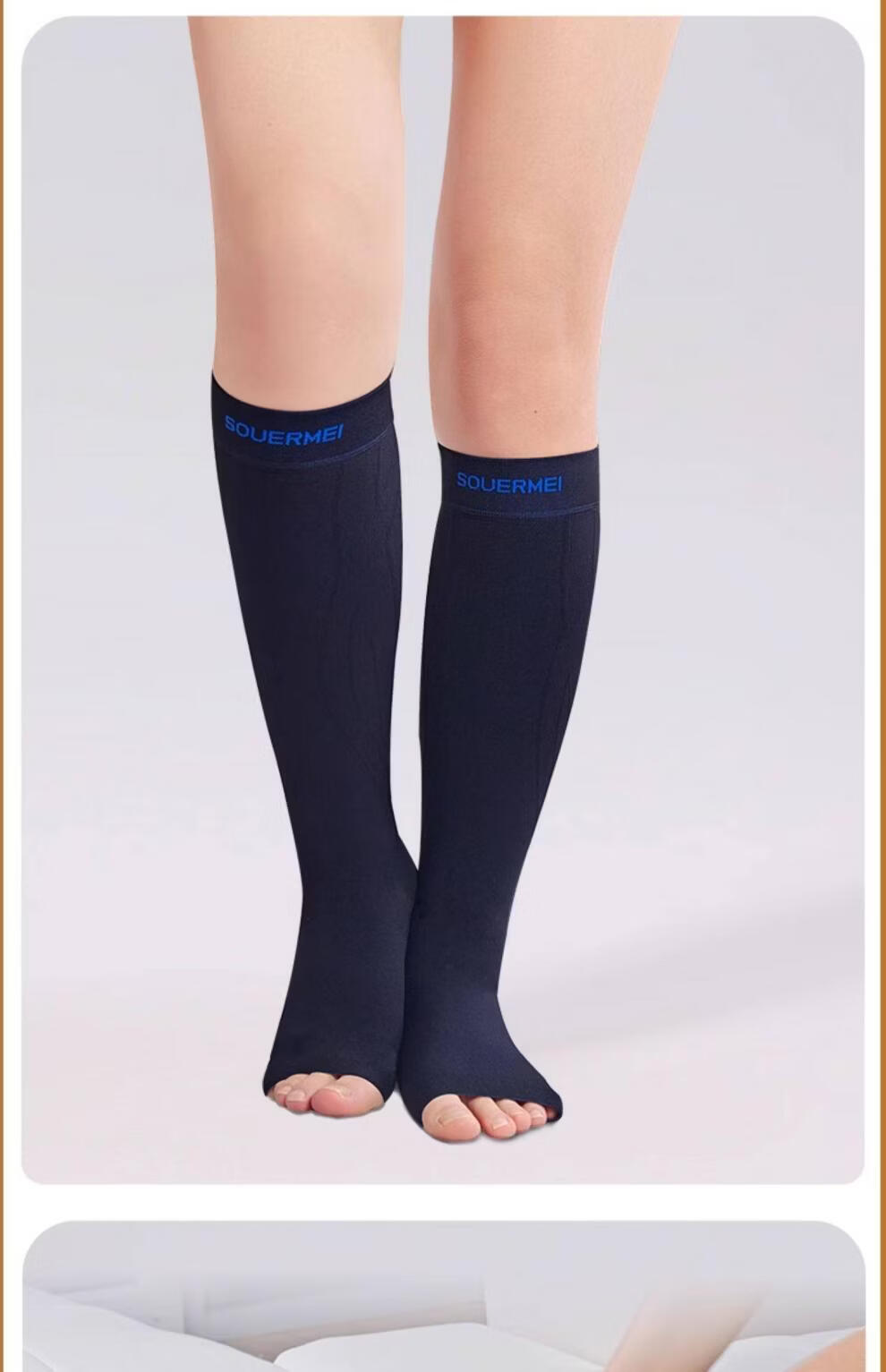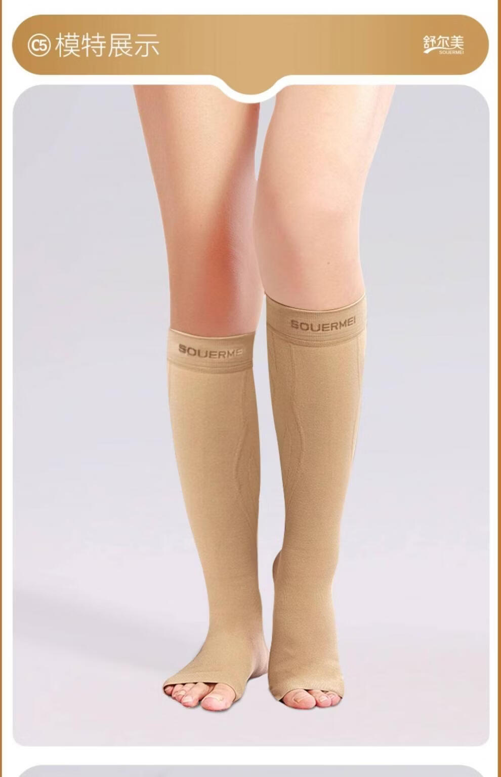 SOUERMEI anti-varicose vein medical elastic socks therapeutic expansion official women's and men's mid-calf sports socks high-end series C5Pro500 natural skin (medical grade one) open toe S