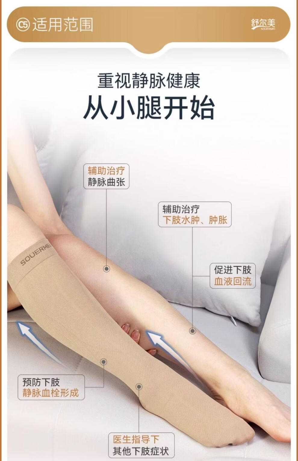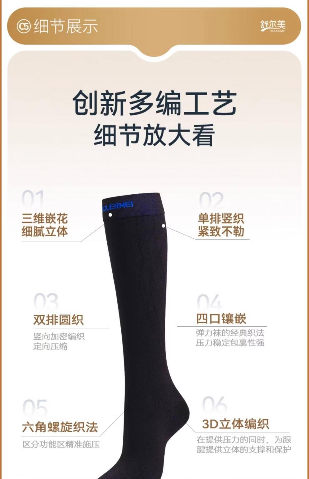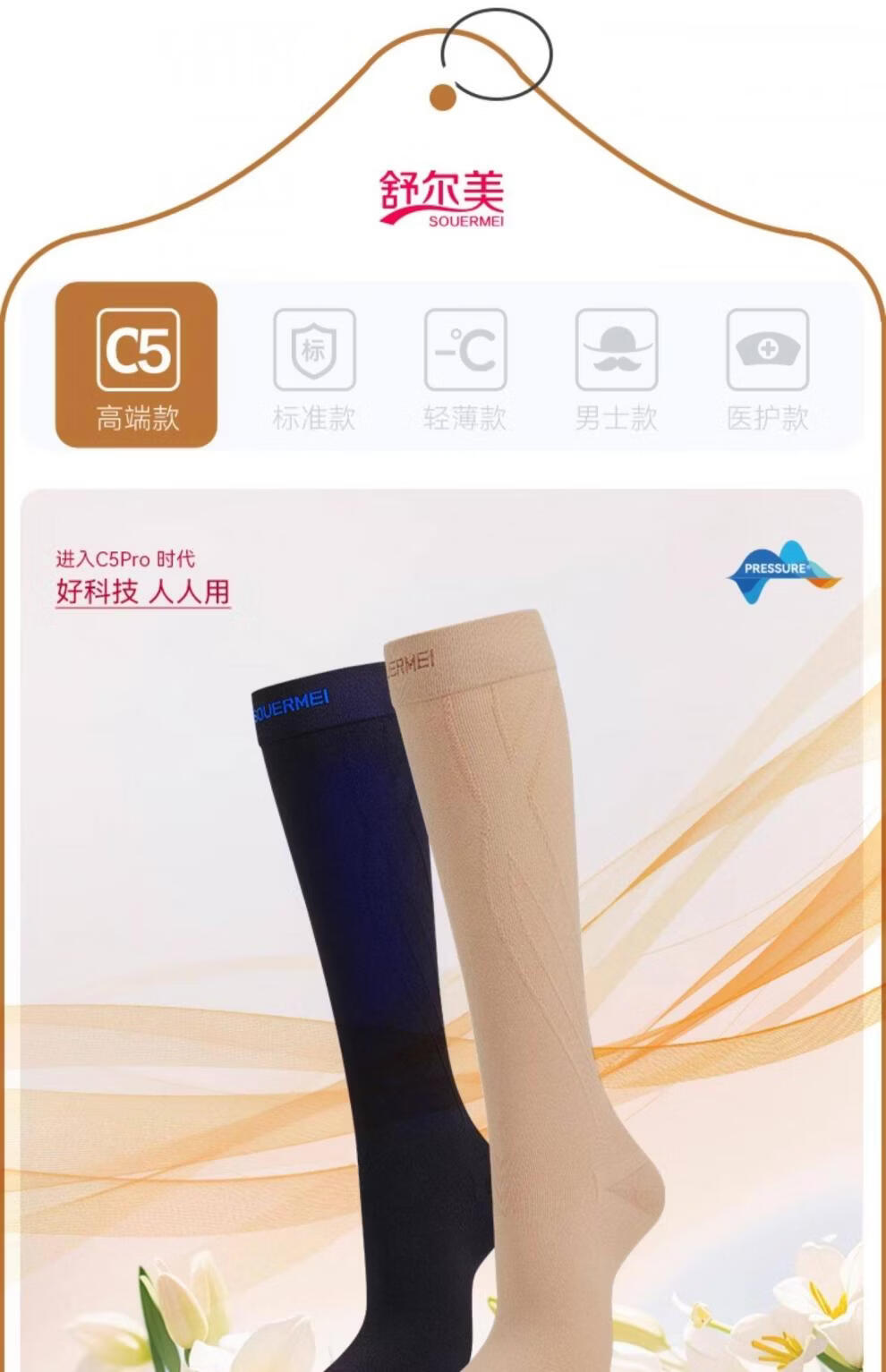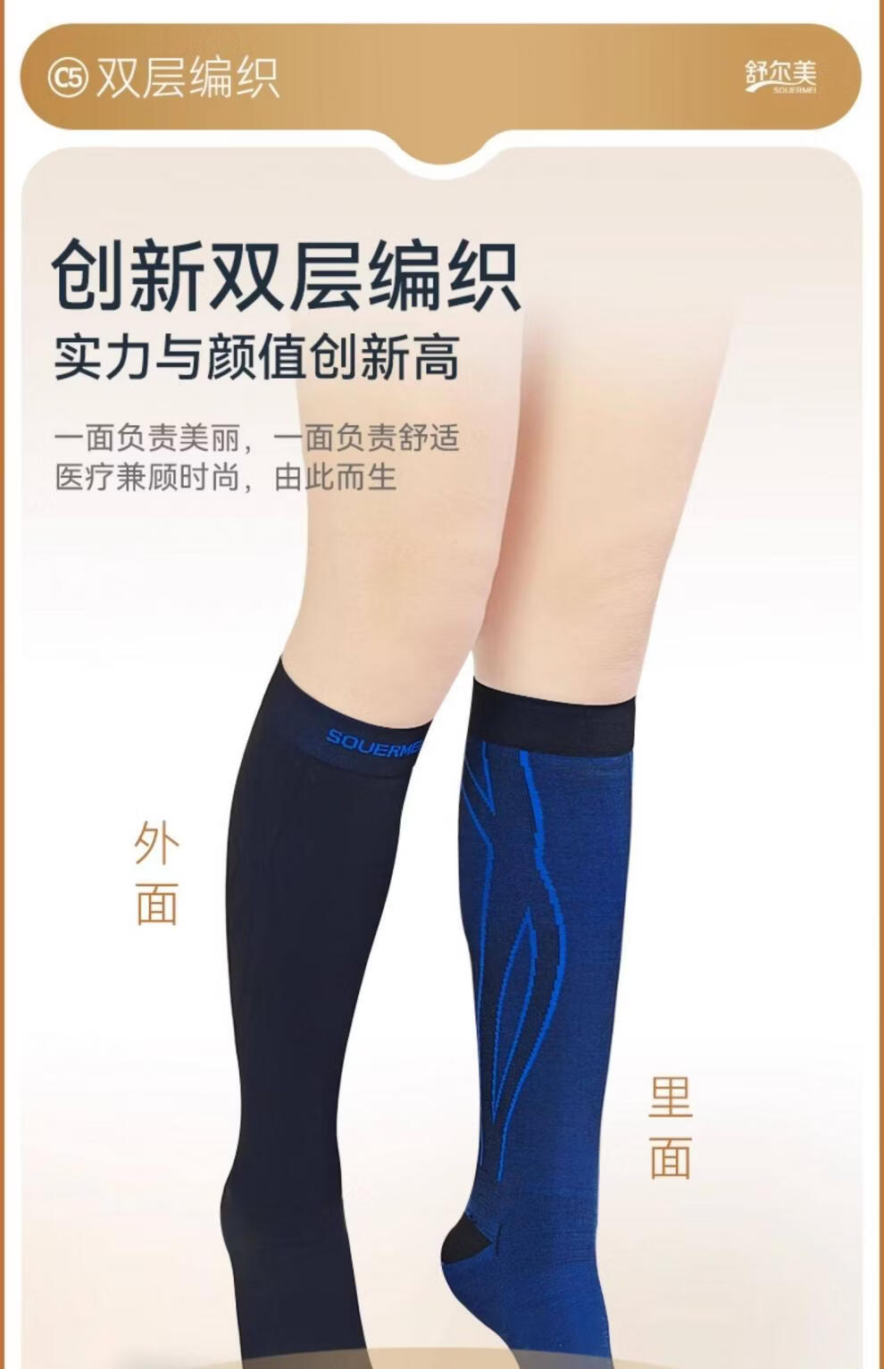 SOUERMEI anti-varicose vein medical elastic socks therapeutic expansion official women's and men's mid-calf sports socks high-end series C5Pro500 natural skin (medical grade one) open toe S