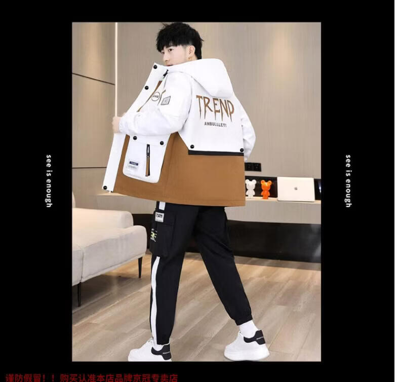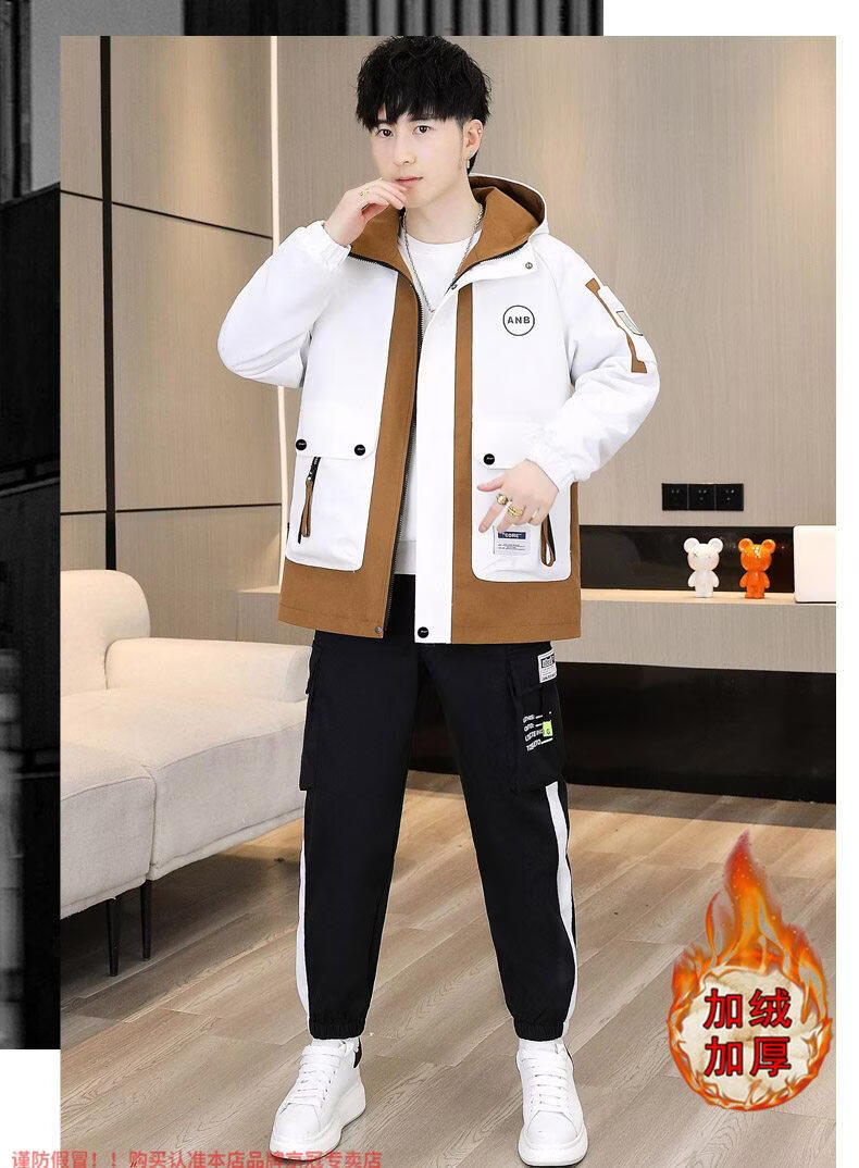 Woodpecker autumn and winter youth velvet thickened jacket boys high school junior high school students hooded handsome jacket older children men's 8310 coffee color spring jacket quality assurance L recommendation 100 to 115Jin Jin is equal to about 0.5 kg