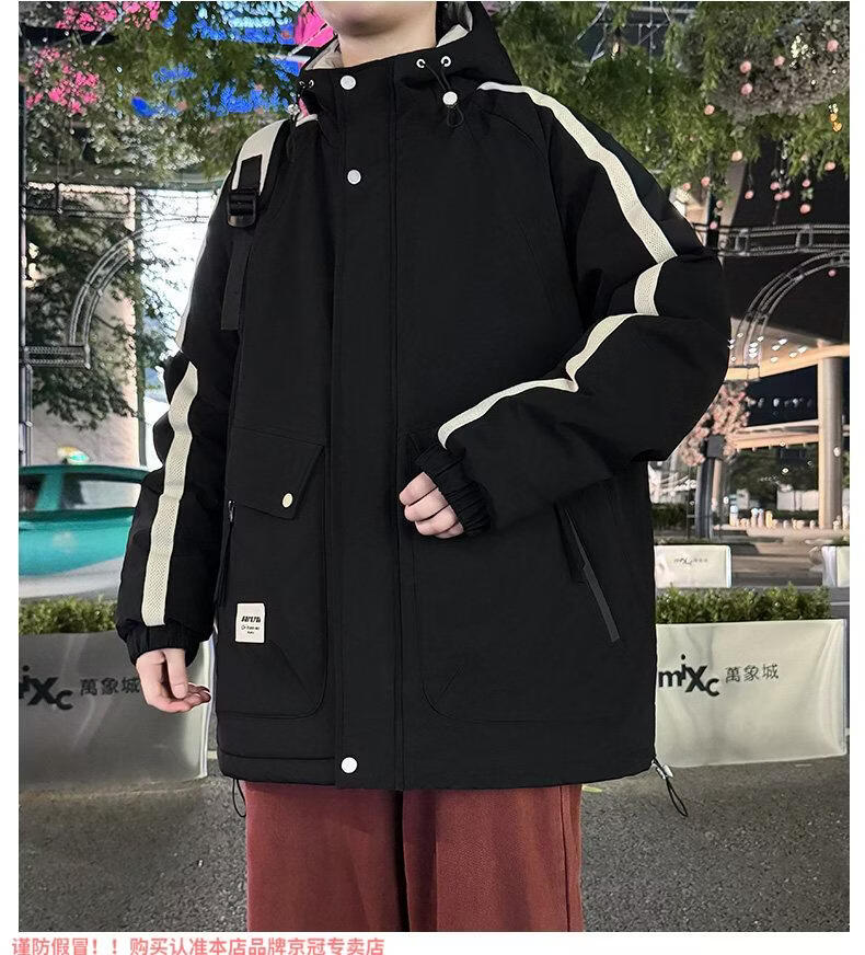 Мужской трехзащитный пуховик Woodpecker, зима 2025, новая рабочая куртка с капюшоном для мужчин и подростков, теплая и морозостойкая одежда для экстремальных холодов YRF5821, черный L, можно носить от 120 до 140 Джин Цзинь равен 0,5 кг.