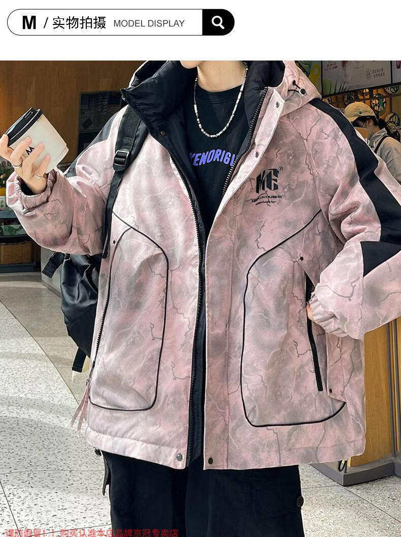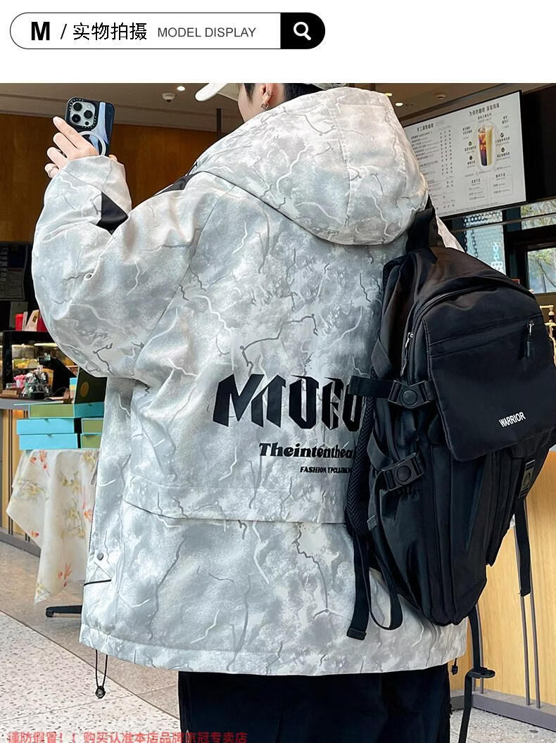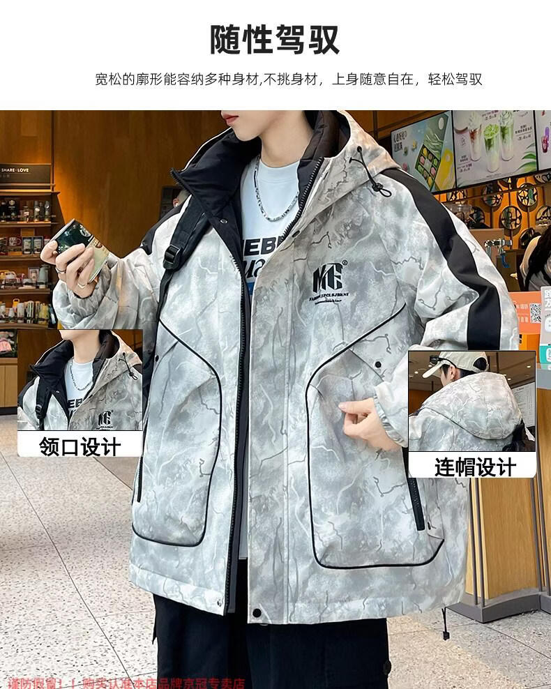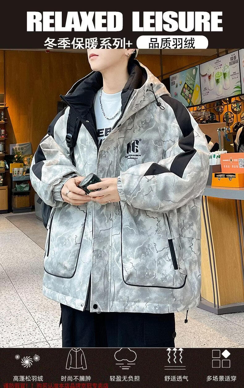 Woodpecker Workwear Down Jacket Men's Winter 2025 New White Duck Down Jacket Men's Hooded Thickened Warm Teenagers Coldproof Jacket Gray M