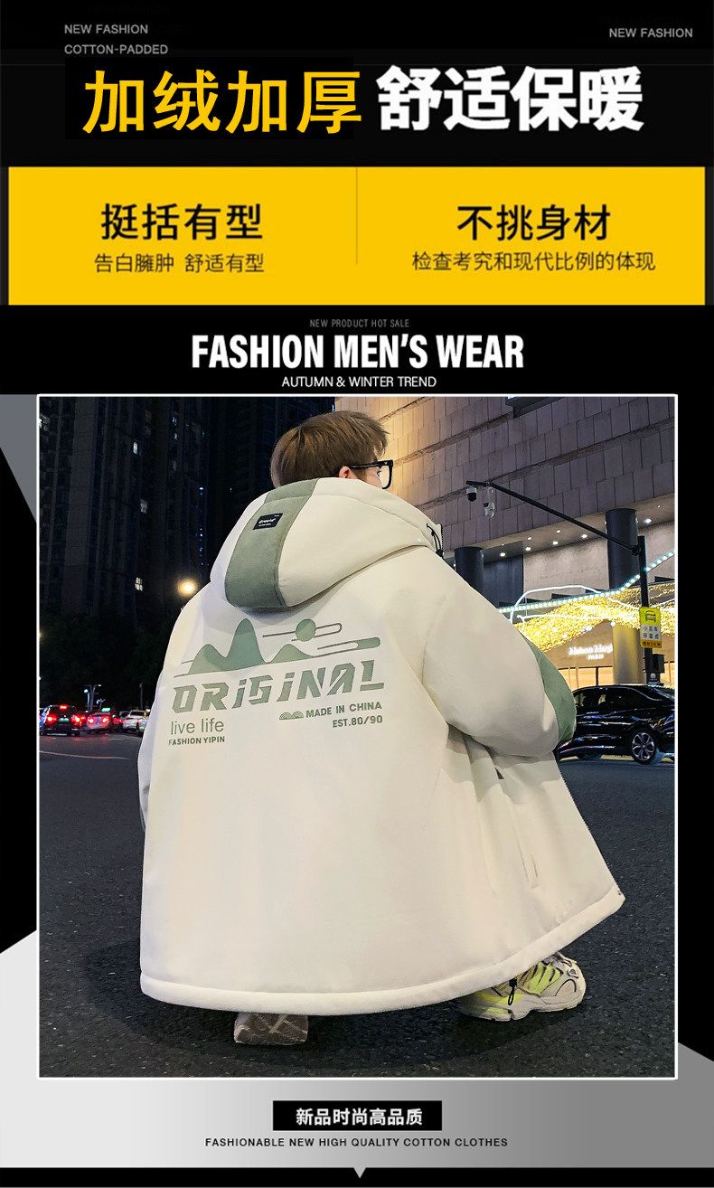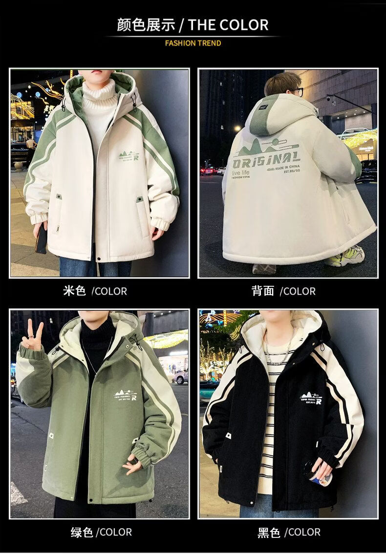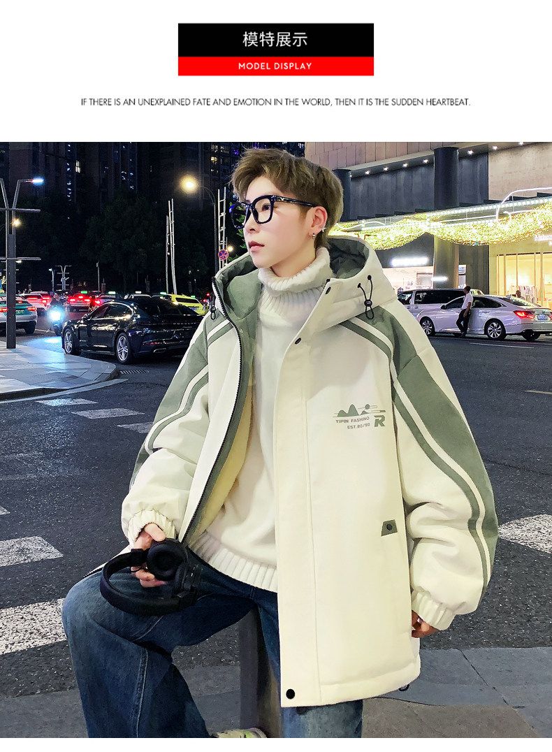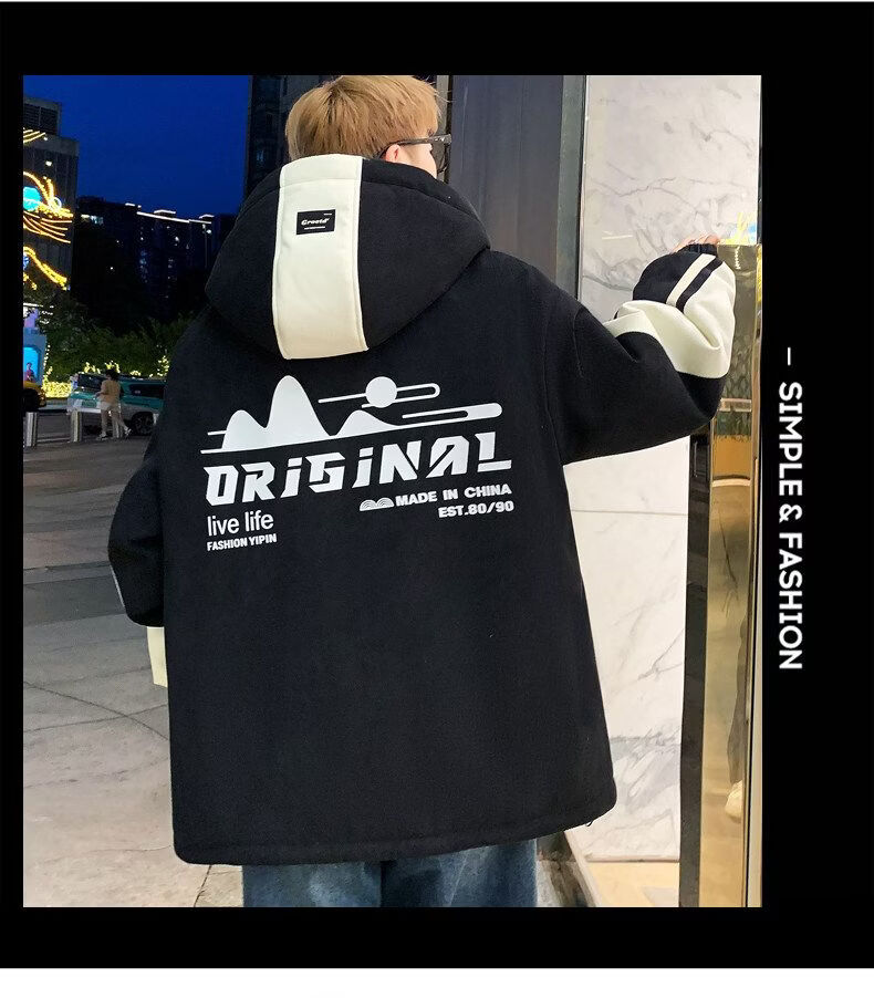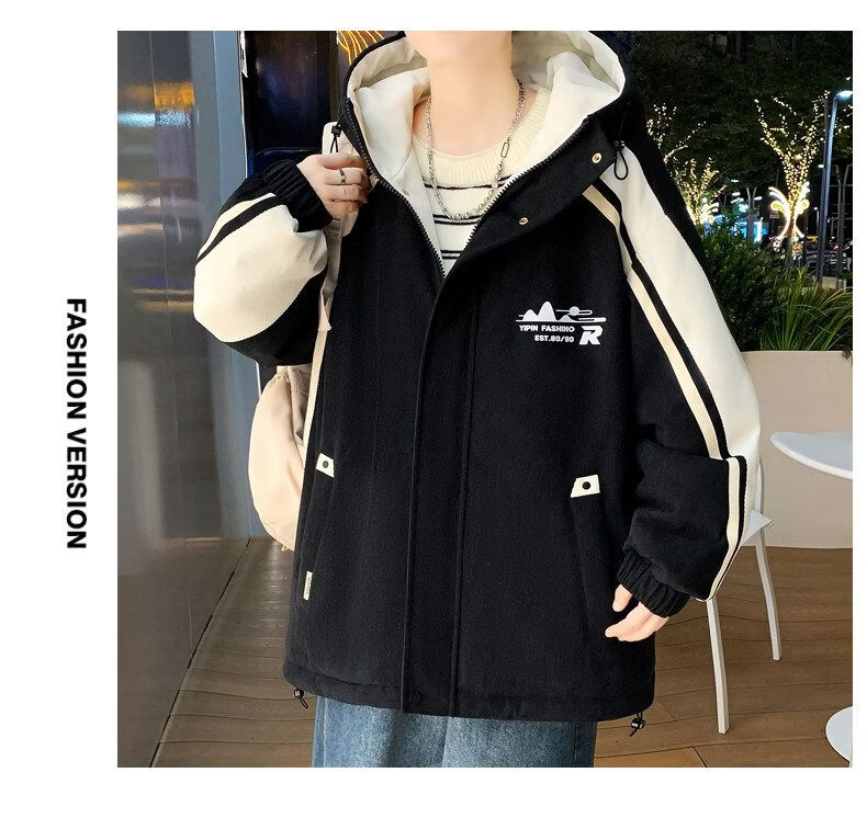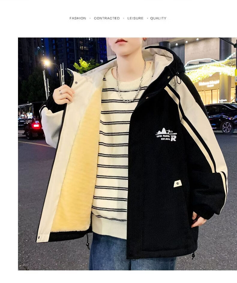 Playboy (PLAYBOY) men's jacket autumn and winter 2026 new trendy brand splicing plus velvet thickened jacket boys and teenagers warm cotton coat 8607 black plus velvet L about 100-120 Jin Jin equals 0.5 kg can be worn
