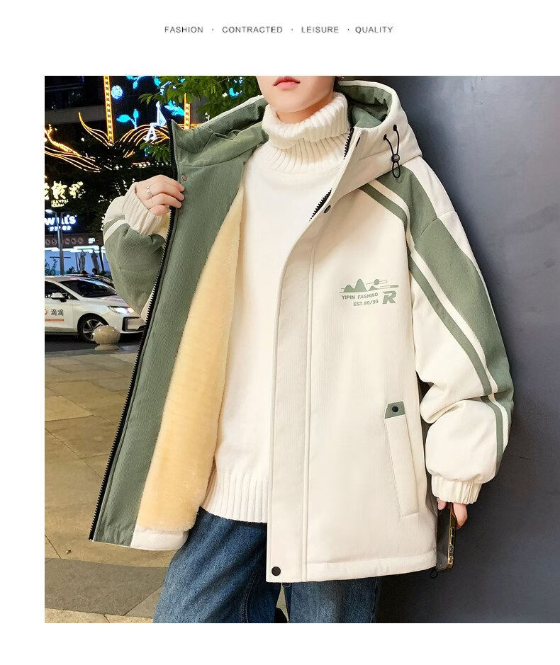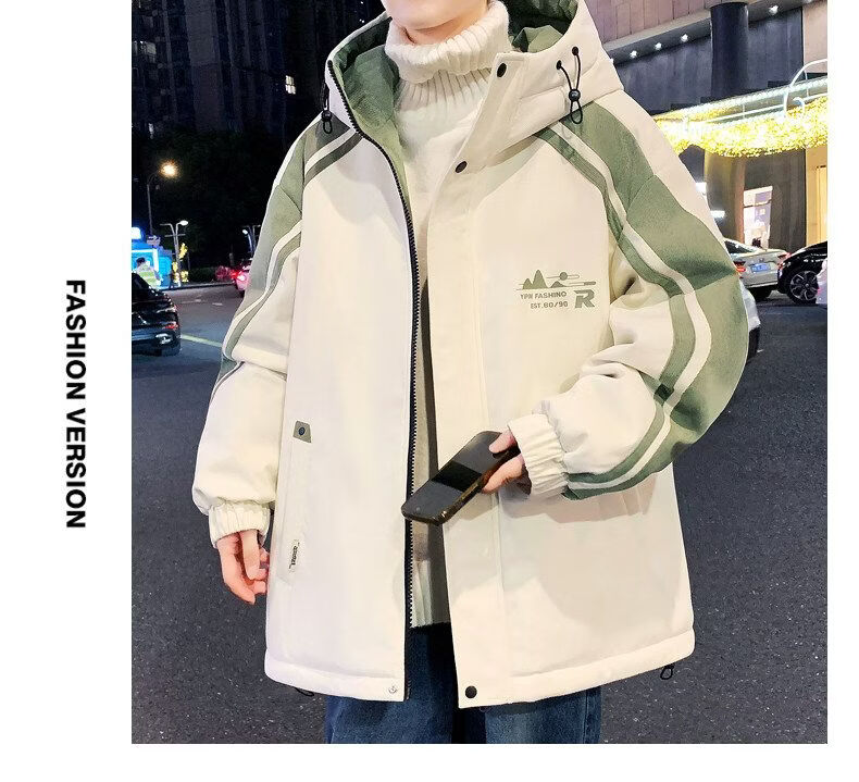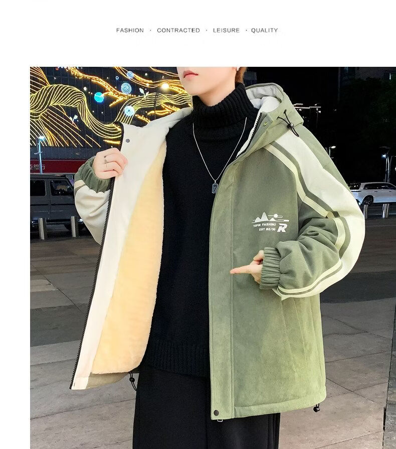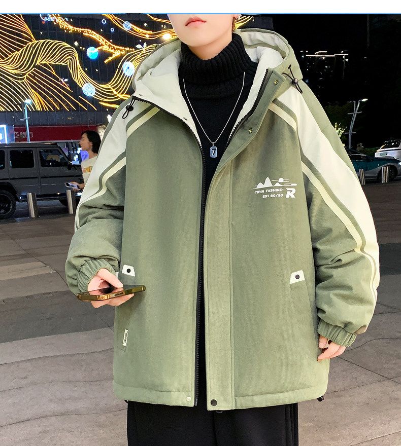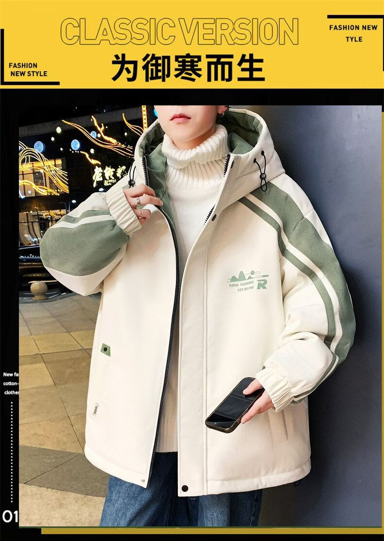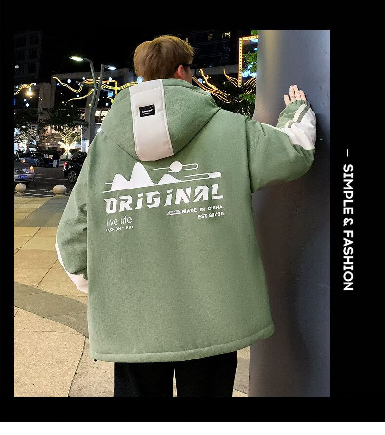 Playboy (PLAYBOY) men's jacket autumn and winter 2026 new trendy brand splicing plus velvet thickened jacket boys and teenagers warm cotton coat 8607 black plus velvet L about 100-120 Jin Jin equals 0.5 kg can be worn