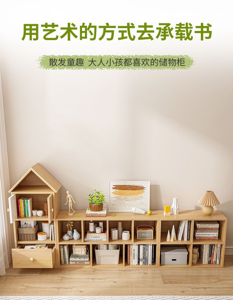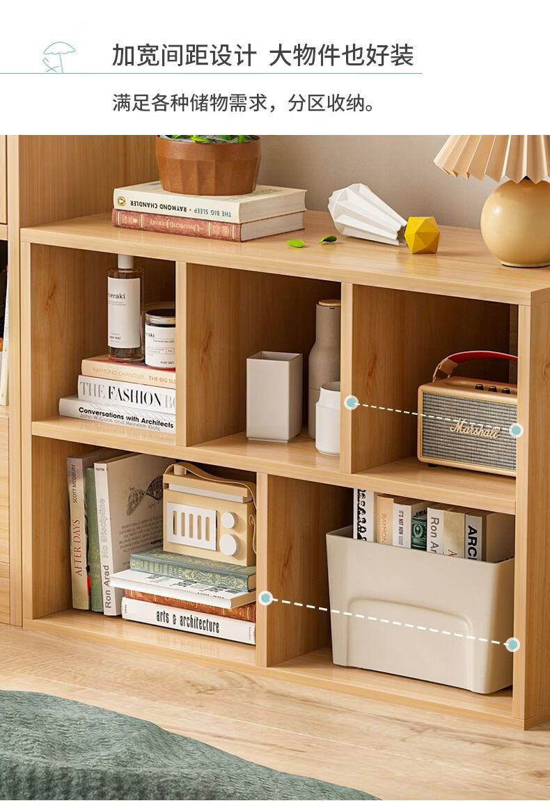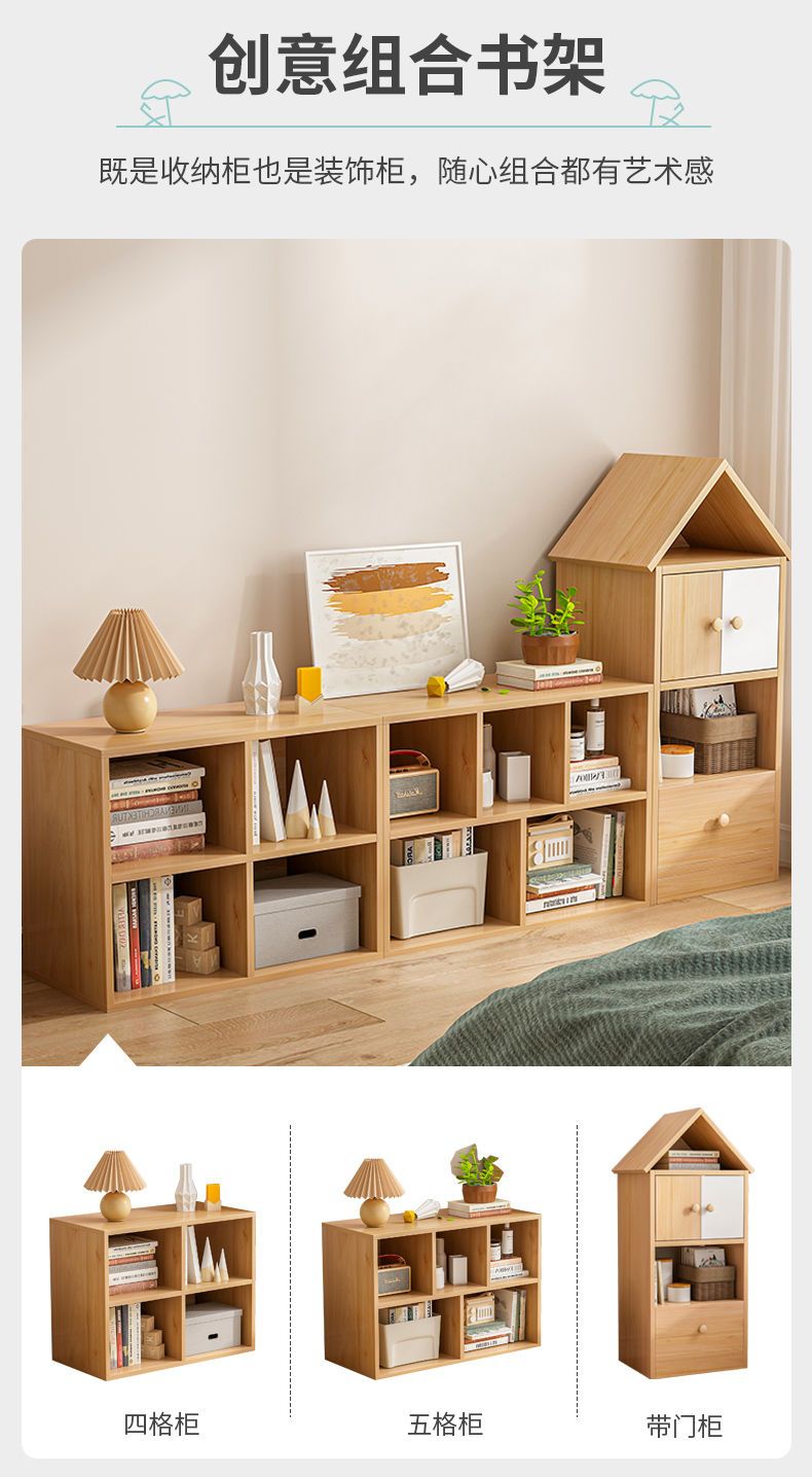 Fantasy children's bookshelf floor-standing locker classroom student storage locker bedside wall combination lattice cabinet low bookcase imitation solid wood color bedside single style 40x24x123CM