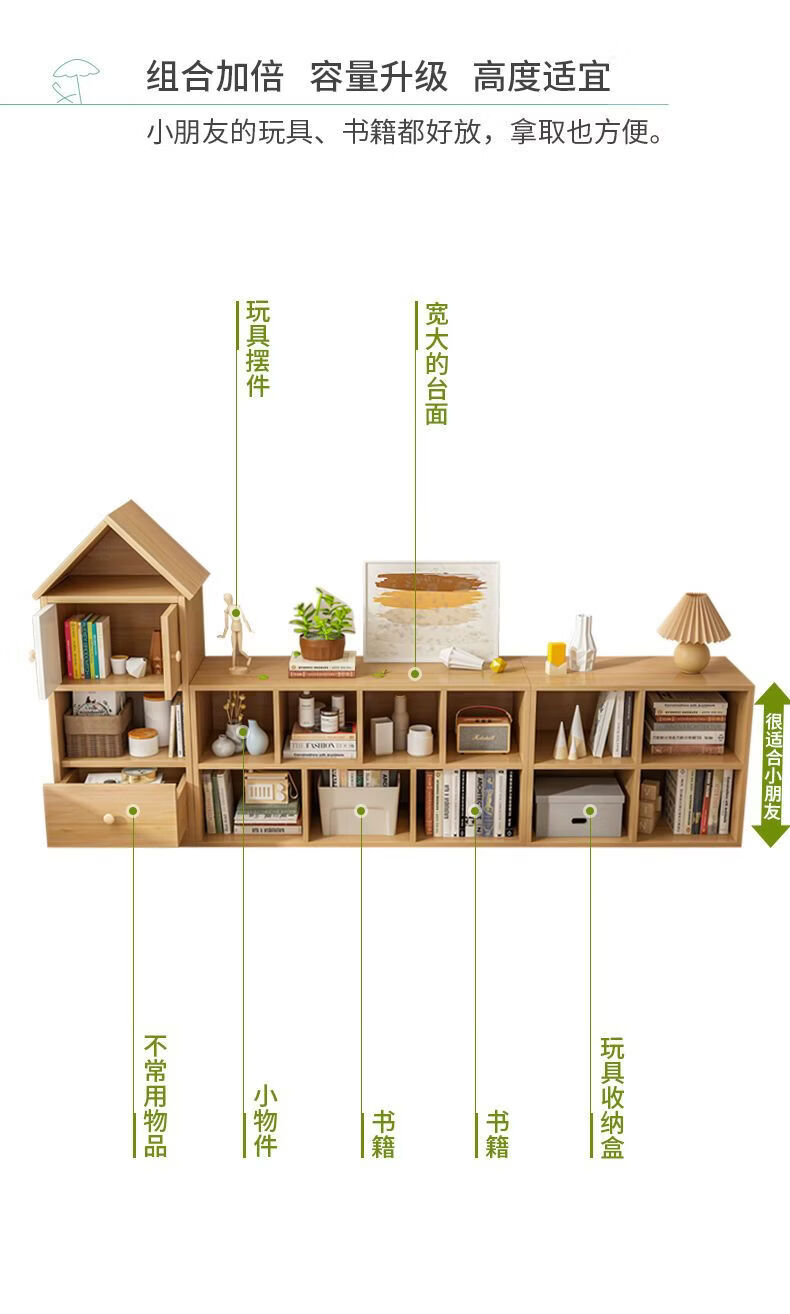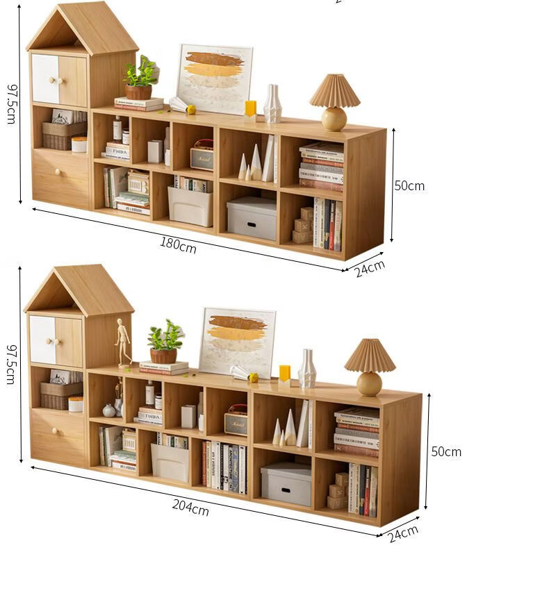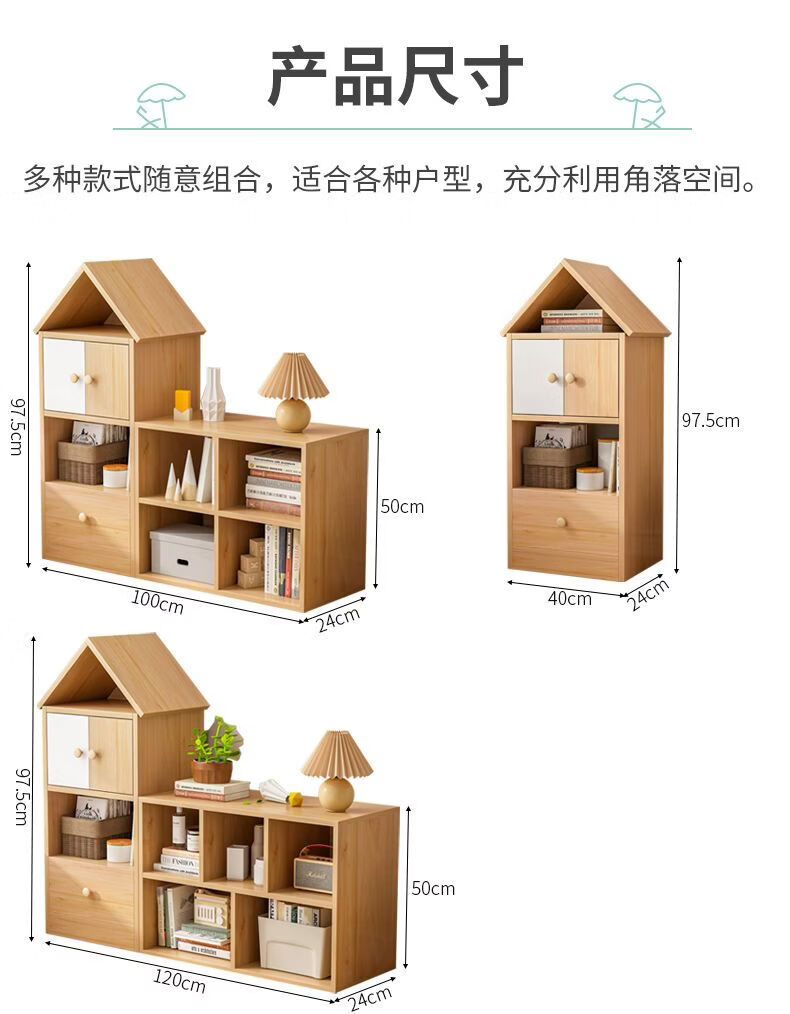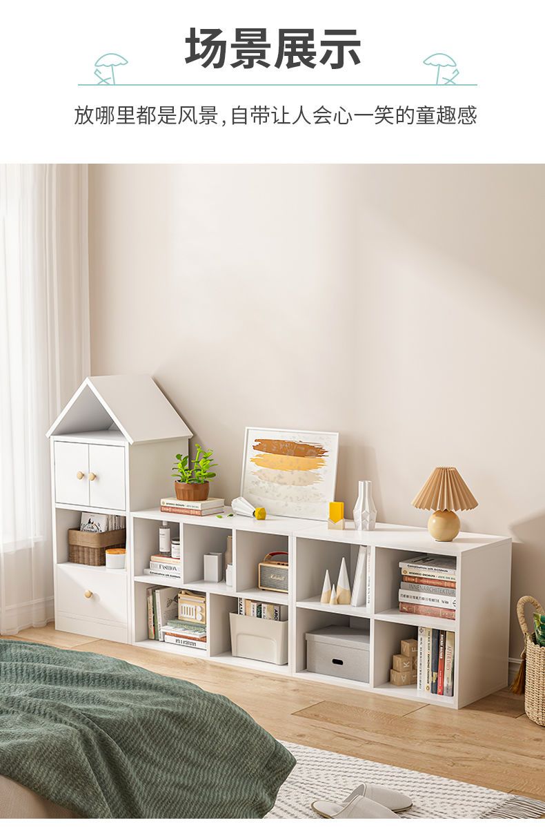 Fantasy children's bookshelf floor-standing locker classroom student storage locker bedside wall combination lattice cabinet low bookcase imitation solid wood color bedside single style 40x24x123CM
