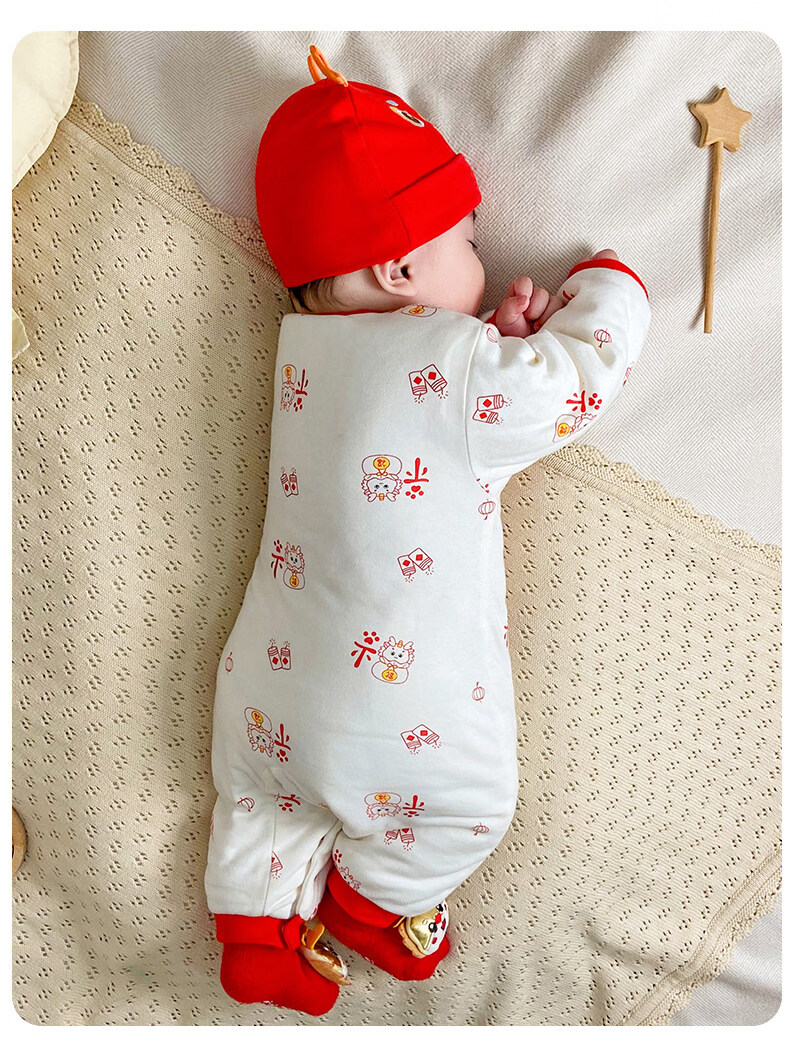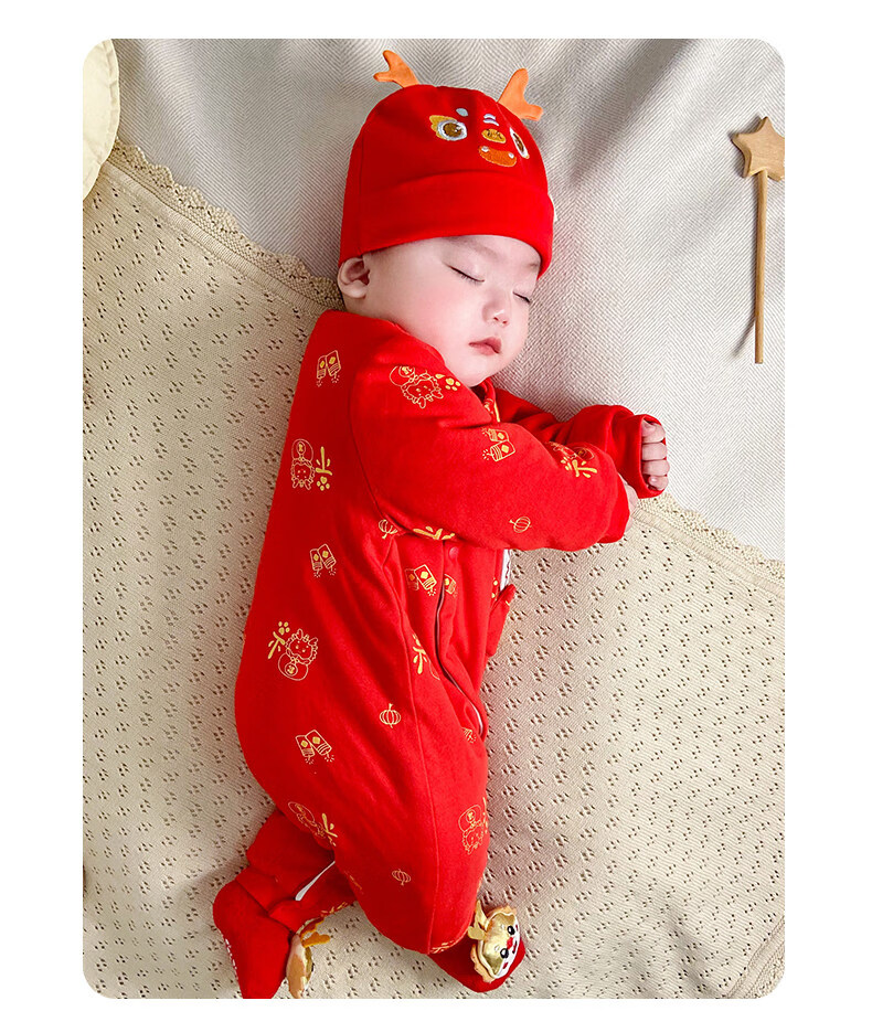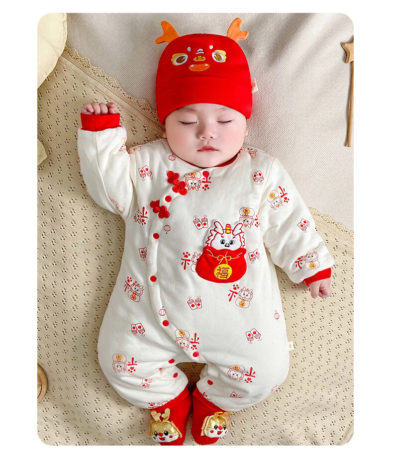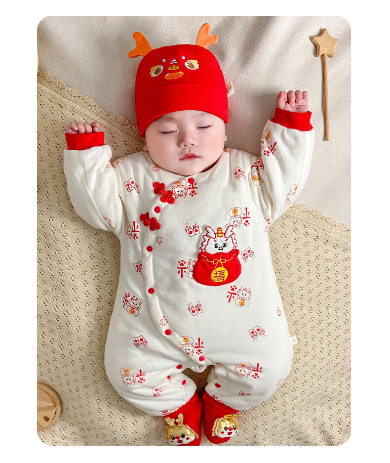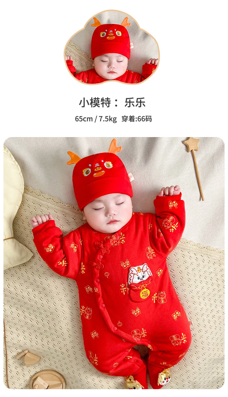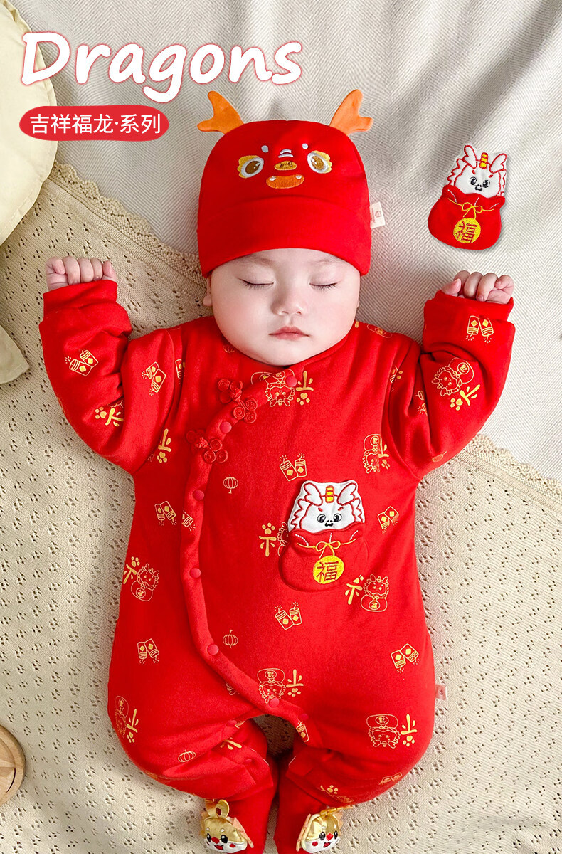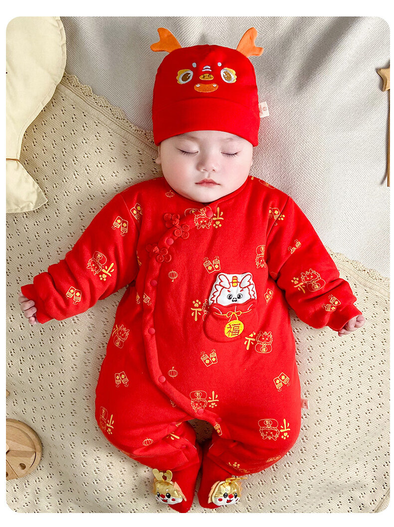 HAL.DUCK New Year Baby New Year's Greeting Clothes Red Dragon Year Infant Clothes Winter Thickened Jumpsuit Full Moon Baby New Year Festive Red Dragon Brings Blessings 59cm
