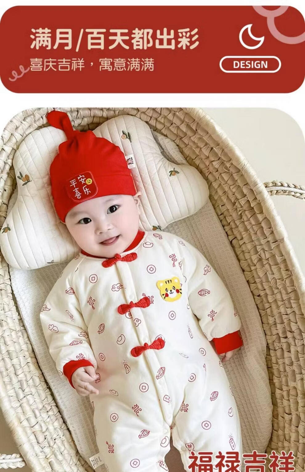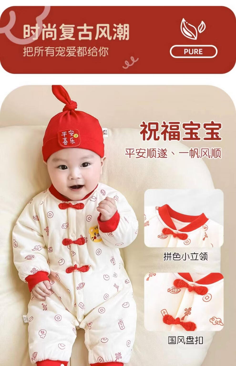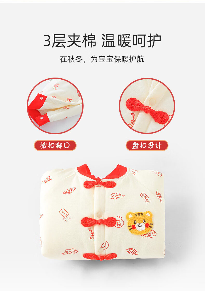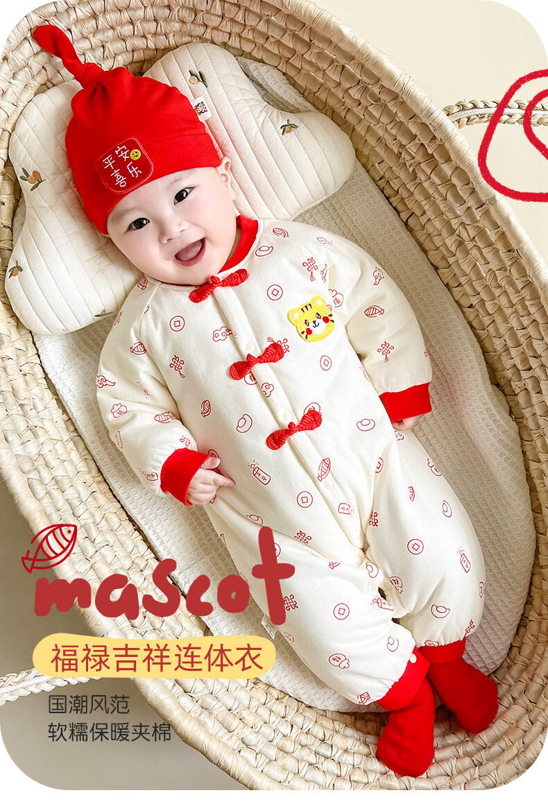 Disney full-moon suit baby winter jumpsuit baby 100-day clothes newborn autumn and winter new warm clothes New Year's greetings clothing Peace and joy Thickened quilted, soft and warm 73cm