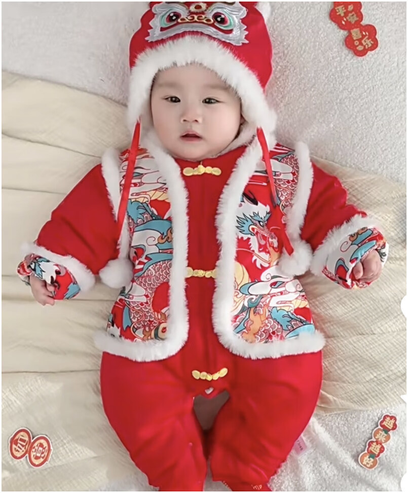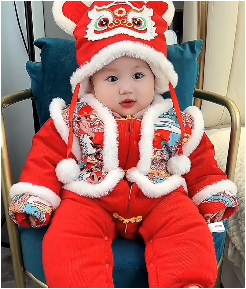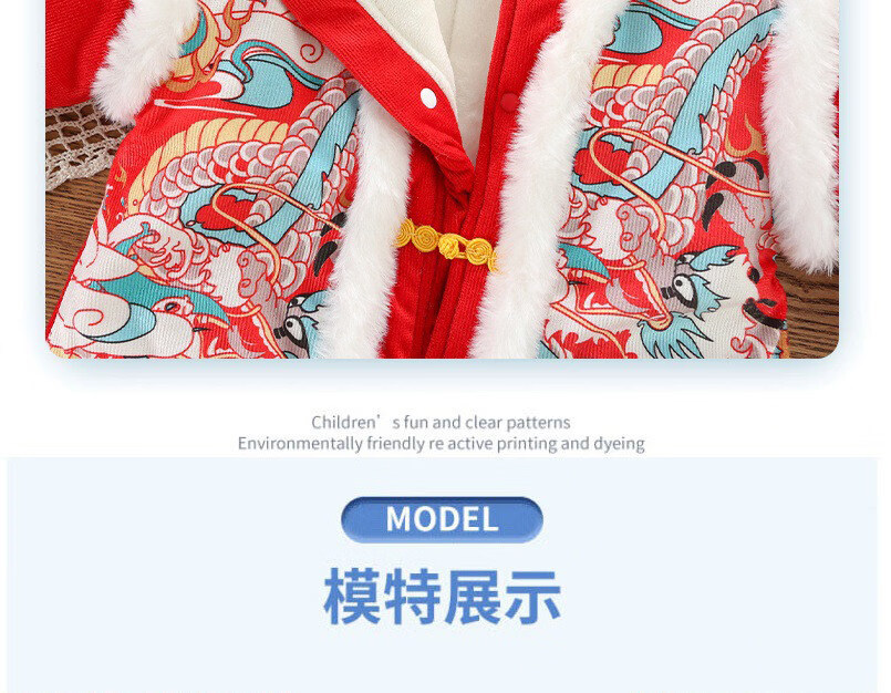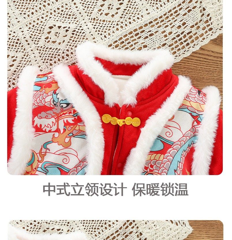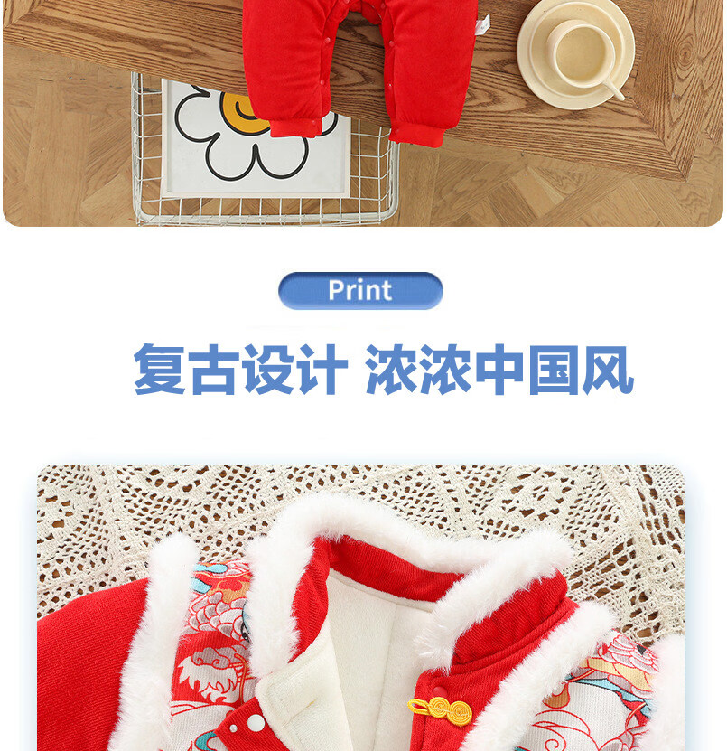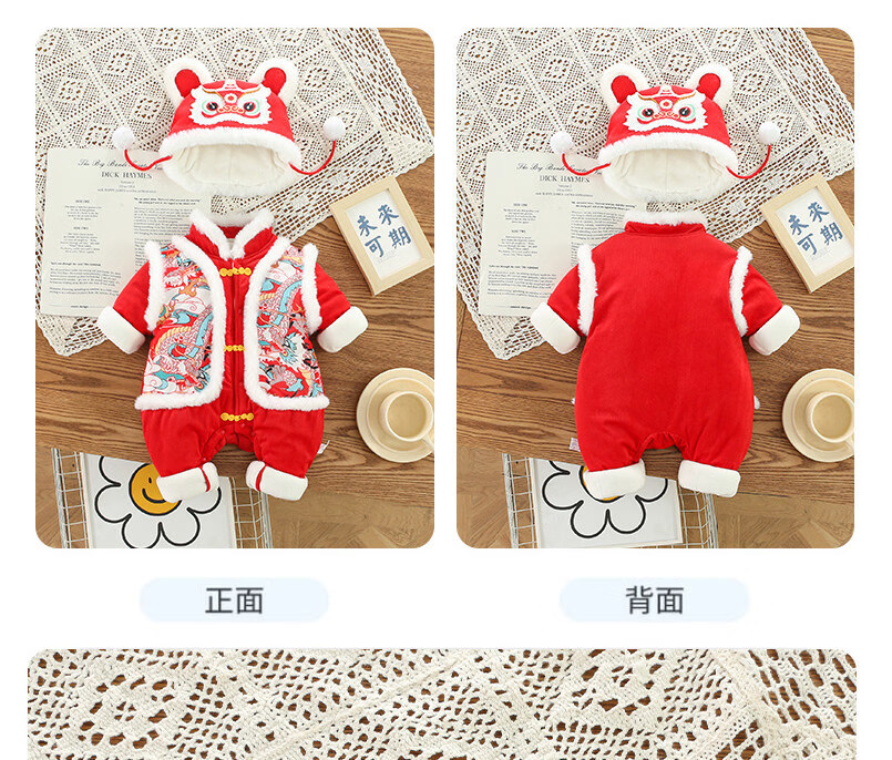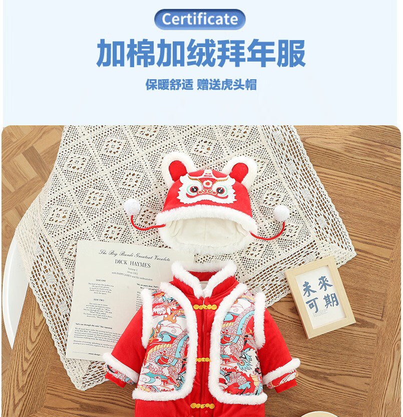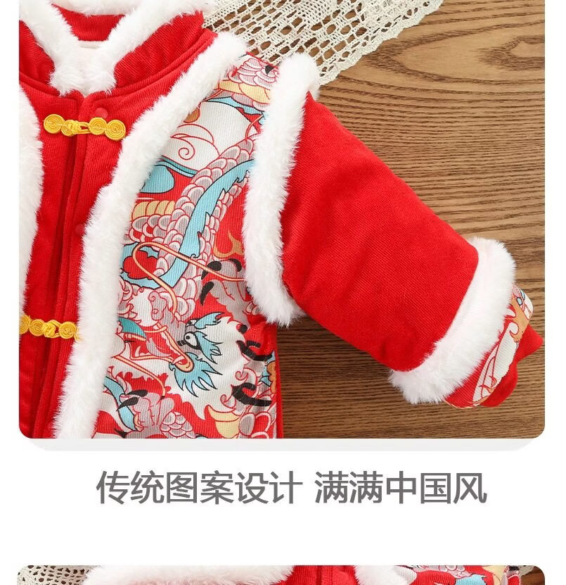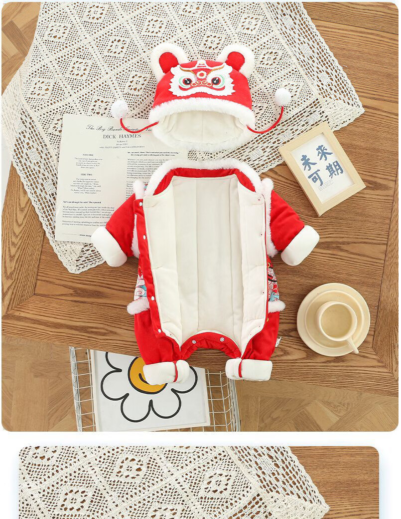 Disney Chinese style hooded jumpsuit newborn baby New Year's greetings clothes winter thickened cotton red male and female baby New Year clothes Chinese style Longtuha Yi with hood 66cm 14Jin Jin is equal to within 0.5kg