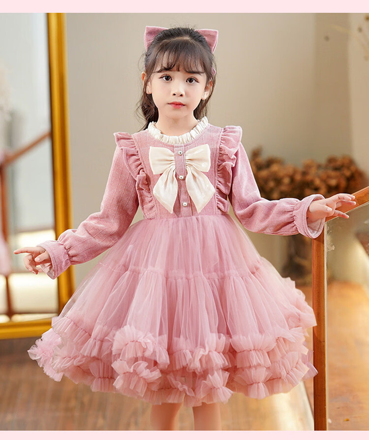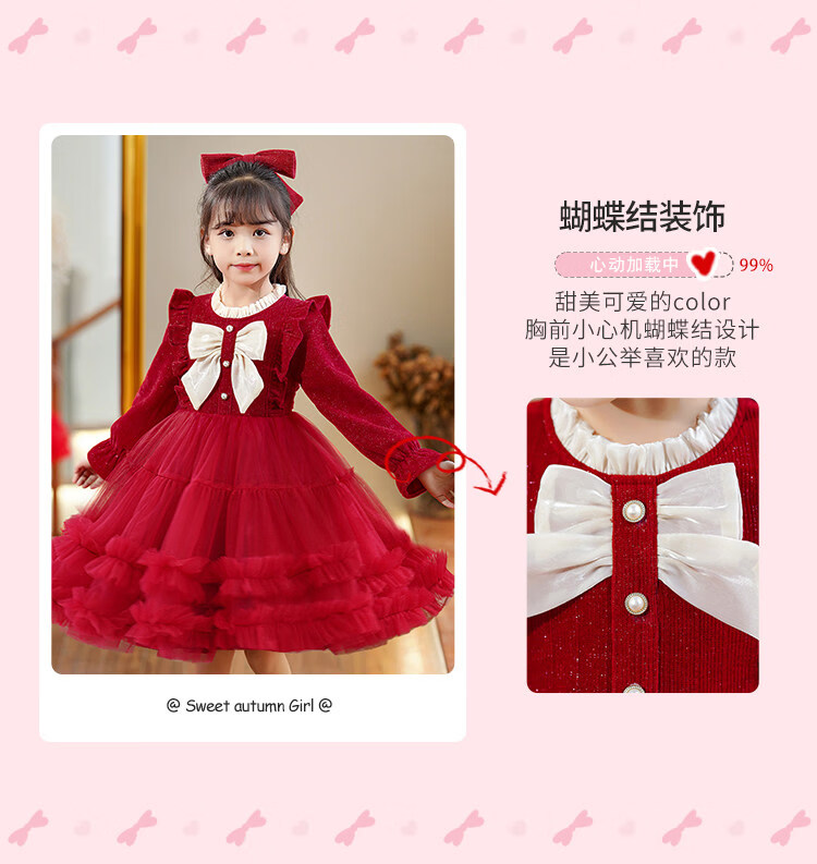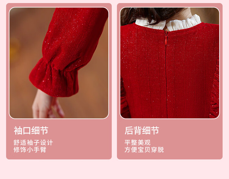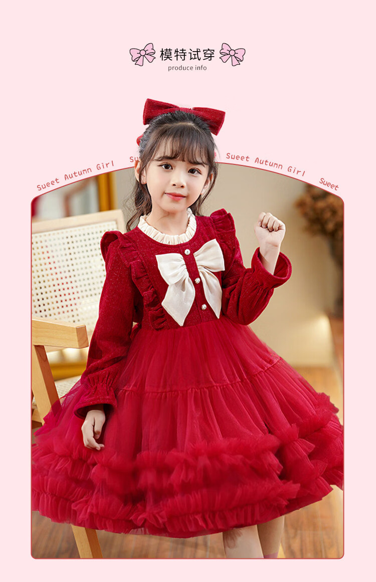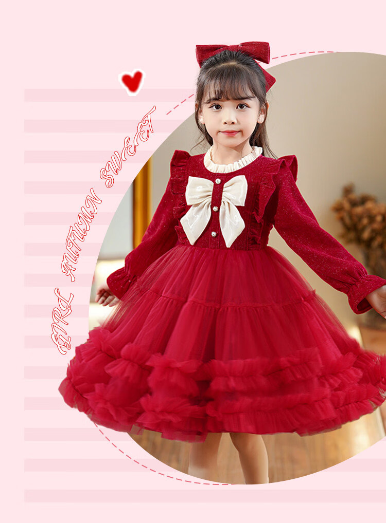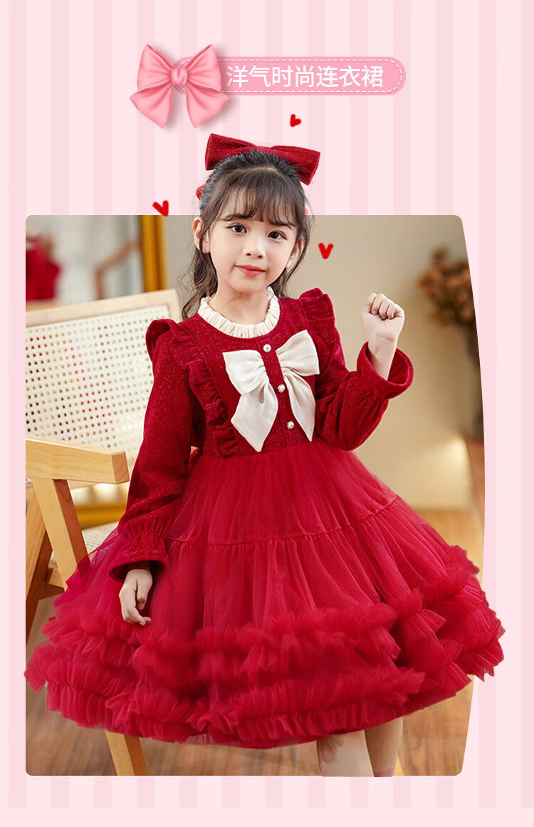 HAL.DUCK Girls' New Year's Clothes Fashionable Autumn and Winter Skirts Children's Dresses Winter Clothes Little Girls New Year's Winter Princess Dresses 2586 Red Free Tiara 110 cm