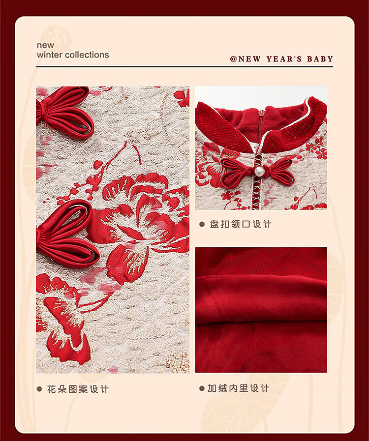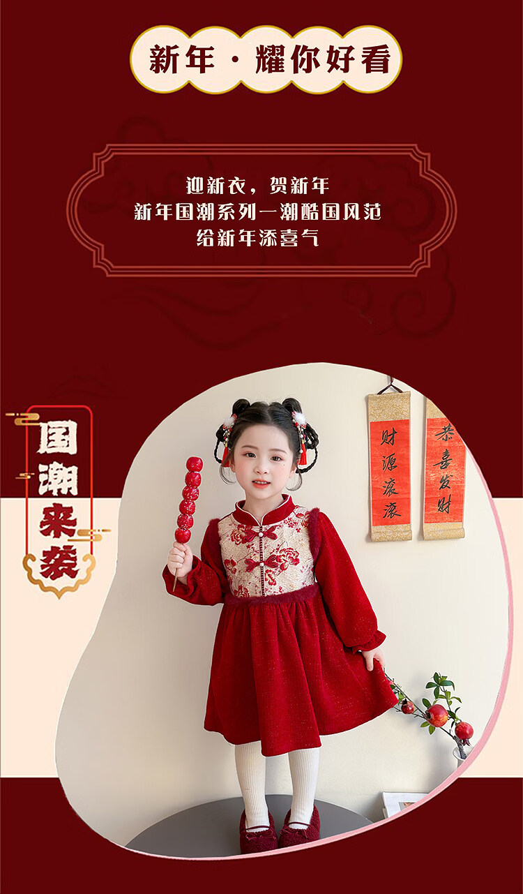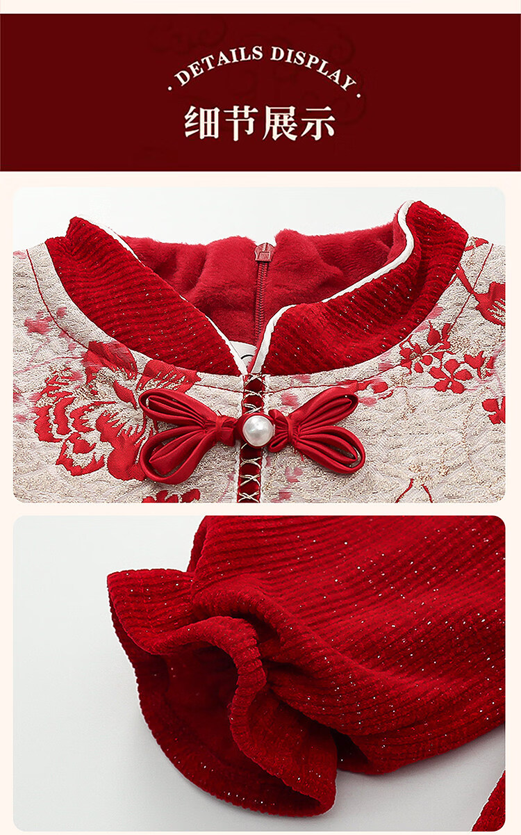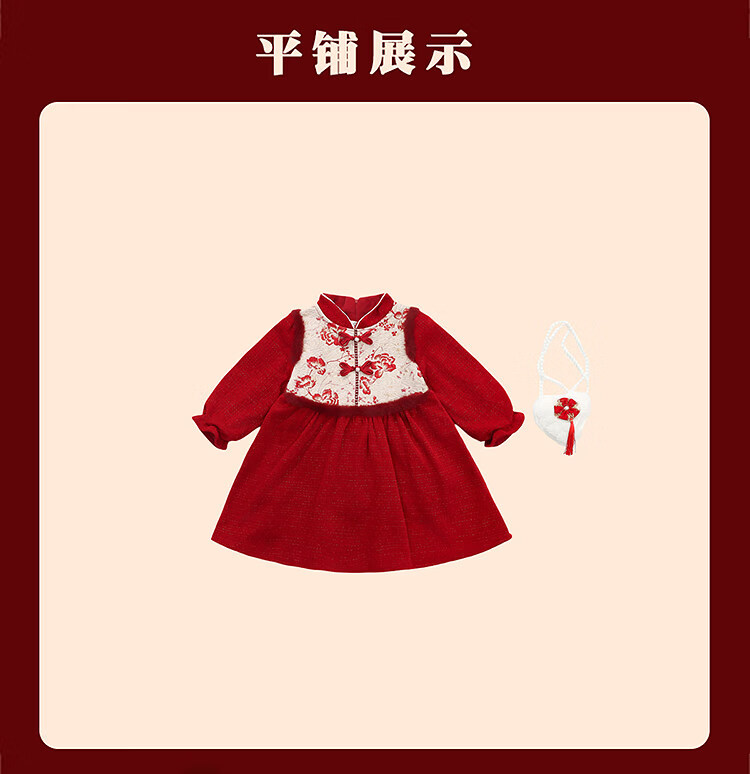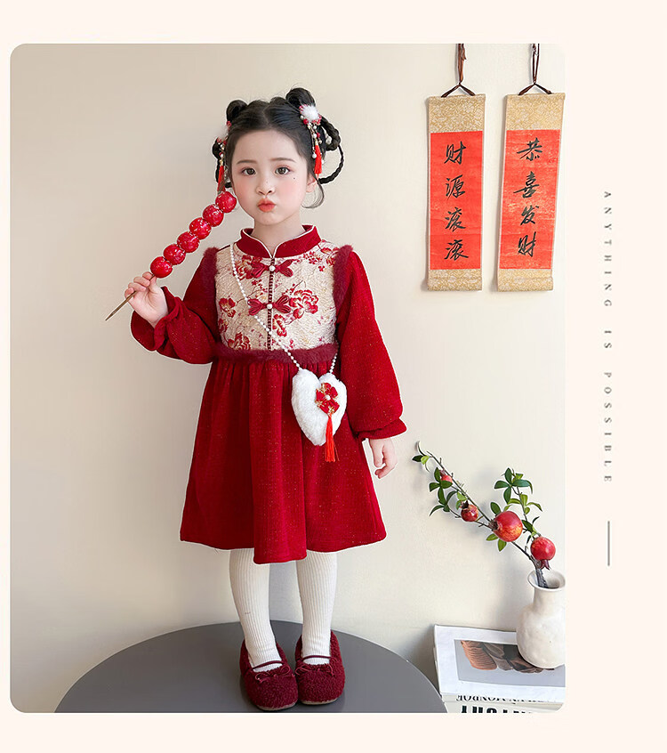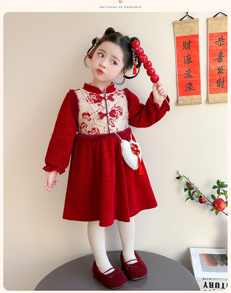 HAL.DUCK Girls' New Year's Eve Clothes Plus Velvet Dress Winter 2026 New Children's Cheongsam Dress Baby Girl's Happy New Year Dress Red Free Bag 110