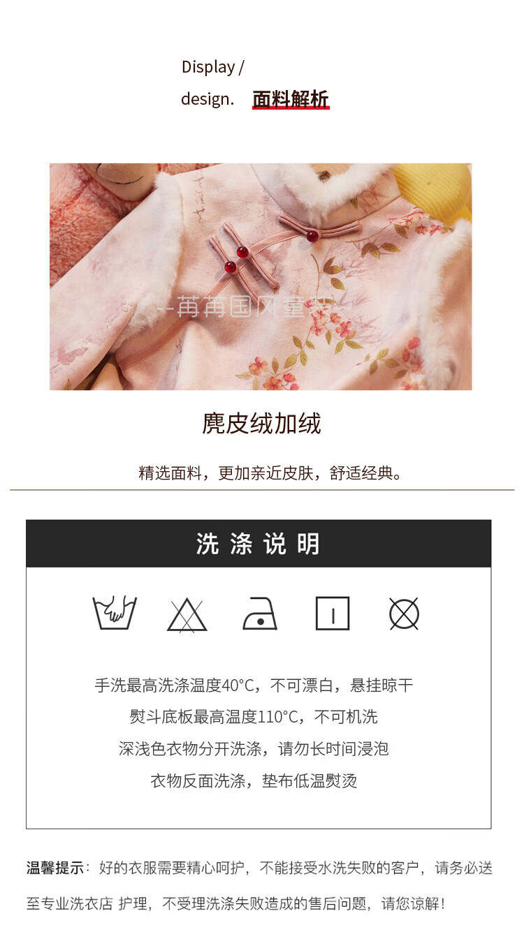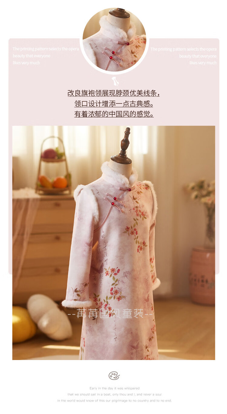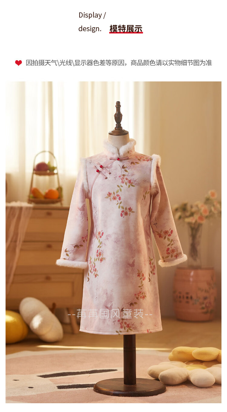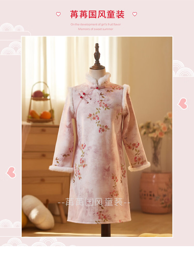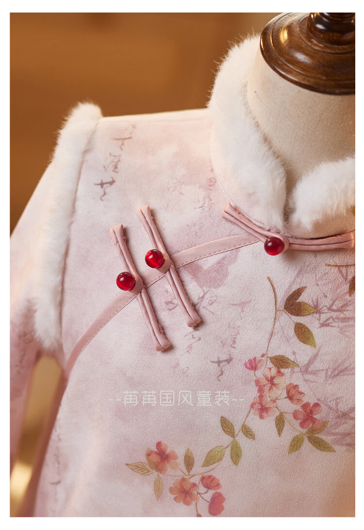Disney pink girls' cheongsam autumn and winter clothing children's New Year's greetings clothing long-sleeved thickened velvet princess dress performance clothing winter pink 110