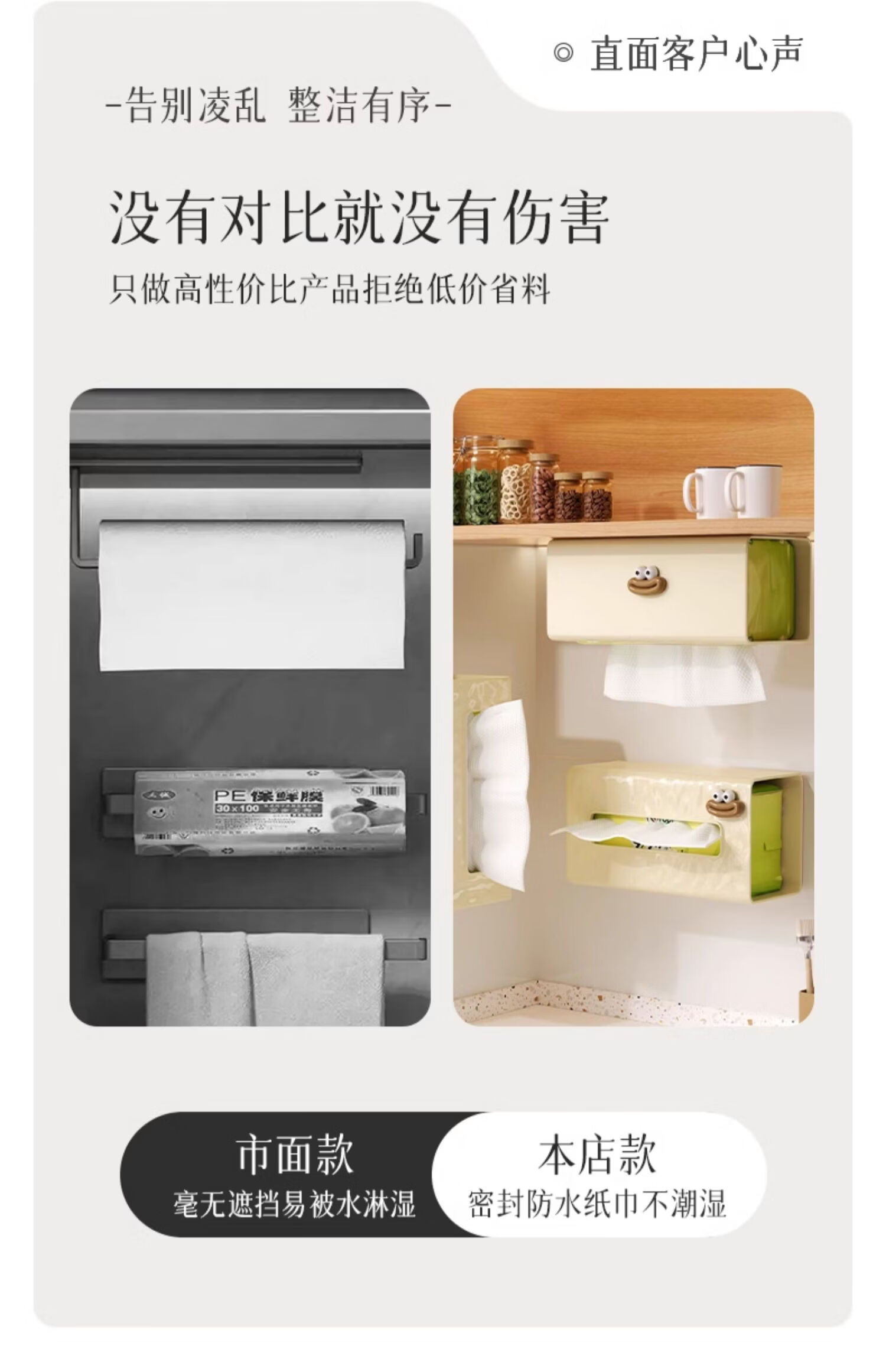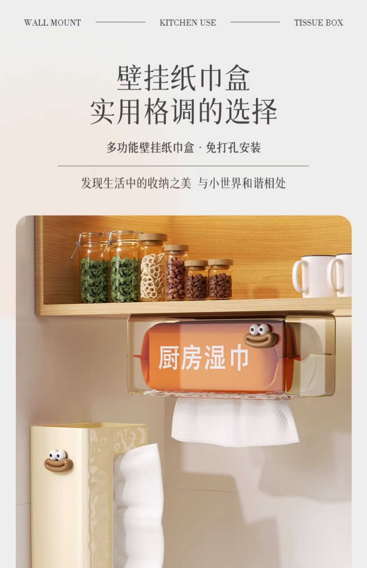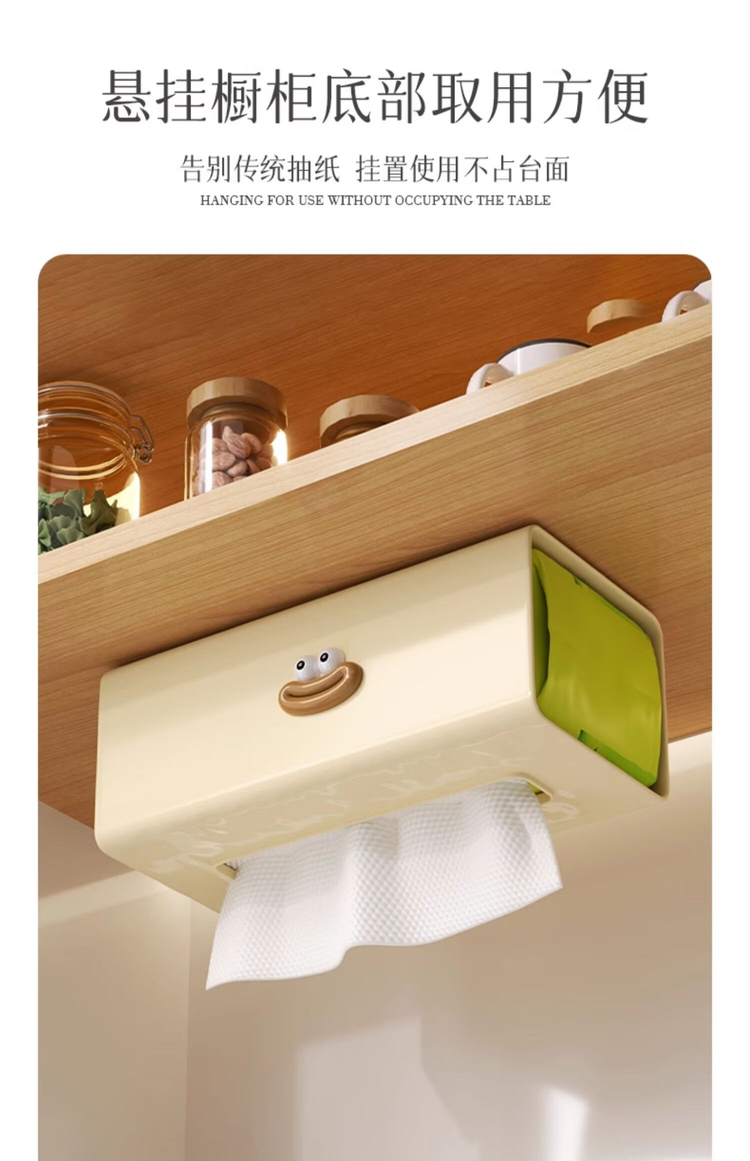 Yusenyi kitchen paper towel holder wall-mounted inverted tissue box cabinet wet wipes storage box hanging under the table washable 1 pack transparent dopamine decoration