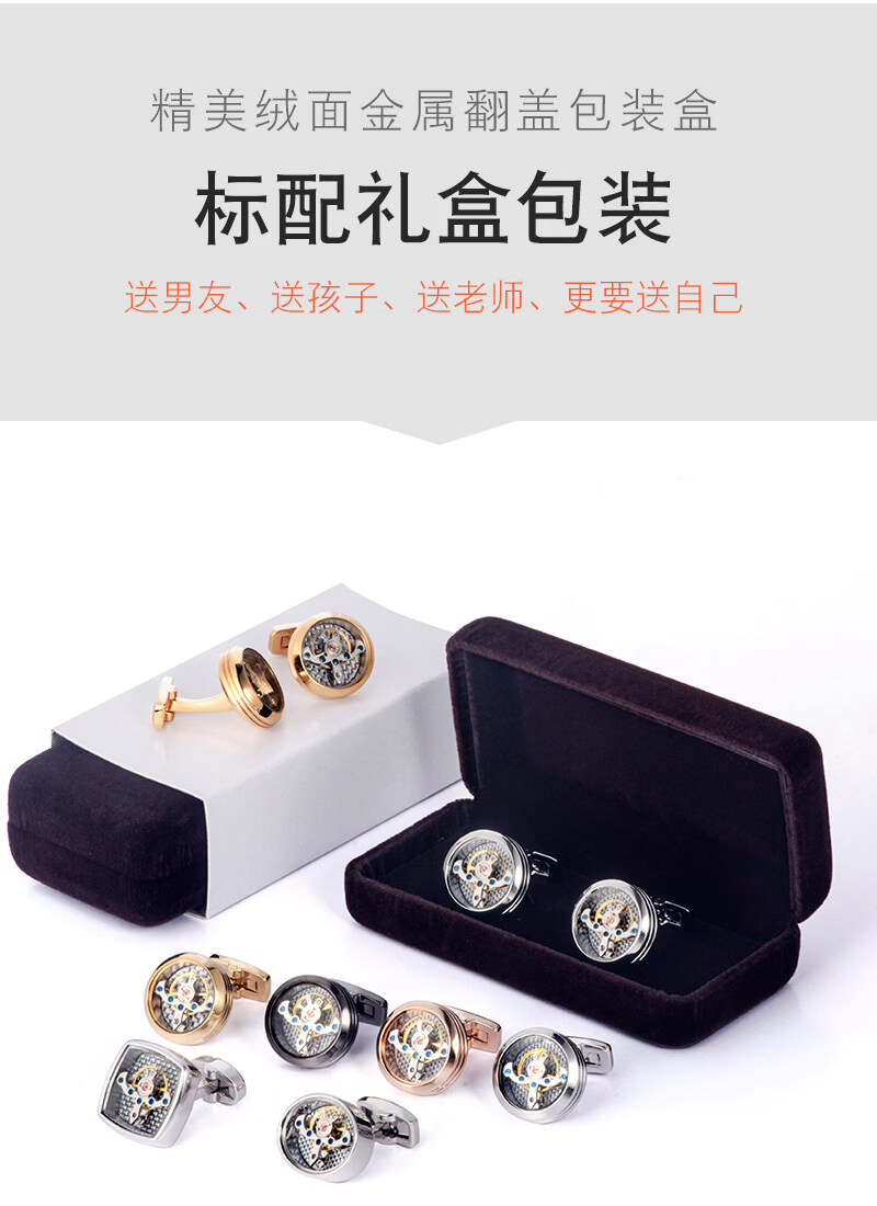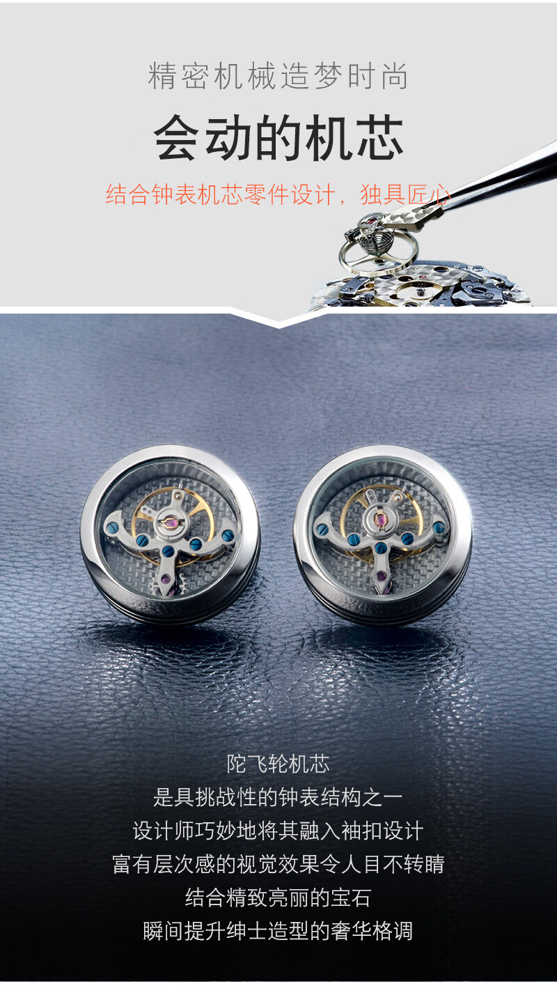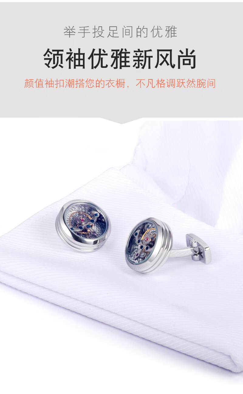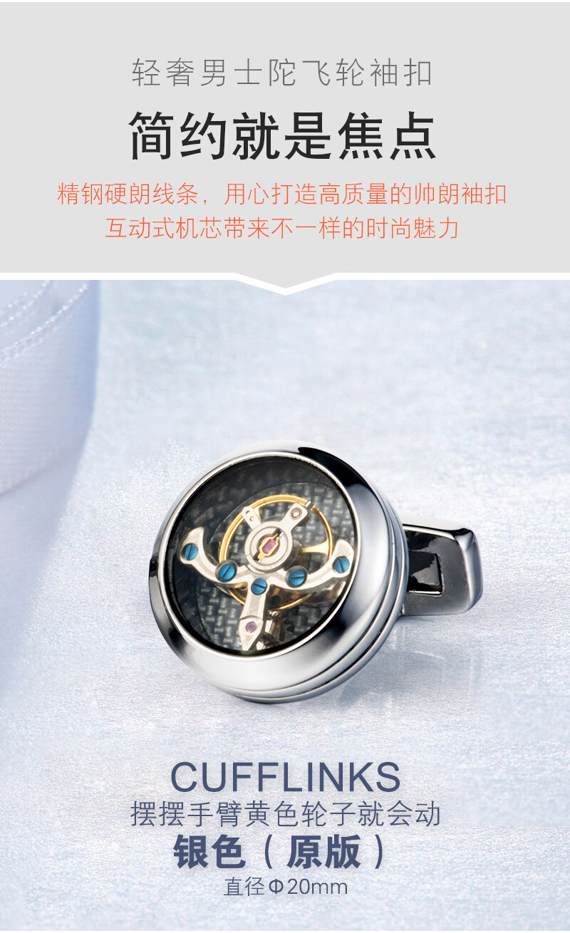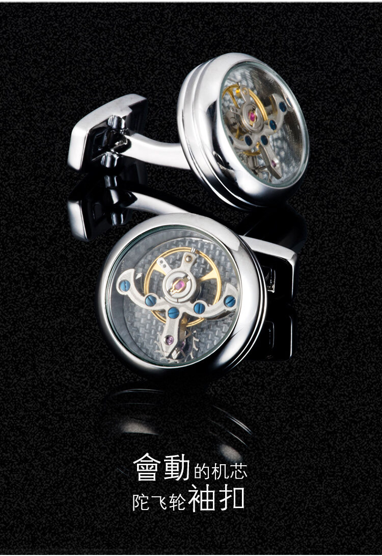 Cuff Tourbillon Cufflinks Moving Movement Gear Cuff Pins Men's Formal French Shirt Cuff Buttons Gift Box Silver (Original) 20mm