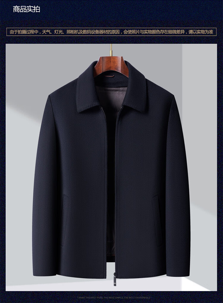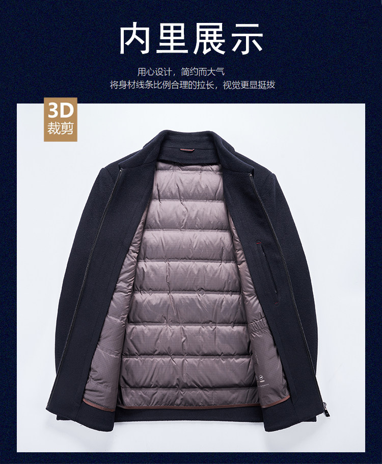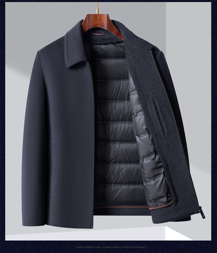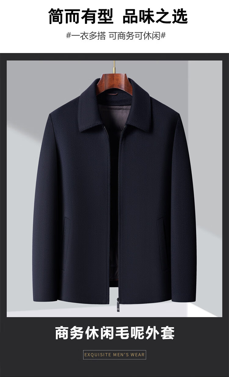 JOEONE high-end woolen winter thickened jacket men's removable liner business short loose woolen jacket navy blue S 170