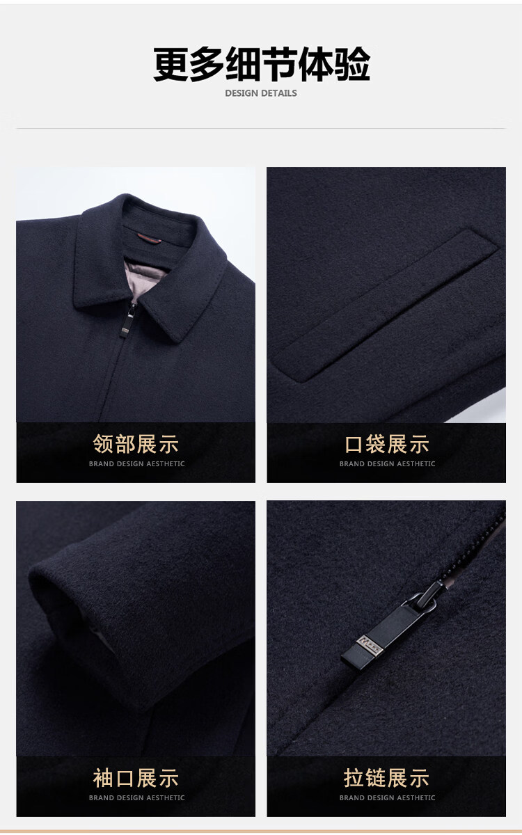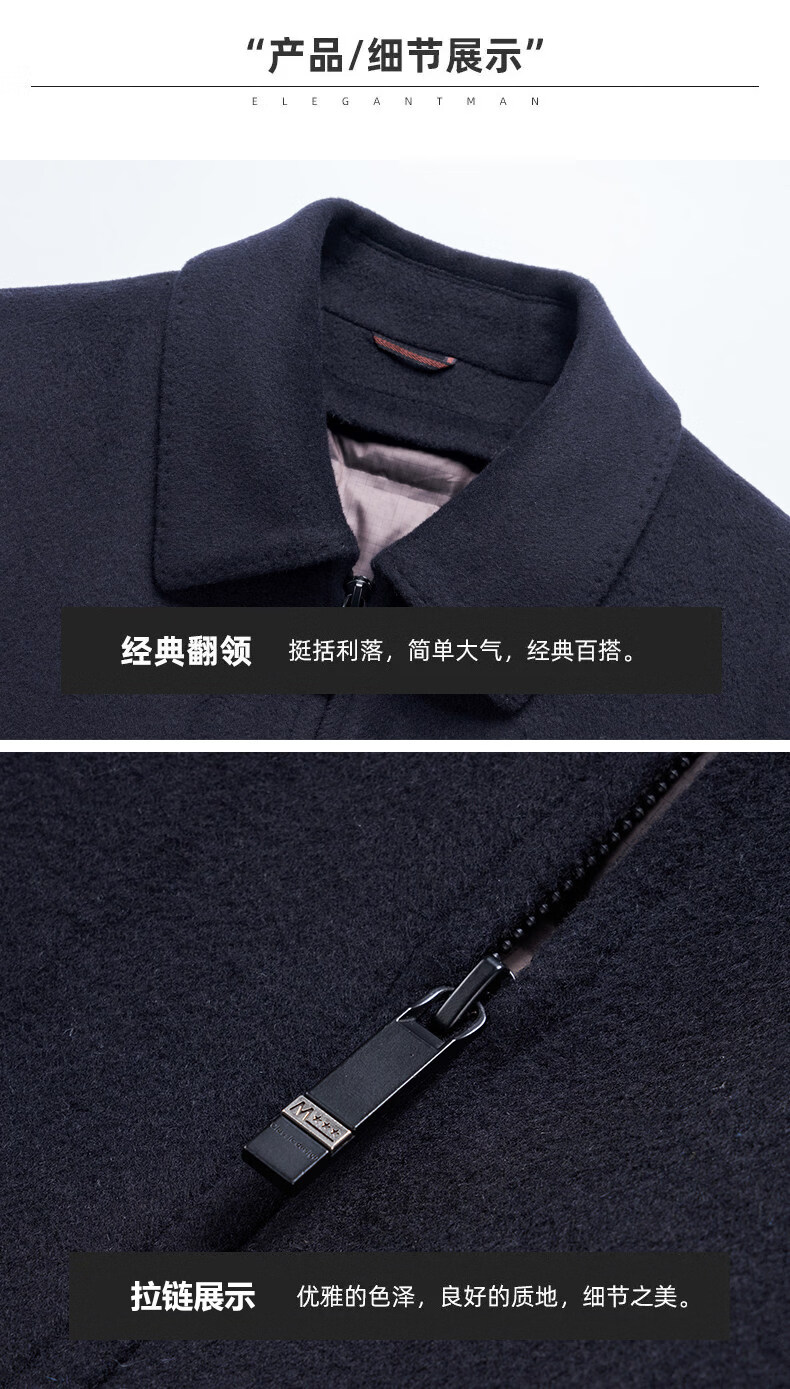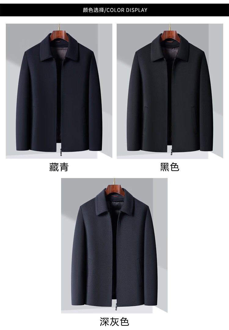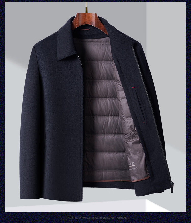 JOEONE high-end woolen winter thickened jacket men's removable liner business short loose woolen jacket navy blue S 170