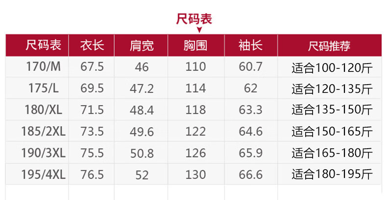China (cm) 165 / 88-90 170 / 96-98 175 / 108-110 180 / 118-122 185 / 126-130