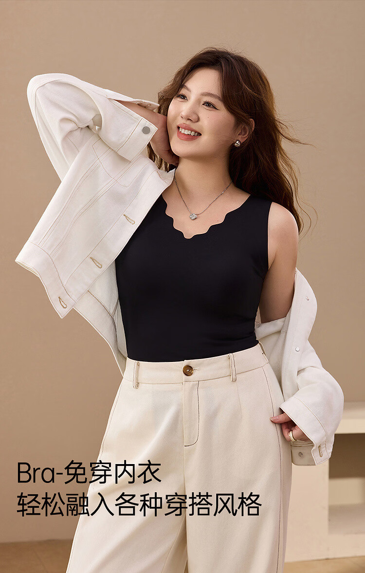 Comes with chest pad vest sling plus size women's soft skin-friendly bottoming shirt fat mm autumn new style black XL /2