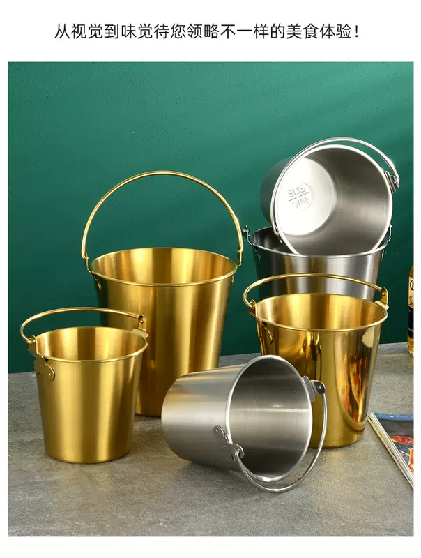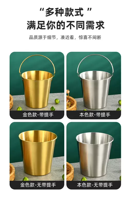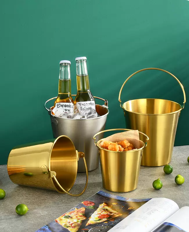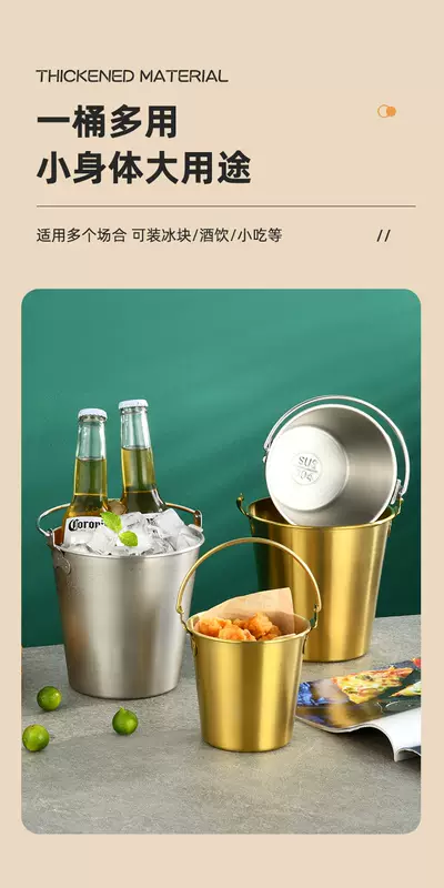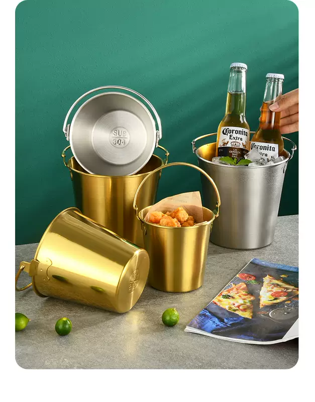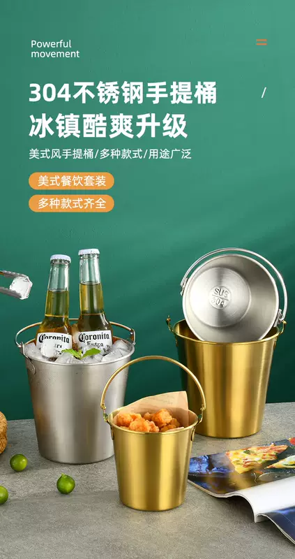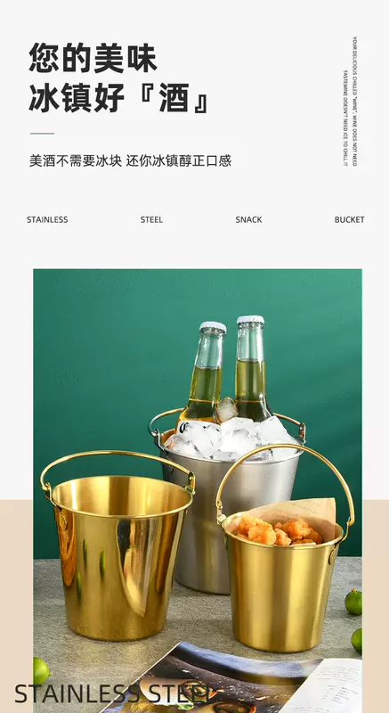 Yusenyi 304 stainless steel ice bucket outdoor camping home ice bucket bar KTV champagne beer wine hotel snack bucket 304 stainless steel small size (0.7L1 pack) with handle to send ice clip