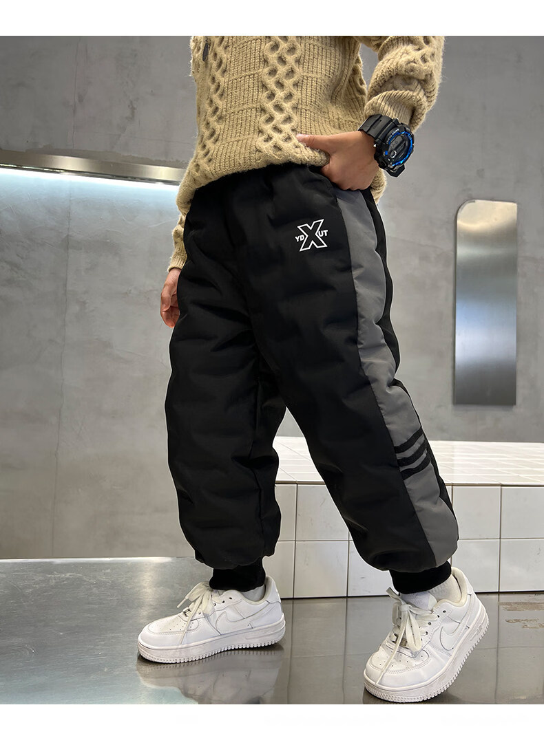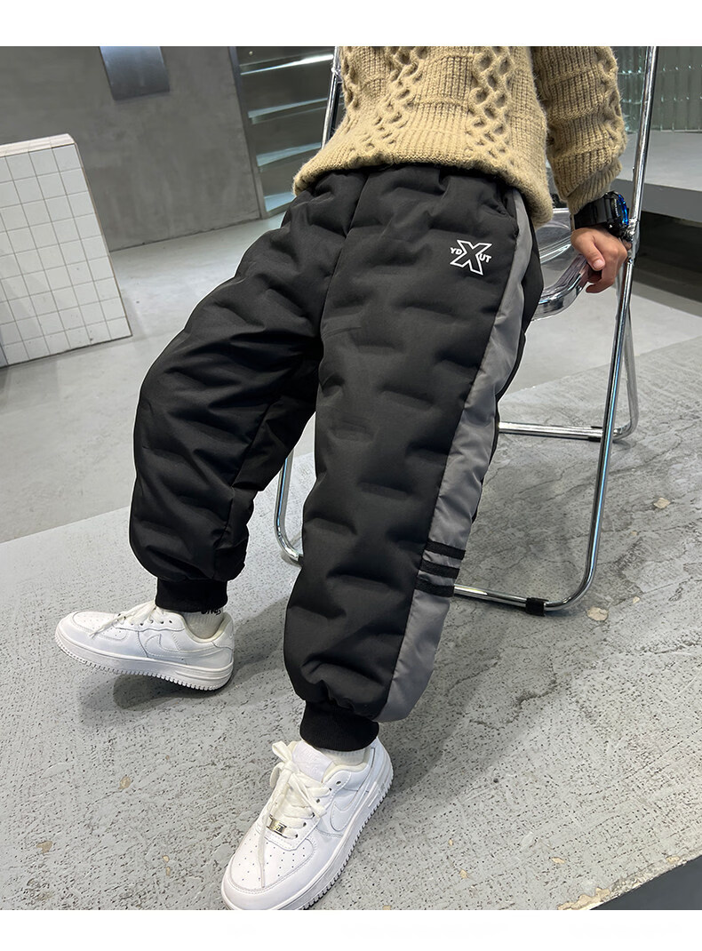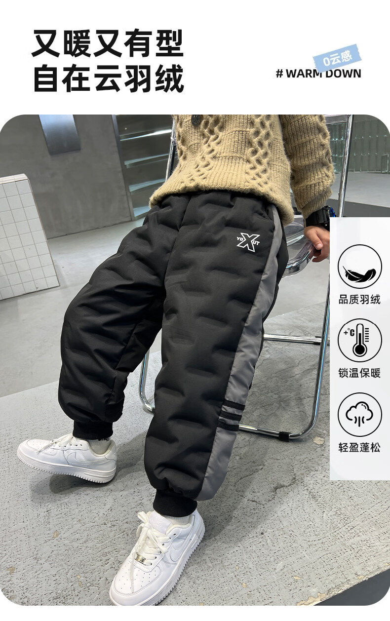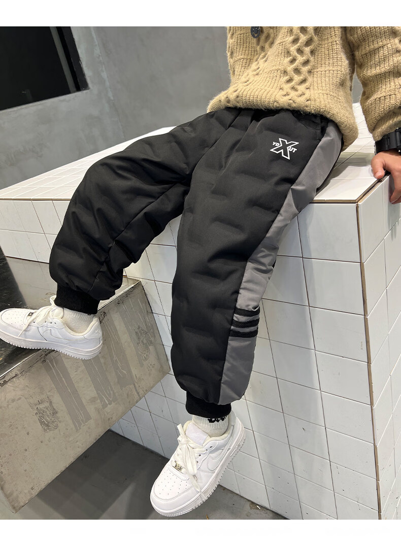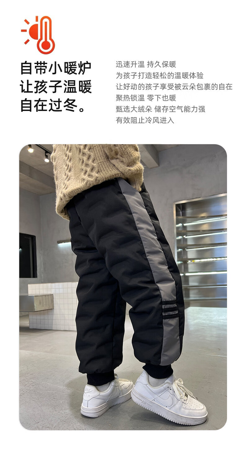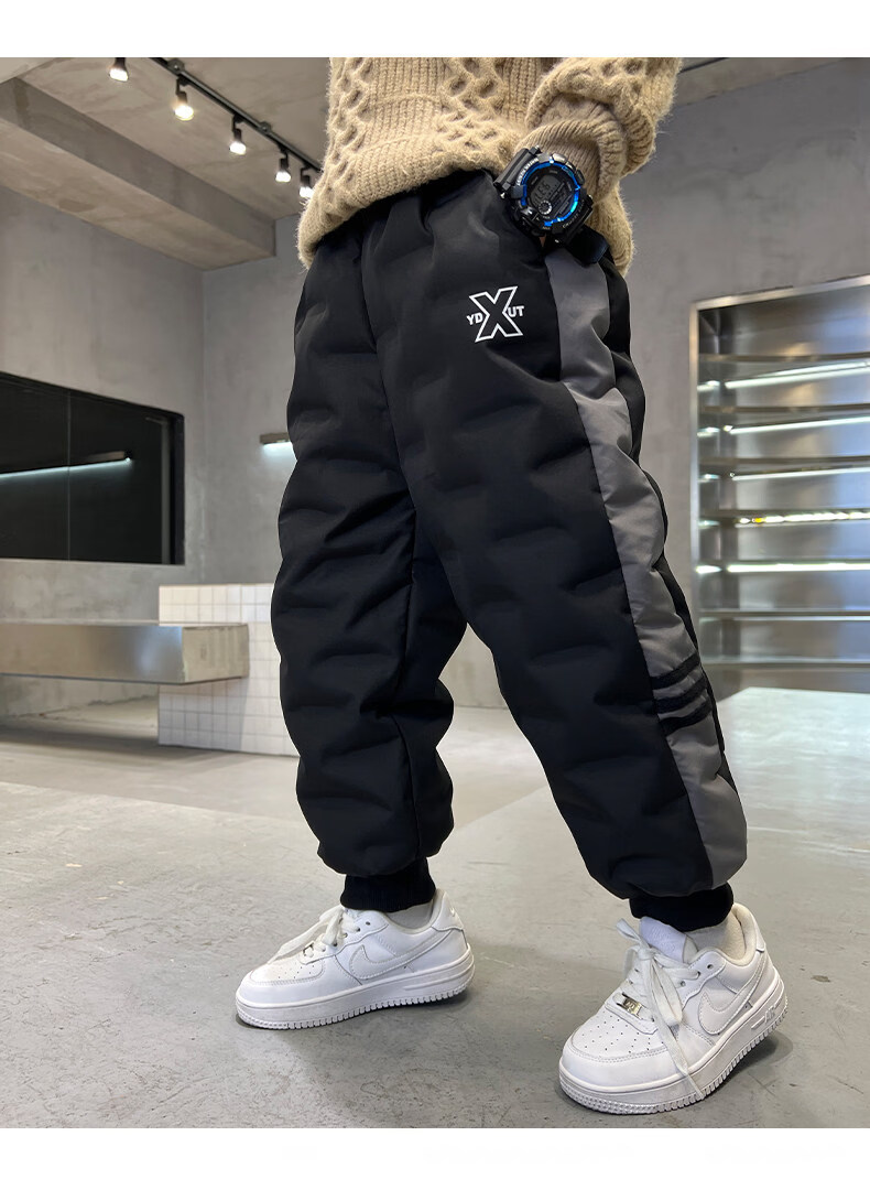 HAL.DUCK boys' down pants 2026 new autumn and winter children's one pair of winter thickened and warm boys' winter big children's cotton pants black 140 cm