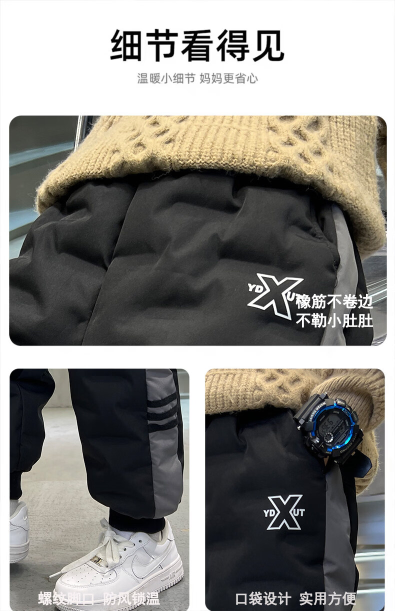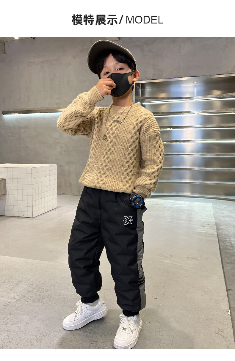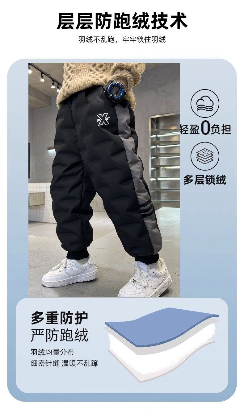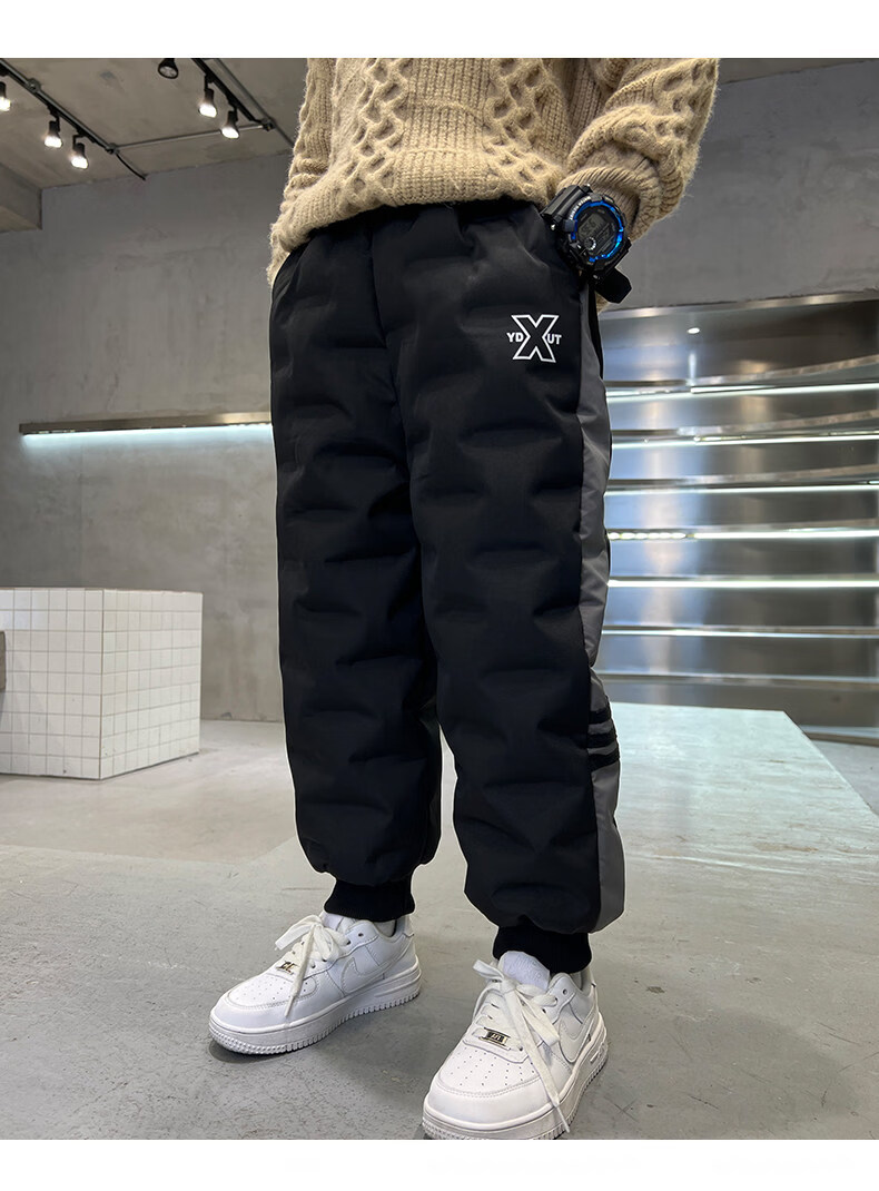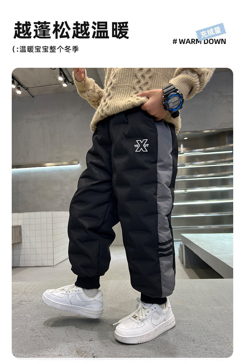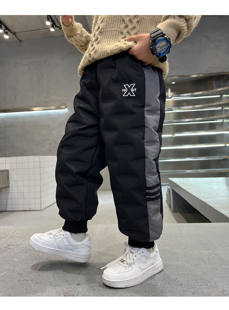 HAL.DUCK boys' down pants 2026 new autumn and winter children's one pair of winter thickened and warm boys' winter big children's cotton pants black 140 cm