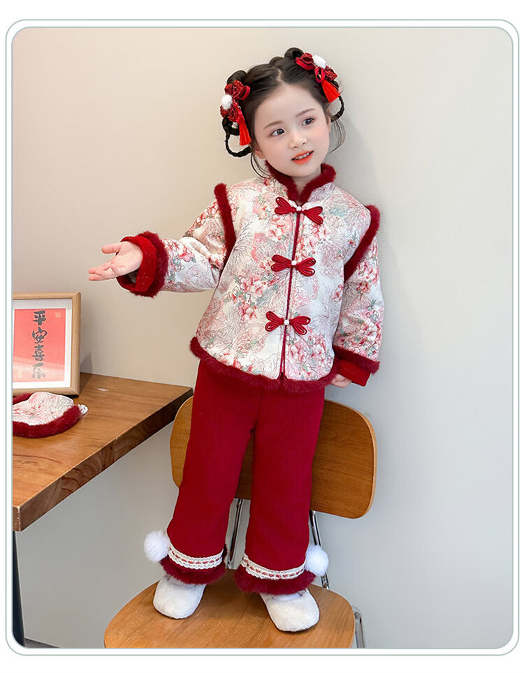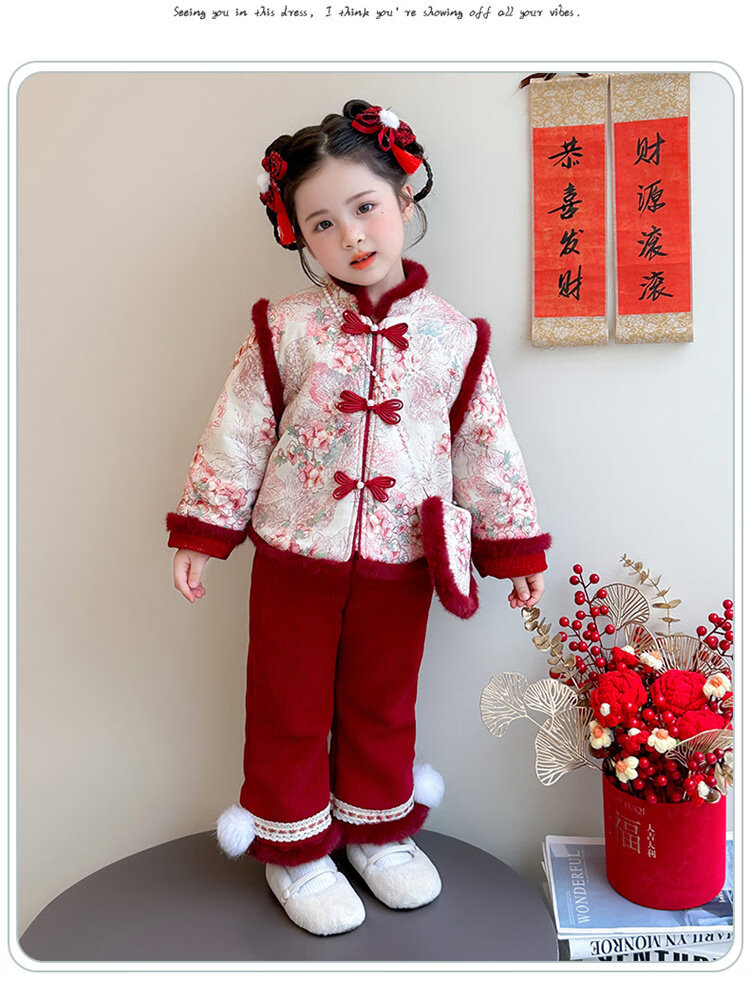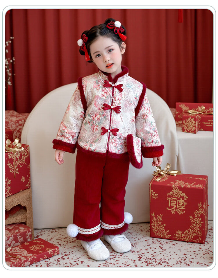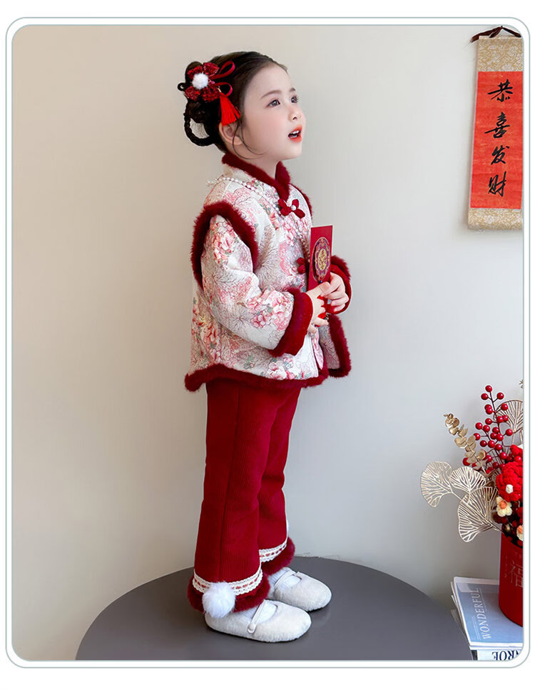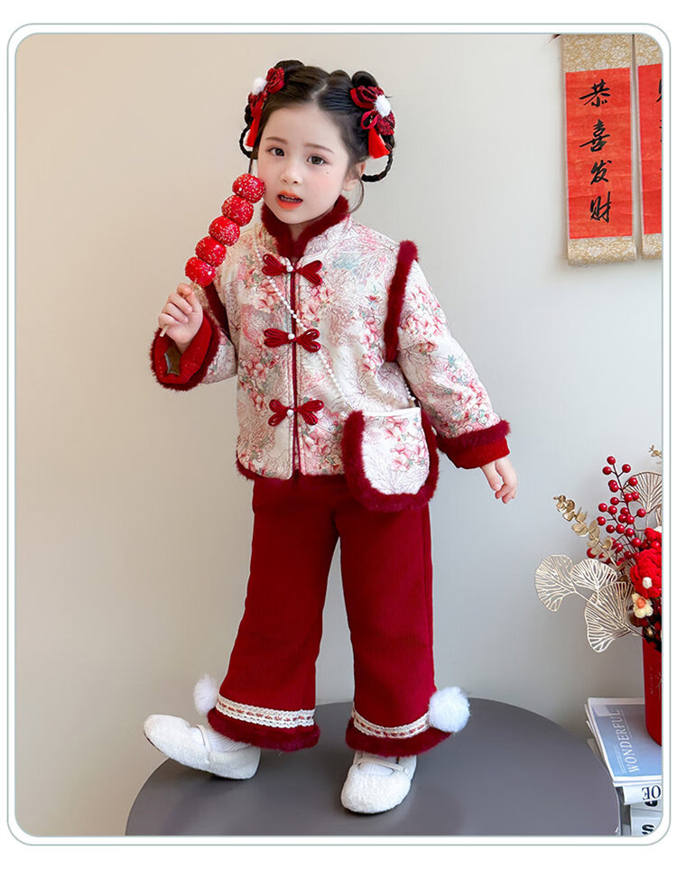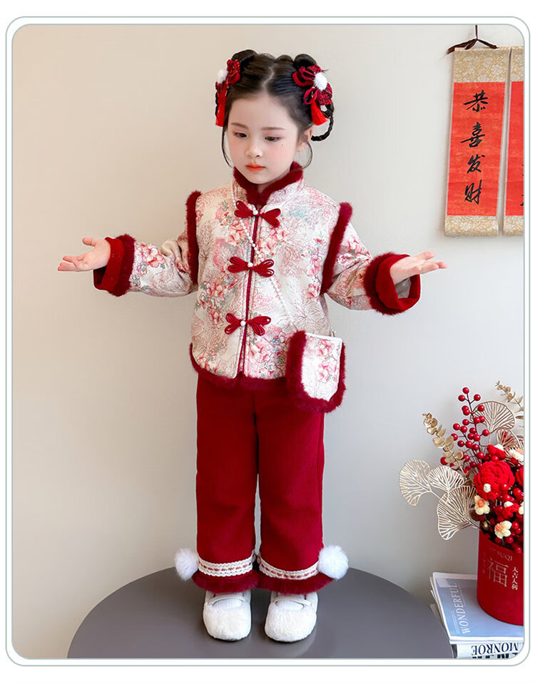 Disney Girls Thickened New Year Clothes Winter Clothes 2026 New Children's New Year Plum Blossom Baby Girl Festive New Year Clothes Set Red 90 (Recommended 80-90cm 1-2 years old or so)