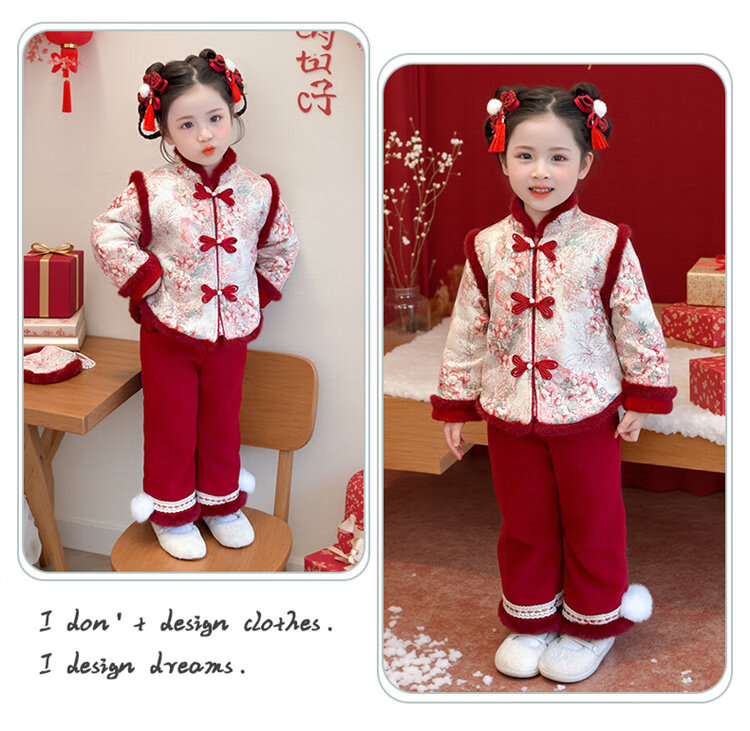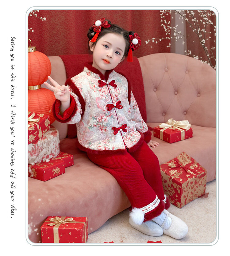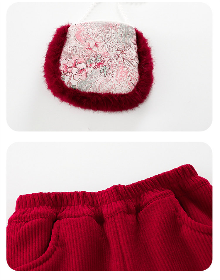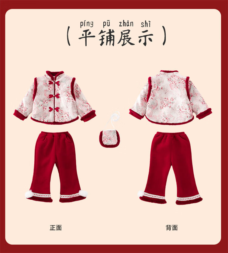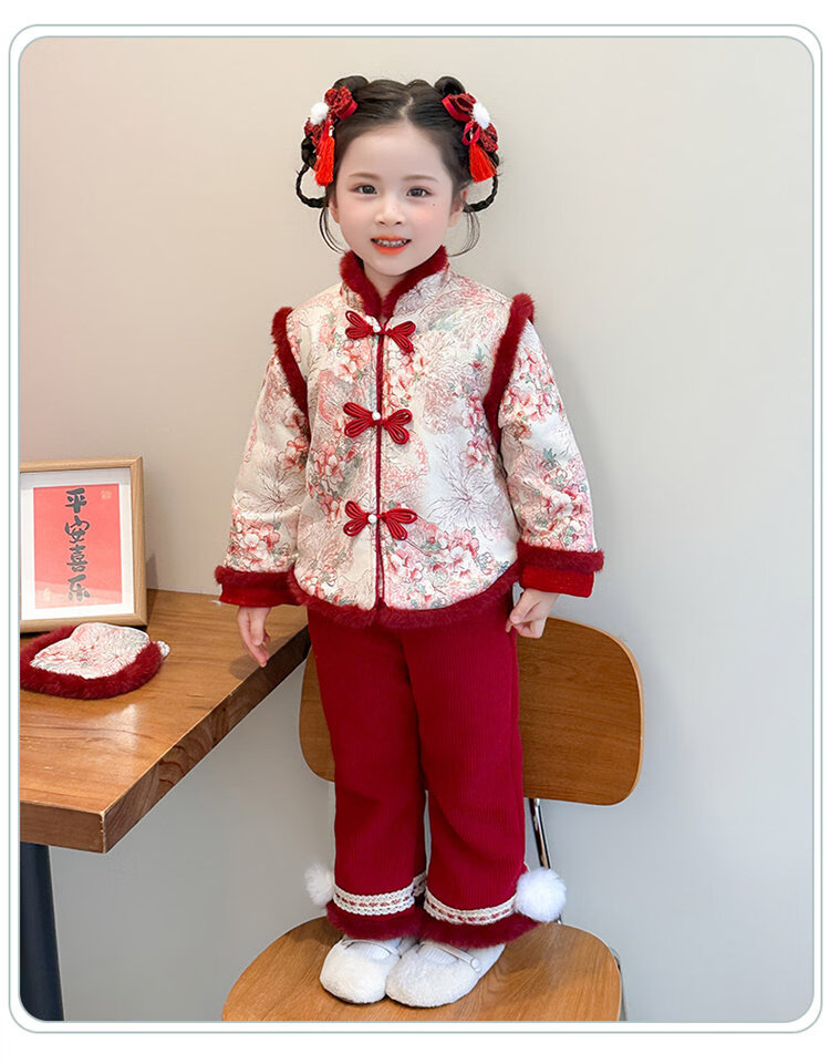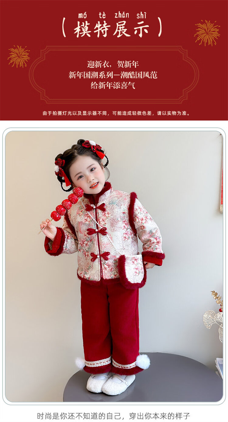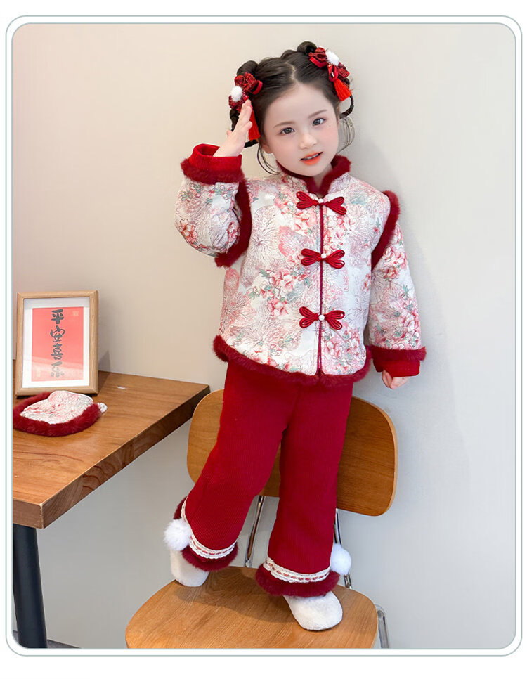 Disney Girls Thickened New Year Clothes Winter Clothes 2026 New Children's New Year Plum Blossom Baby Girl Festive New Year Clothes Set Red 90 (Recommended 80-90cm 1-2 years old or so)