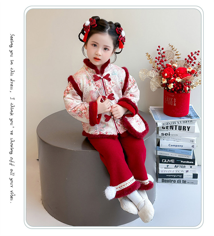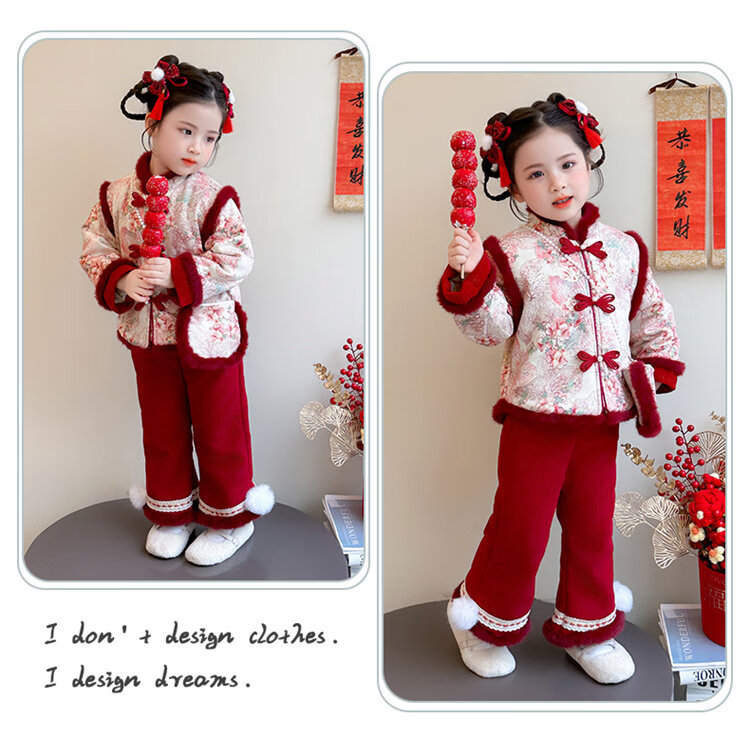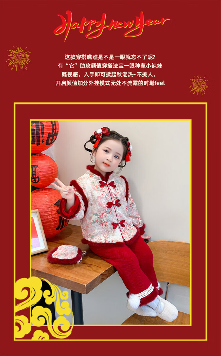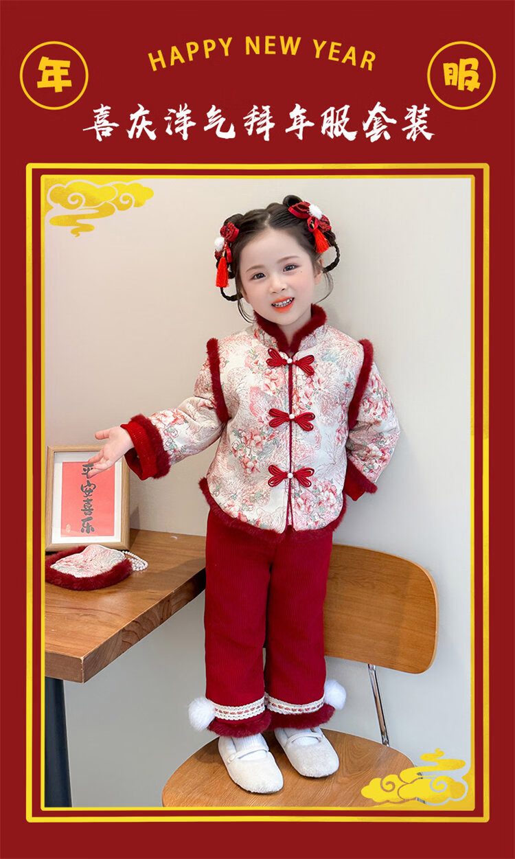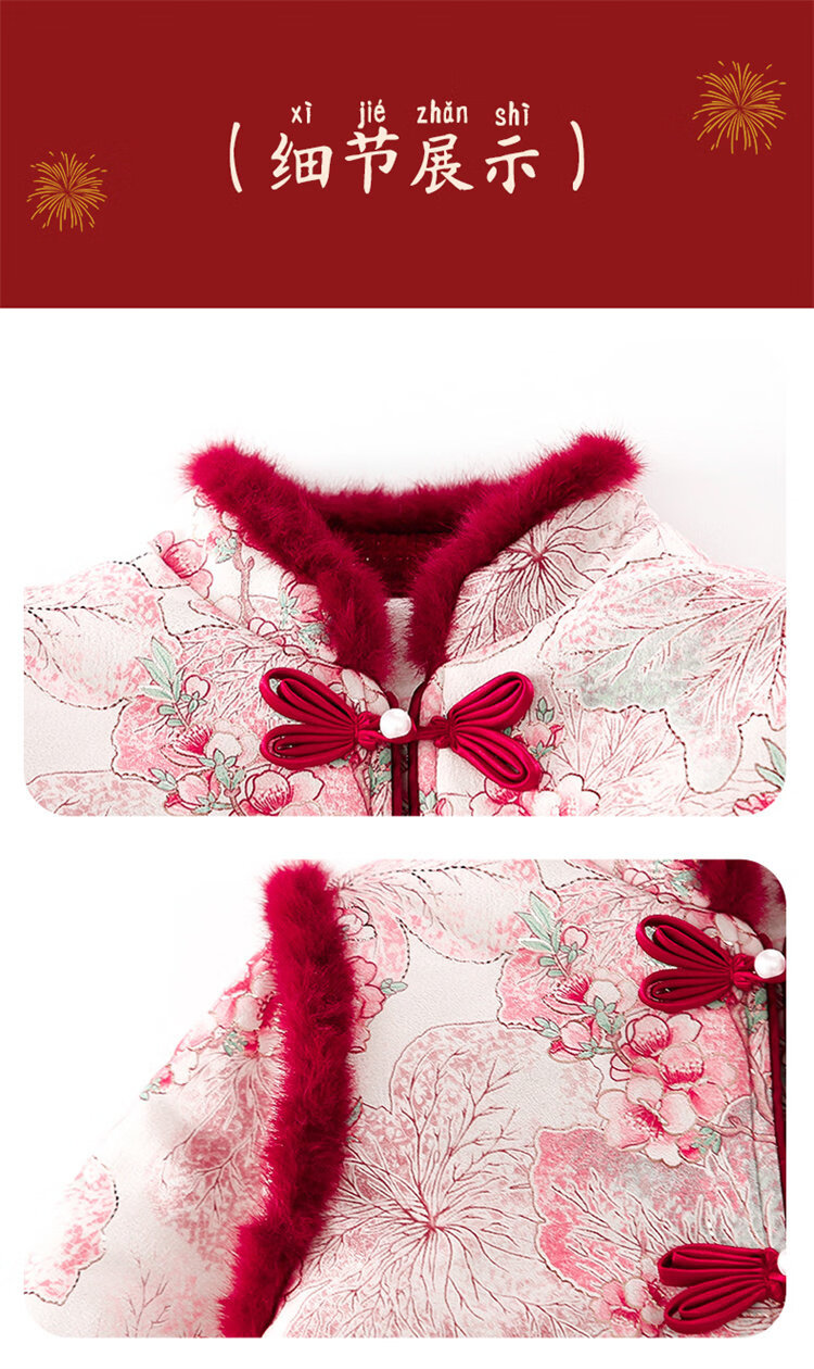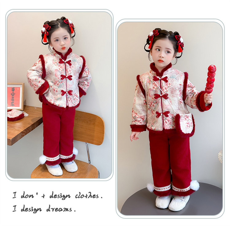 Disney Girls Thickened New Year Clothes Winter Clothes 2026 New Children's New Year Plum Blossom Baby Girl Festive New Year Clothes Set Red 90 (Recommended 80-90cm 1-2 years old or so)