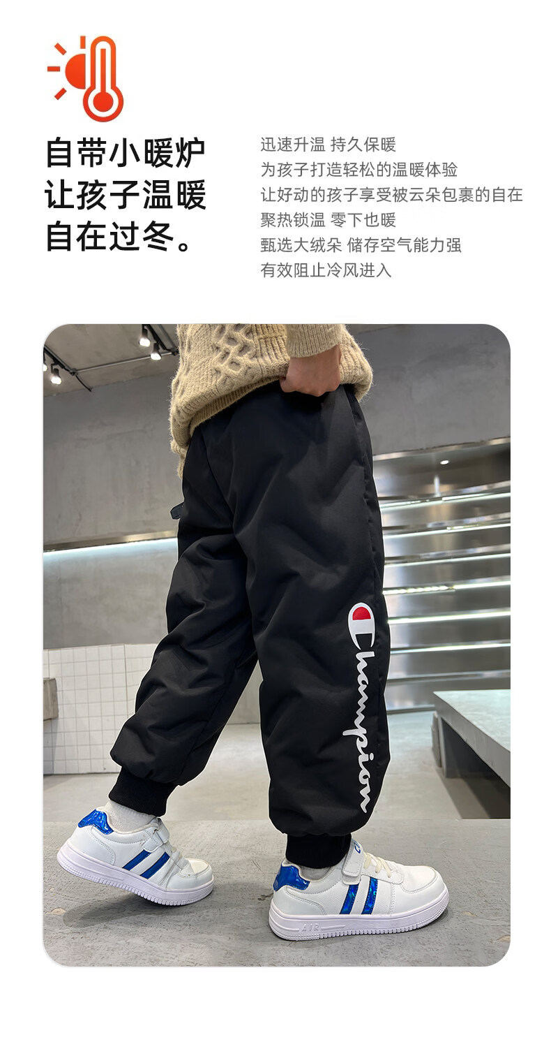 Disney Boys' Down Pants 2026 New Autumn and Winter Children's One Pair of Winter Thickened Big Children's Winter Warm Boys' Cotton Pants Black 160 cm