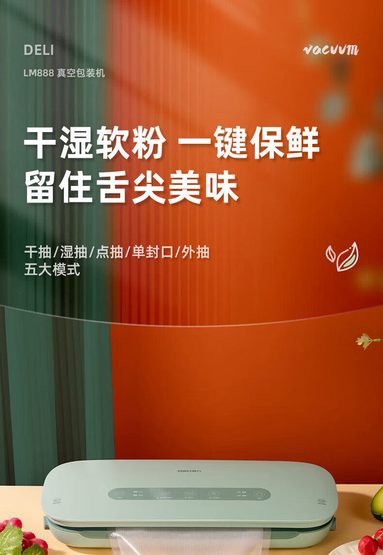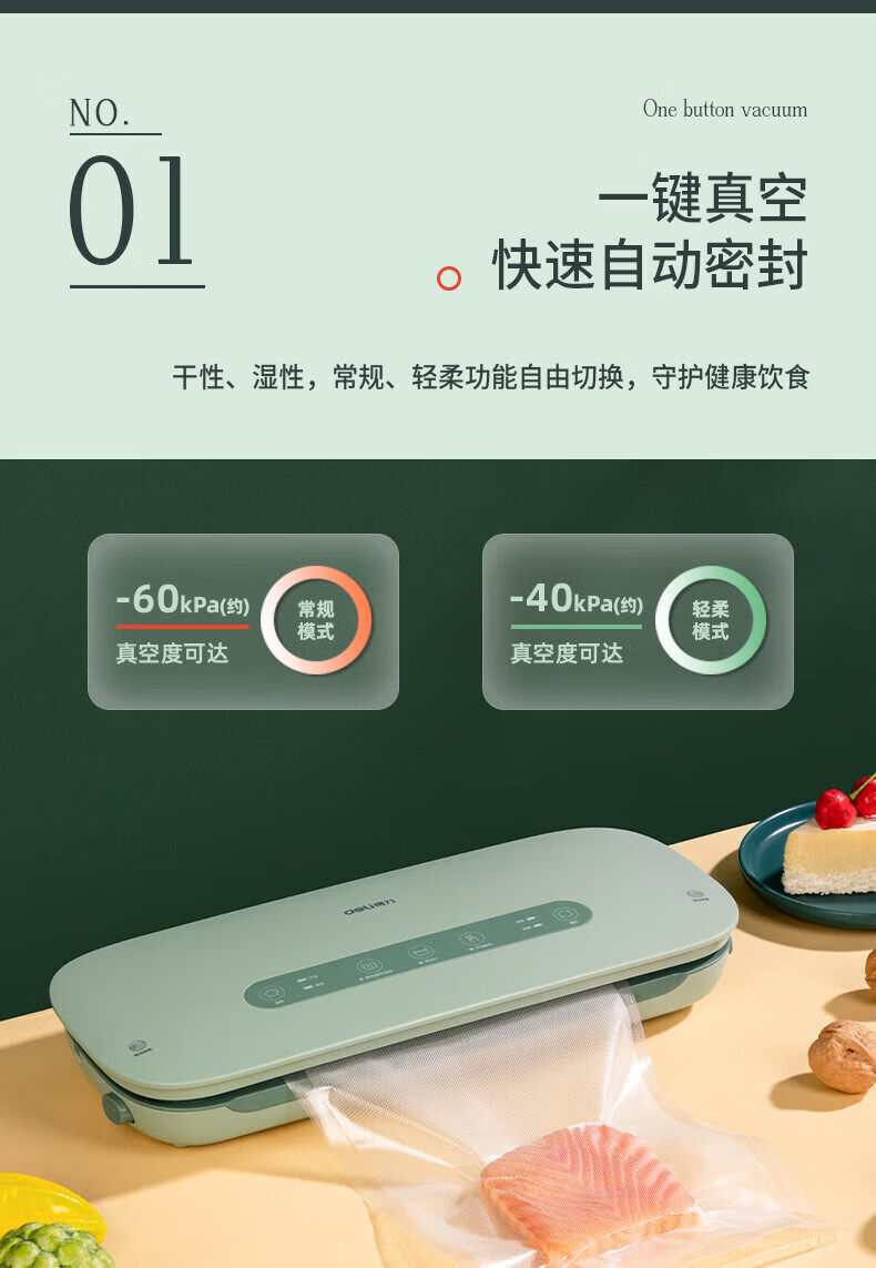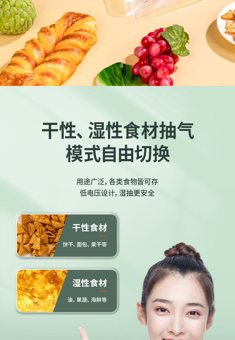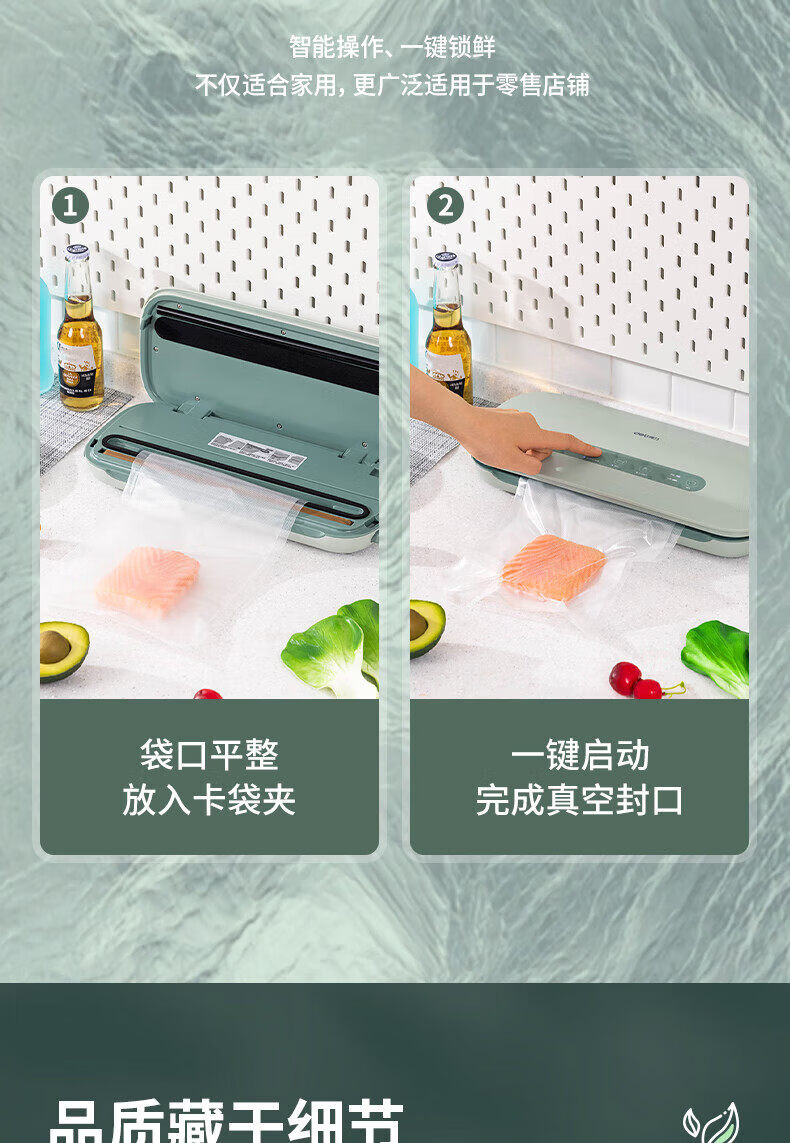 Hongdao sealing machine vacuum machine household vacuum sealing machine small household commercial food sealing machine fresh-keeping vacuum bag wet and dry use LM888 white-60kpa+send external pumping tube