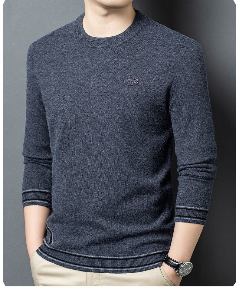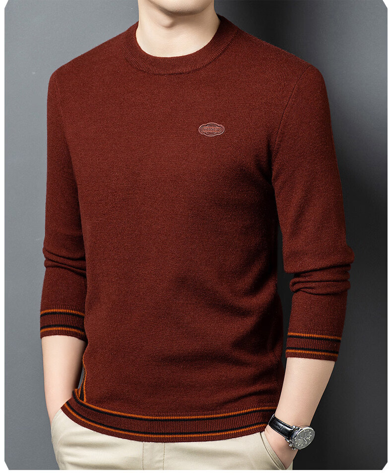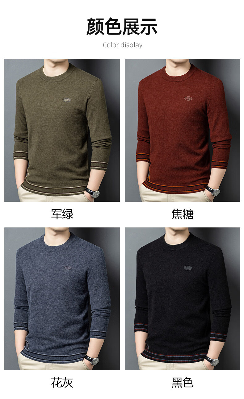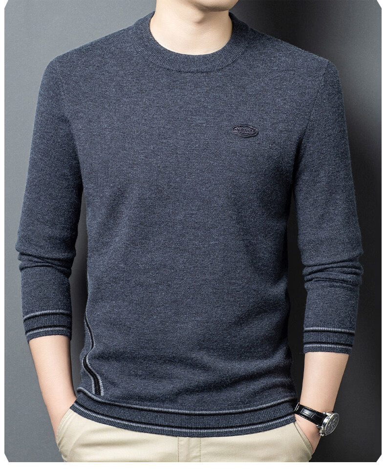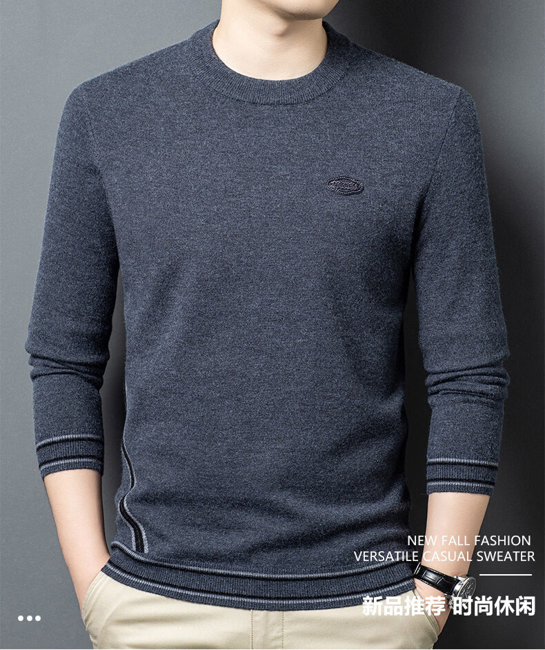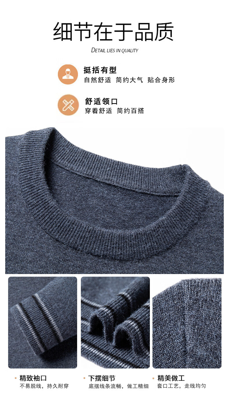 国际米澜鄂尔多斯市产100%羊毛衫男士圆领毛衣厚秋冬新款时尚休闲羊.绒衫 花灰 【高档特级不起球2025秋冬新款】 XL 175(建议体重140-160斤)