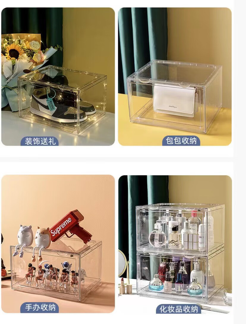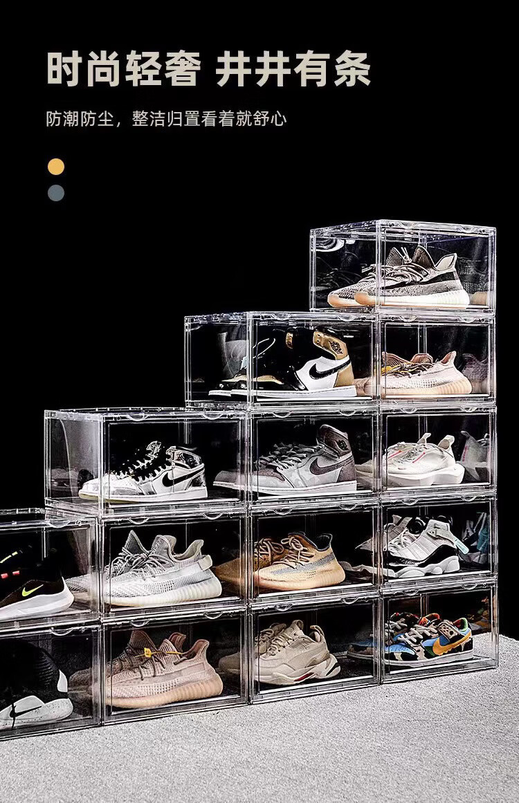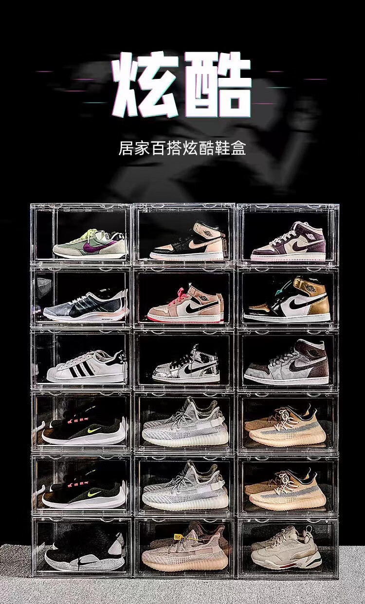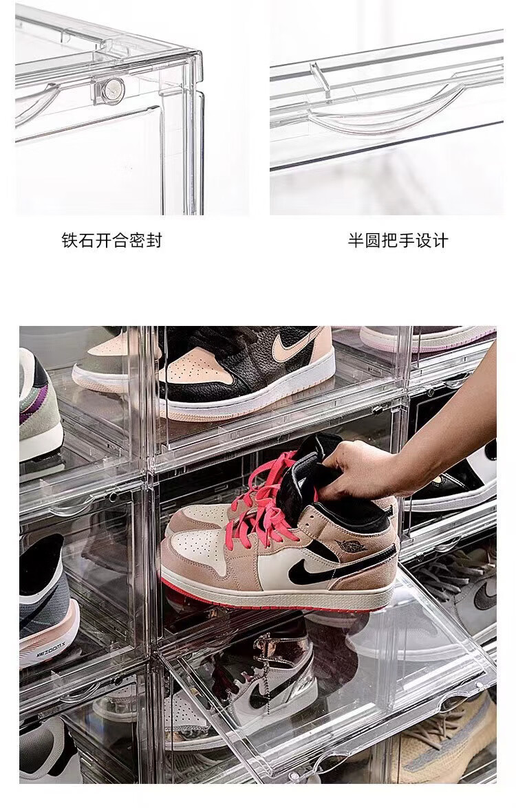 Yong Huan Full Hard High Transparent Shoe Box Shoe Wall Magnetic Absorption Box Sneaker Box Magnetic Side Opening Dustproof Anti-Oxidation Six Sided Wall Cabinet Ten Packs Six Sided High Transparent Side Opening Product Explanation Video Right