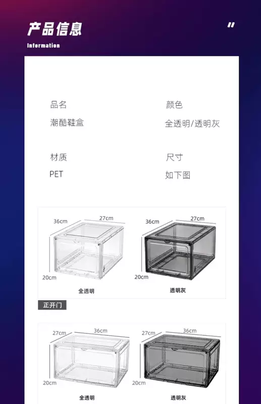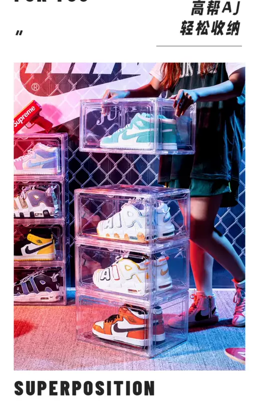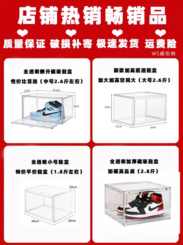 Yusenyi Transparent Acrylic Shoe Box Storage Box Transparent Flip Magnetic Side-Opening Shoe Cabinet AJ Sneaker Storage Display Box (Super Transparent Large Side-Opening Shoe Box) 10 Pack (Super Transparent Large Side-Opening Shoe Box) 10 Pack 36x27x20cm 36 pcs 36x27x20cm