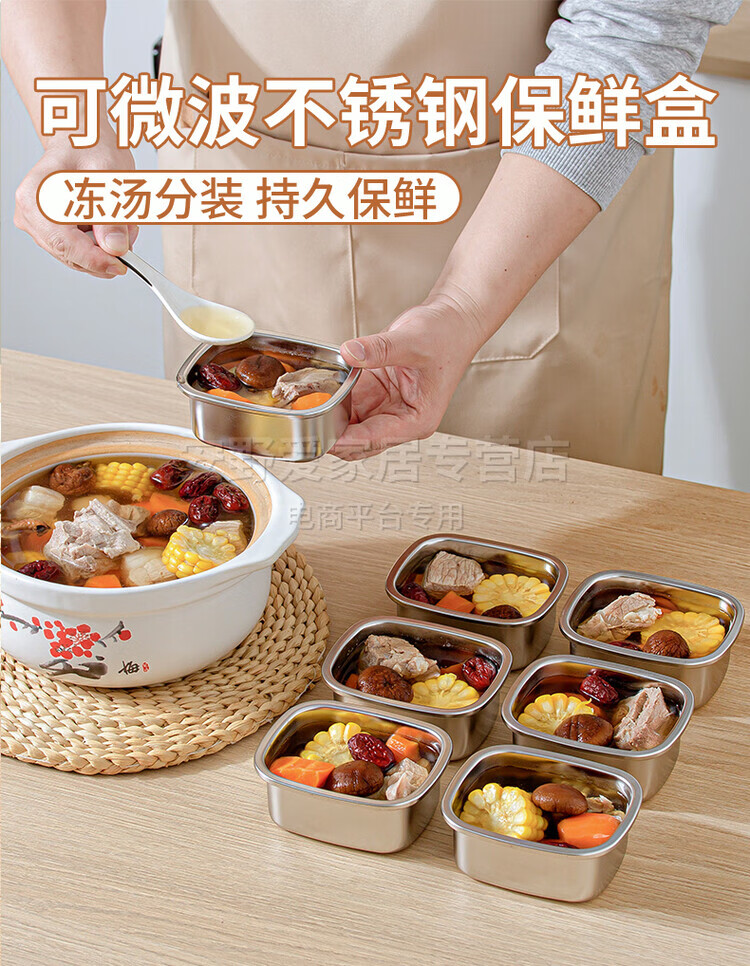 Sailotou stainless steel packaging box 304 frozen soup stewed chicken soup stock frozen storage can be steamed and cooked crisper box 280ml 6 pieces 304 stainless steel default 280ml 6 pieces 304 stainless steel default