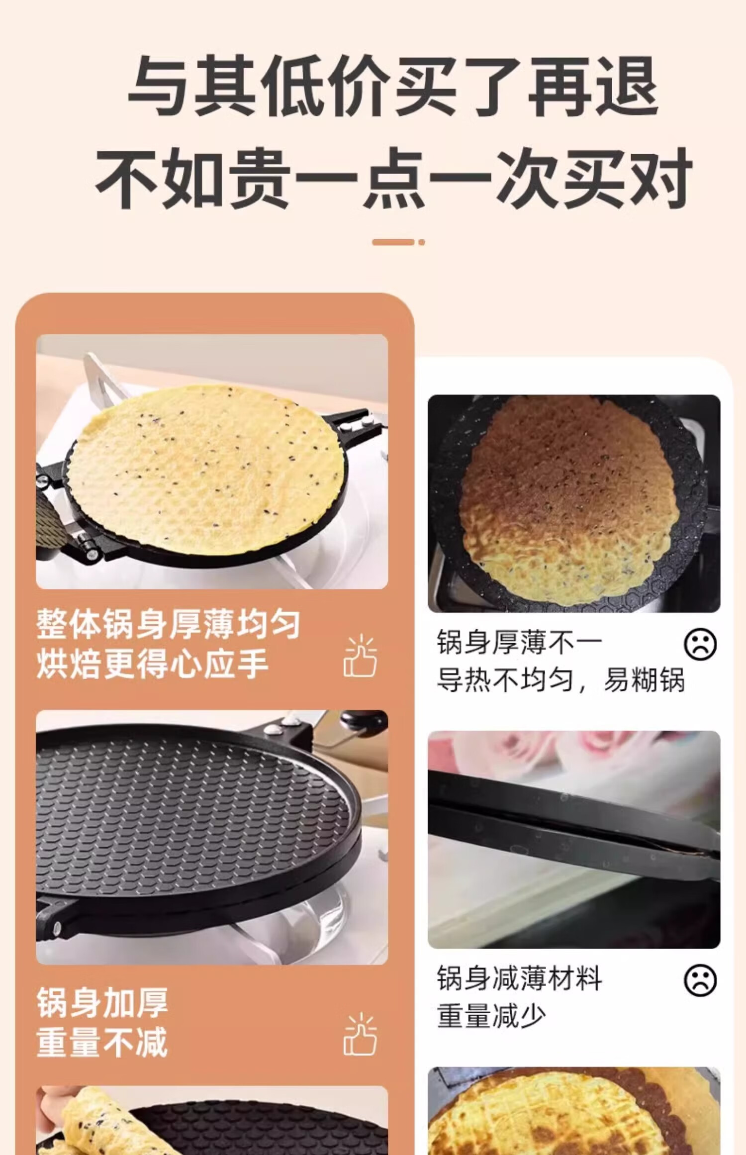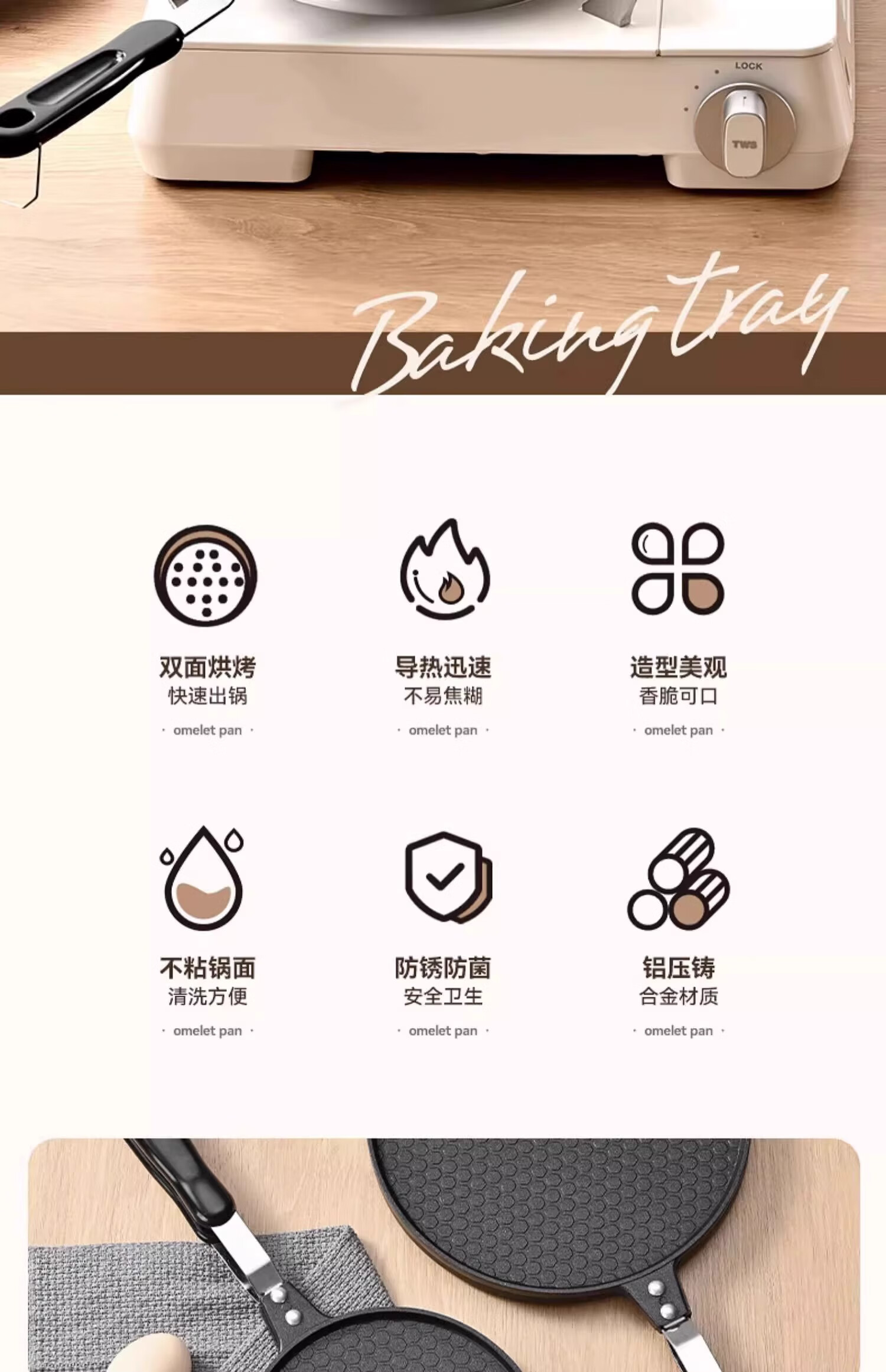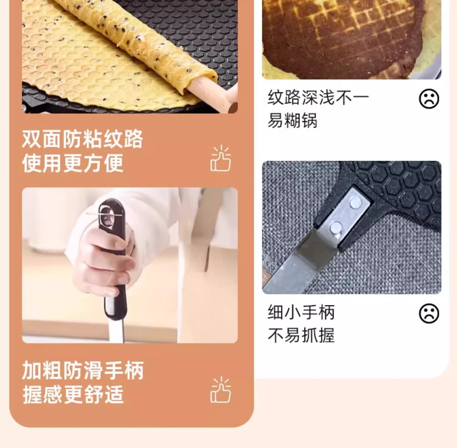 CAMTE egg roll machine, egg roll pan, household baking tools, waffle machine, crispy baking pan, double-sided cookie mold, egg roll machine 22cm upgraded honeycomb model