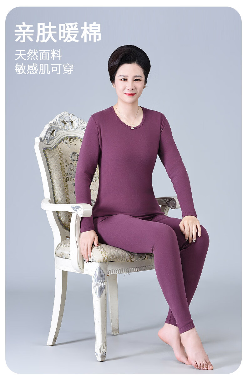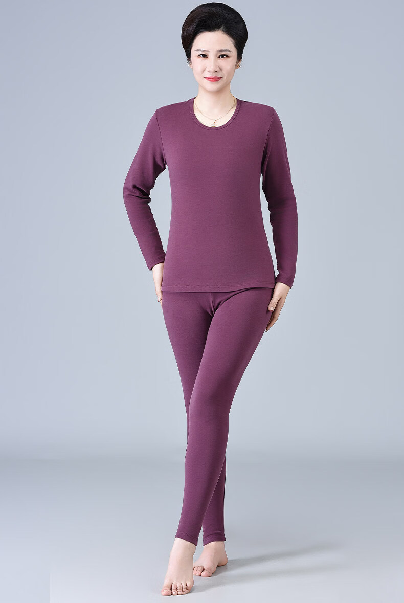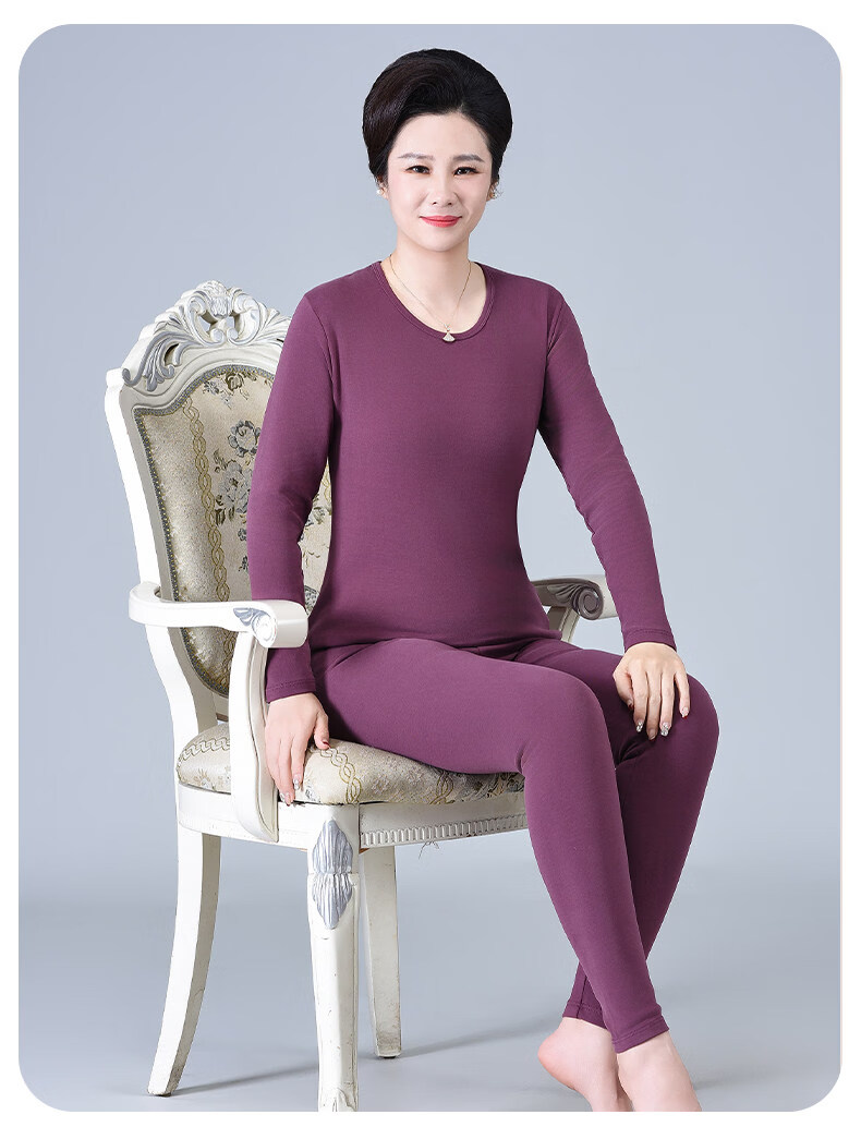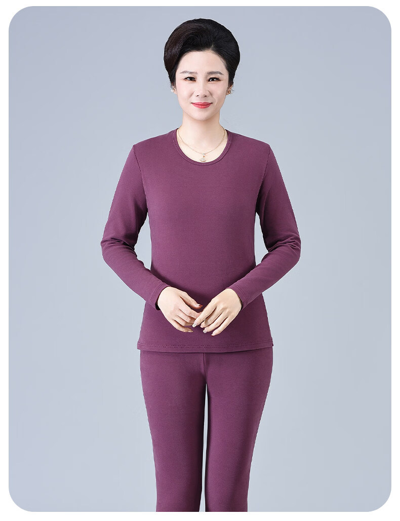 Yalu middle-aged and elderly women's thermal underwear, pure cotton thickened zodiac year maroon autumn clothes and long johns set for women brand maroon - round neck thickened L (recommended 80-105 Jin Jin equals 0.5 kg)