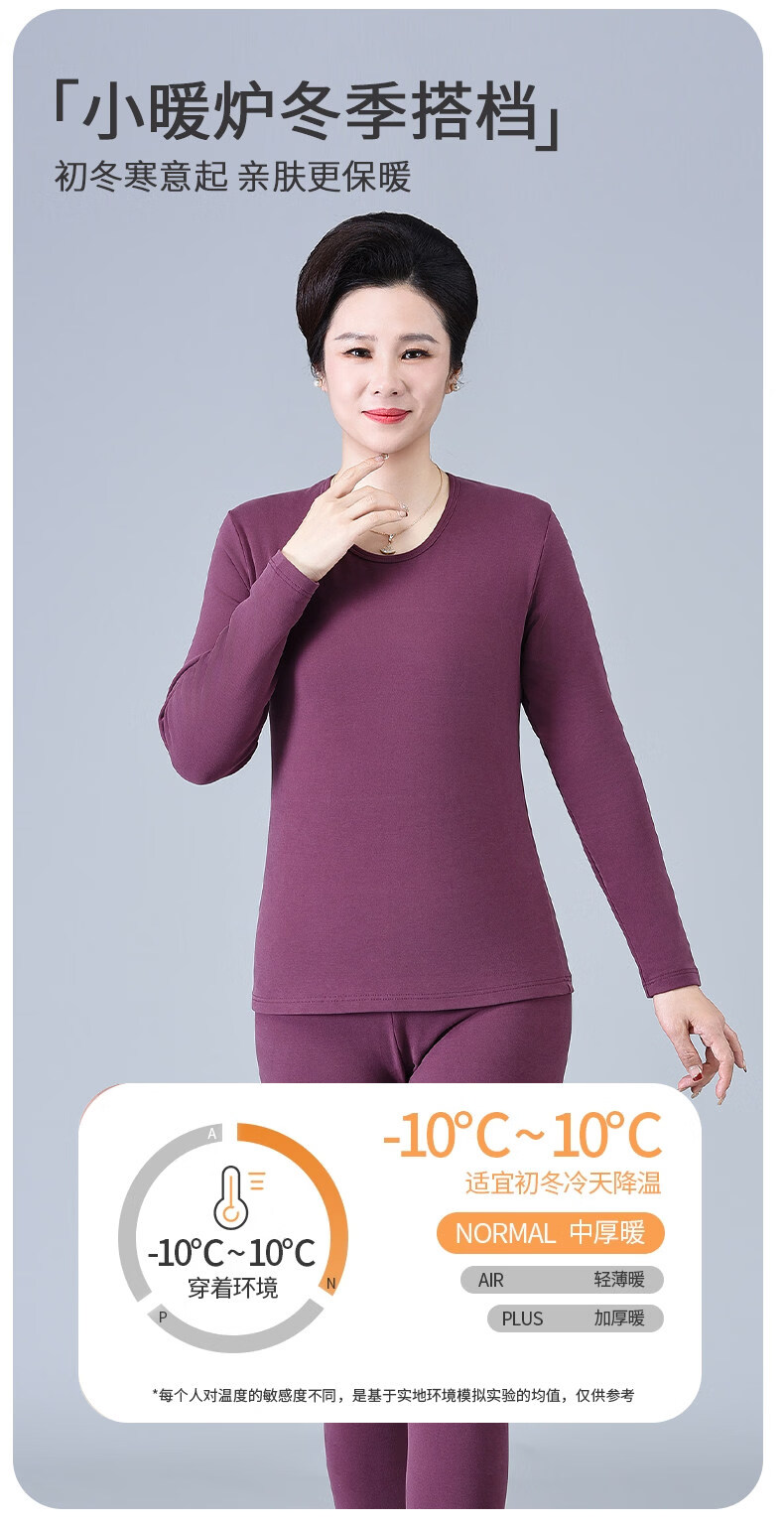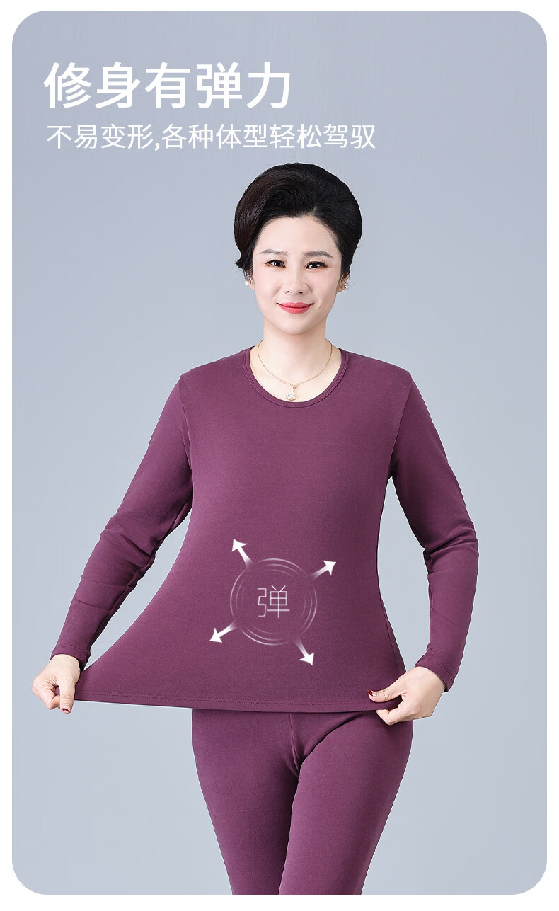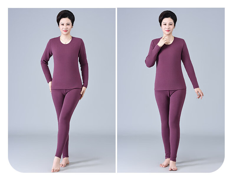 Yalu middle-aged and elderly women's thermal underwear, pure cotton thickened zodiac year maroon autumn clothes and long johns set for women brand maroon - round neck thickened L (recommended 80-105 Jin Jin equals 0.5 kg)