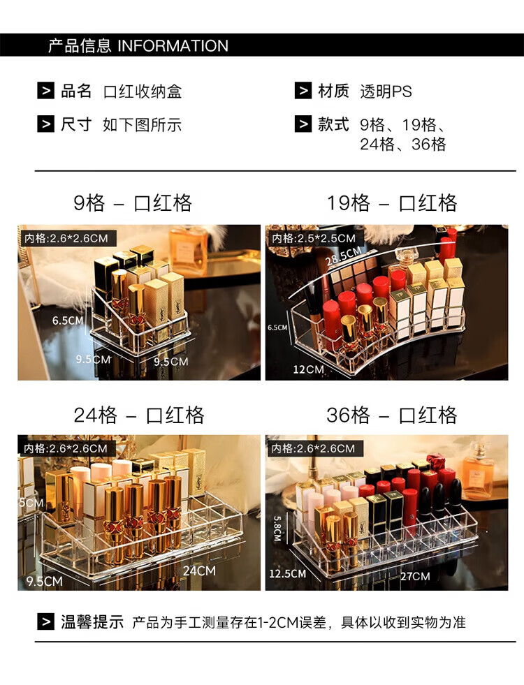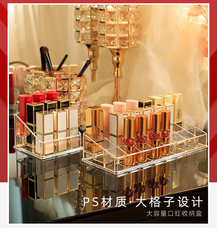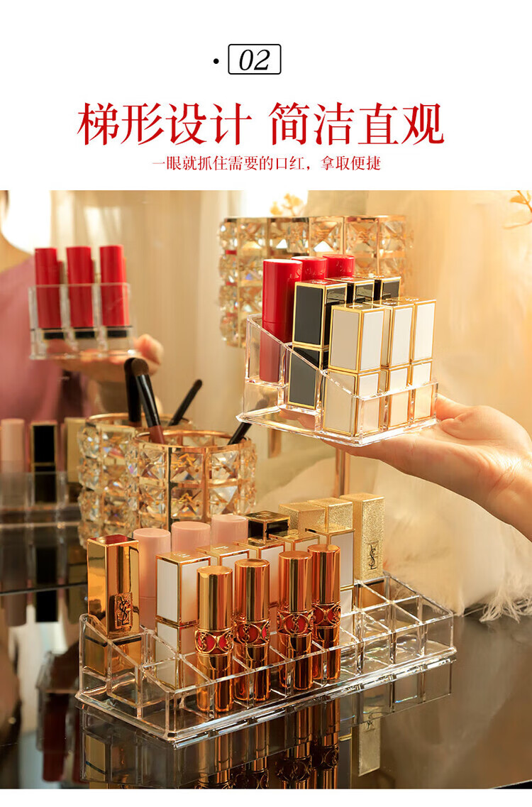 Sailotou lipstick storage box multi-grid ins style lip glaze storage rack internet celebrity transparent desktop lipstick box organizer 16-grid Guerlain box