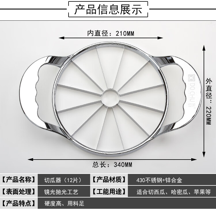 Dongchu Extra Large Stainless Steel Watermelon Cutting Multifunctional Cantaloupe Cutting Slicer Apple Silver All-Steel Round Melon Slicer