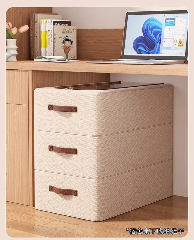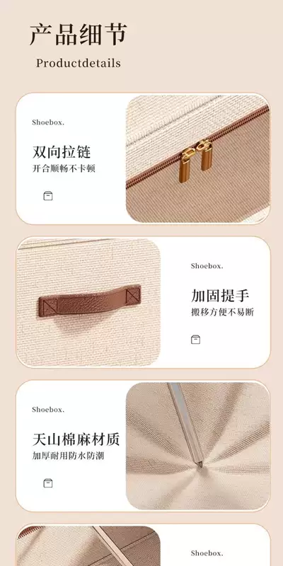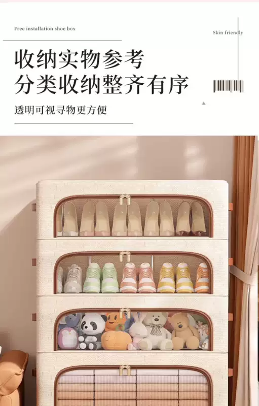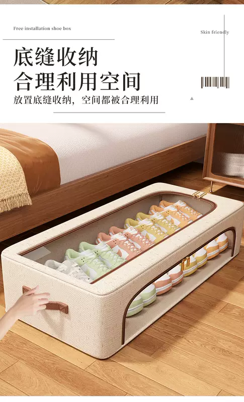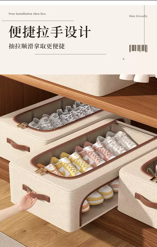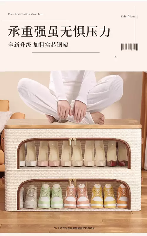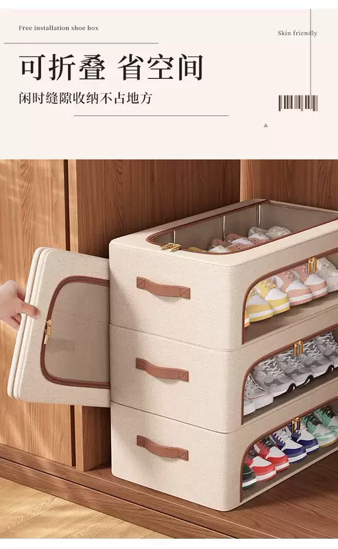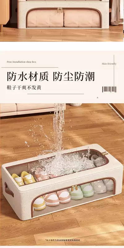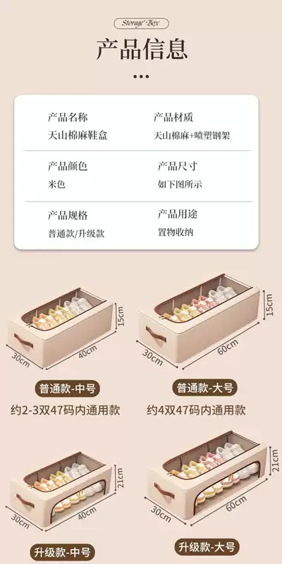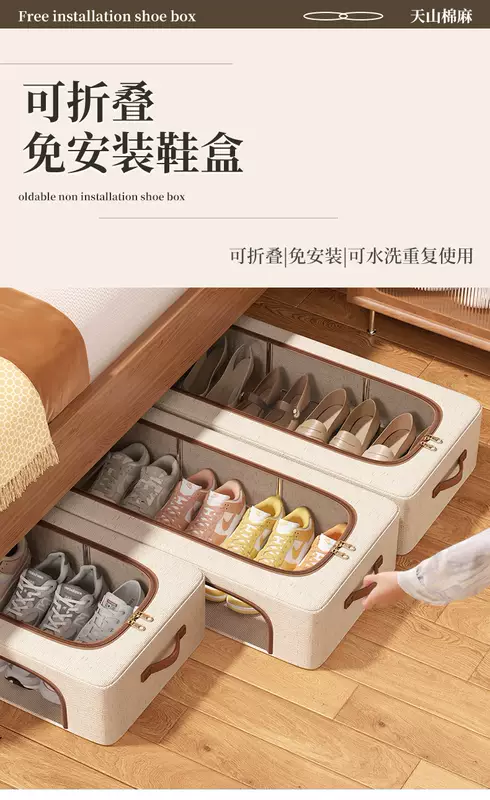 Yusenyi shoe storage artifact Tianshan cotton and linen shoe box box transparent shoe box space saving thickened dust-proof shoe cabinet bed bottom folding single window large Tianshan linen material thick steel frame 60x30x15
