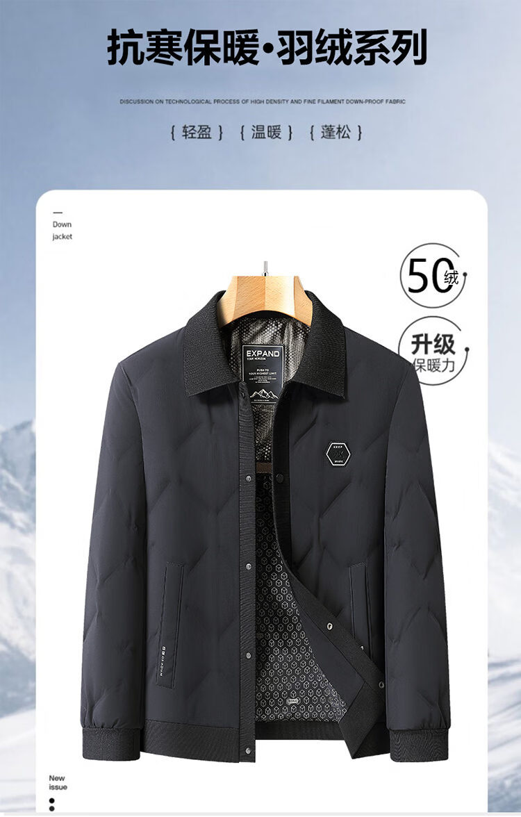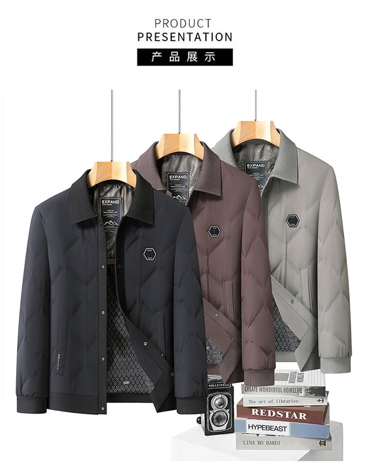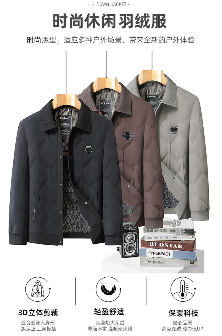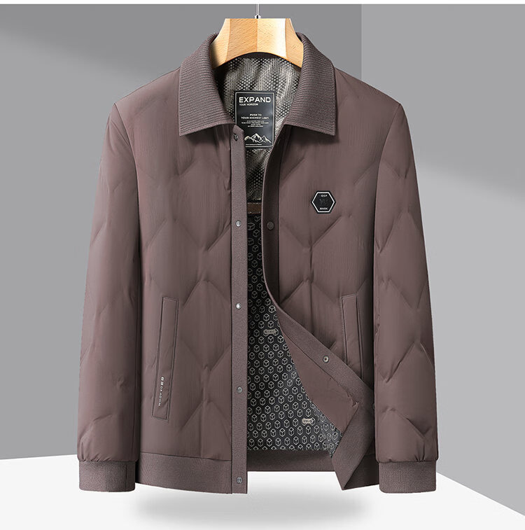 Hengyuanxiang 2025 new winter business white duck down jacket men's middle-aged dad's clothing stand-up collar thickened middle-aged men's clothing brown L
