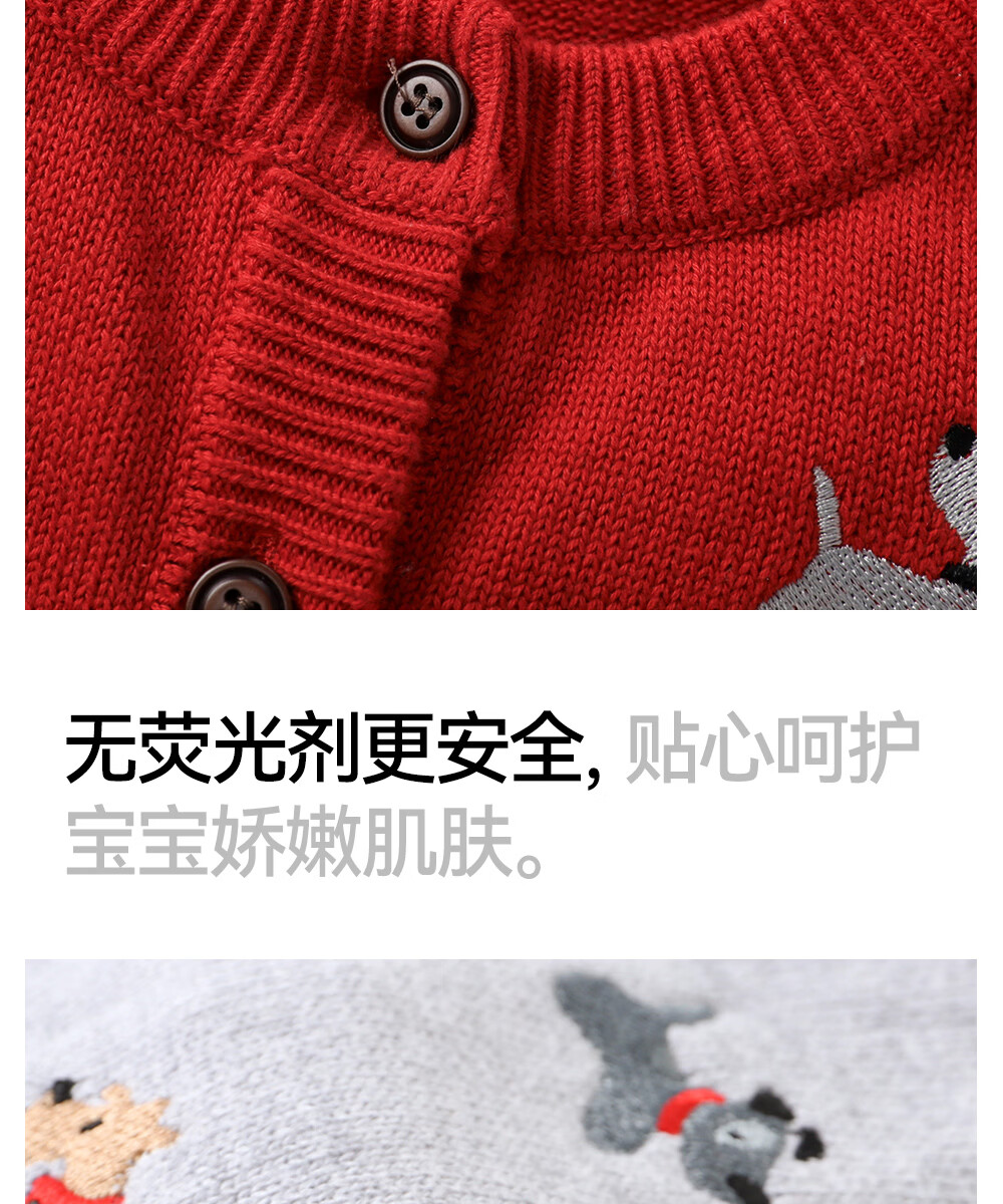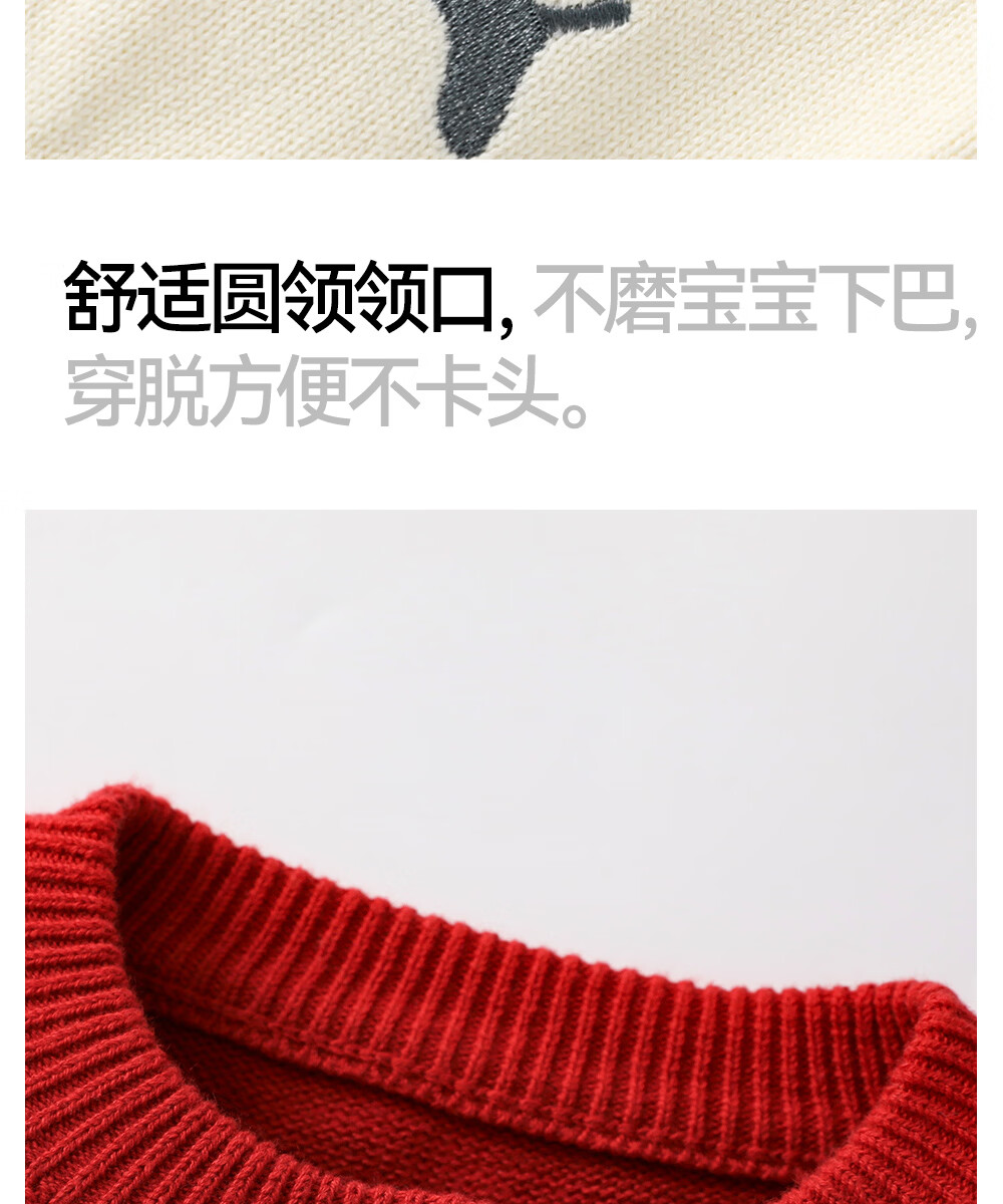 Betis Children's Sweater Autumn and Winter Thickened Sweater for Boys and Girls Sweater Warm Jacket New Year Sweater Red 110 cm