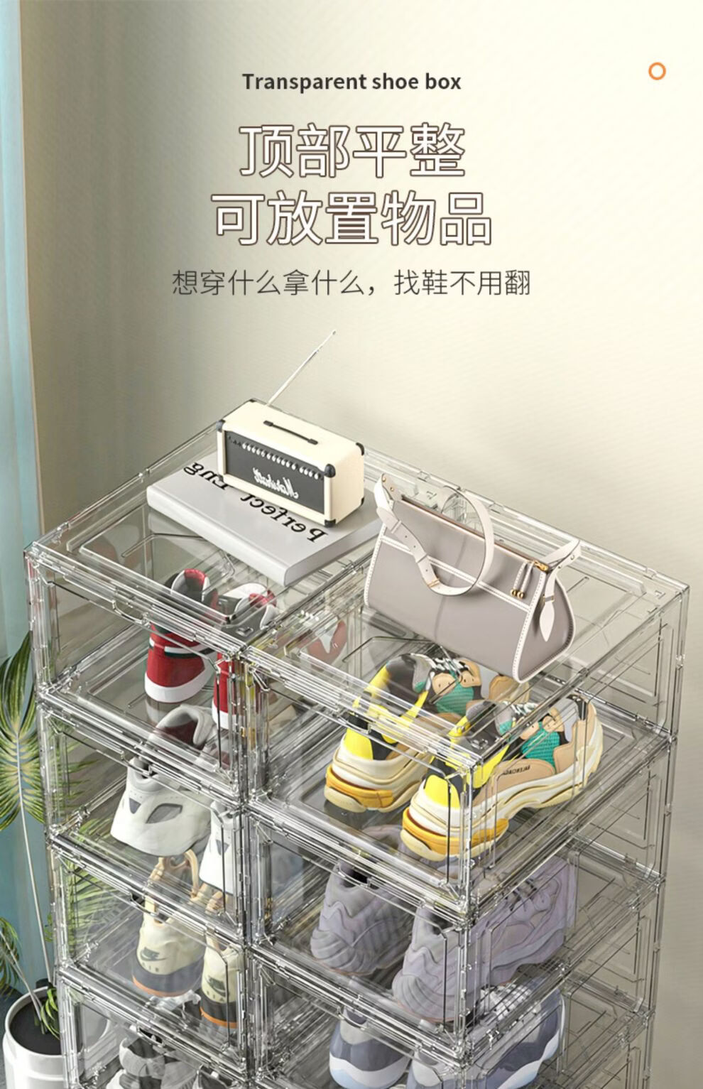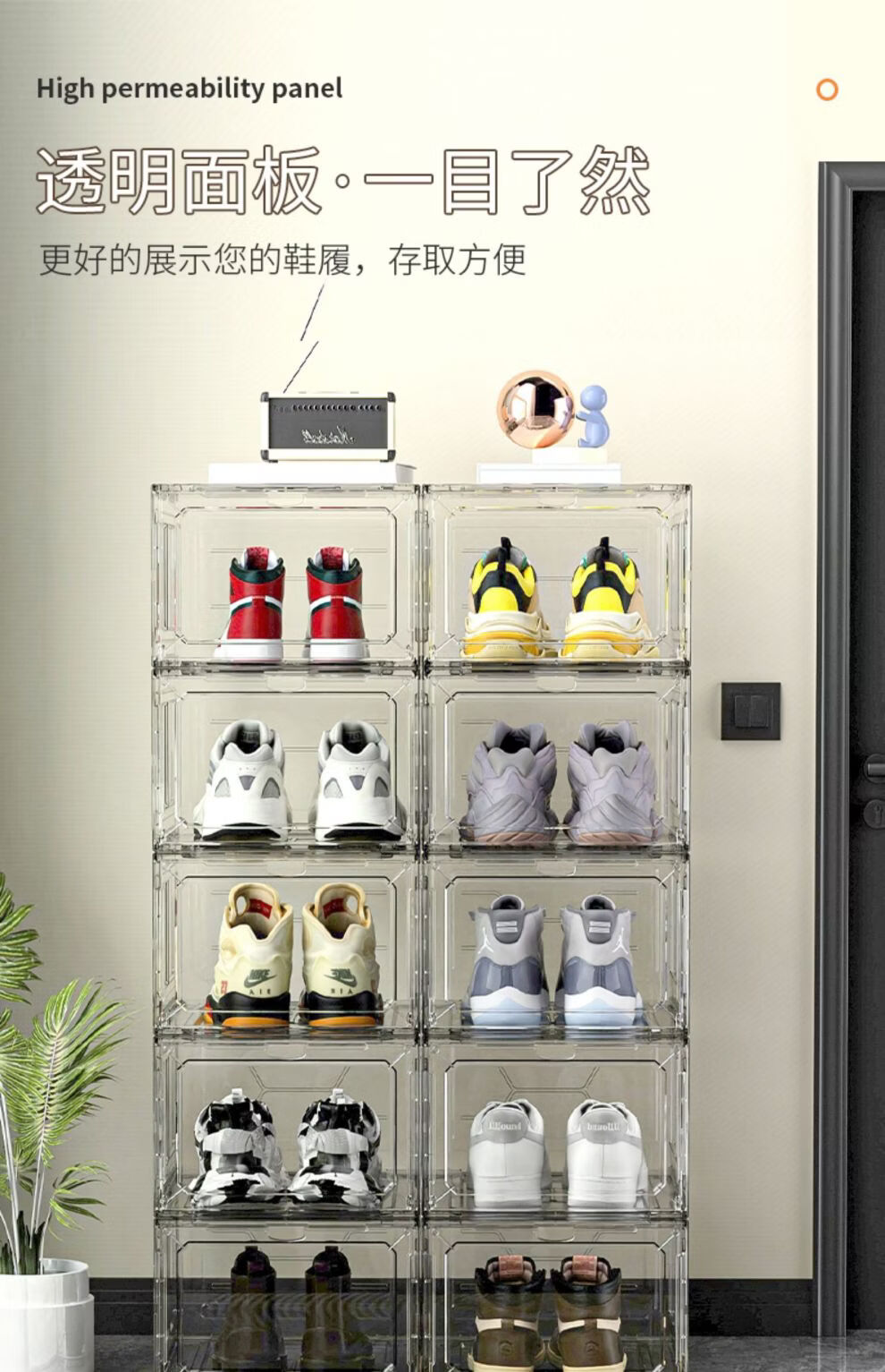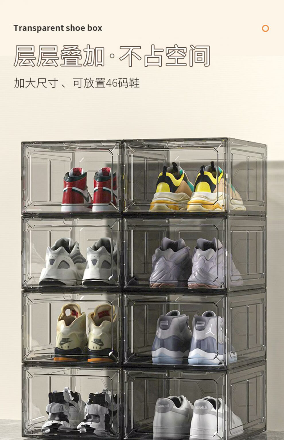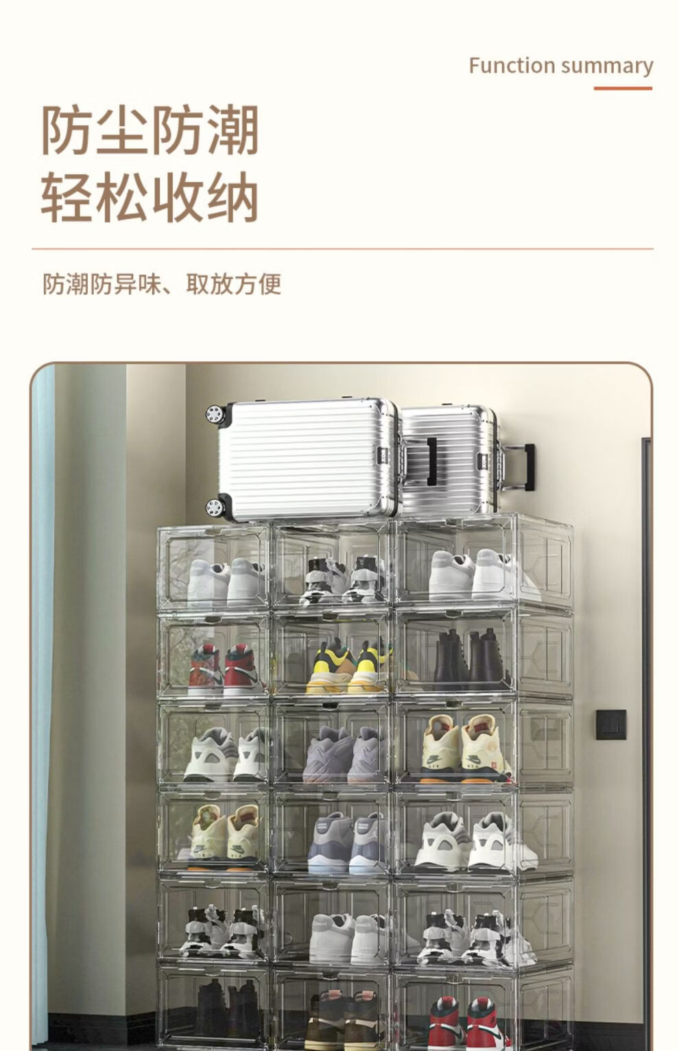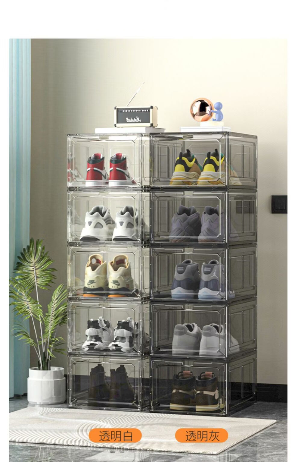 Shijanu transparent shoe storage box dust-proof hard plastic shoe cabinet artifact super space-saving large-capacity sneaker rack at the dormitory door white black 20 pieces_10 white 10 black 34.8x27x18.5cm