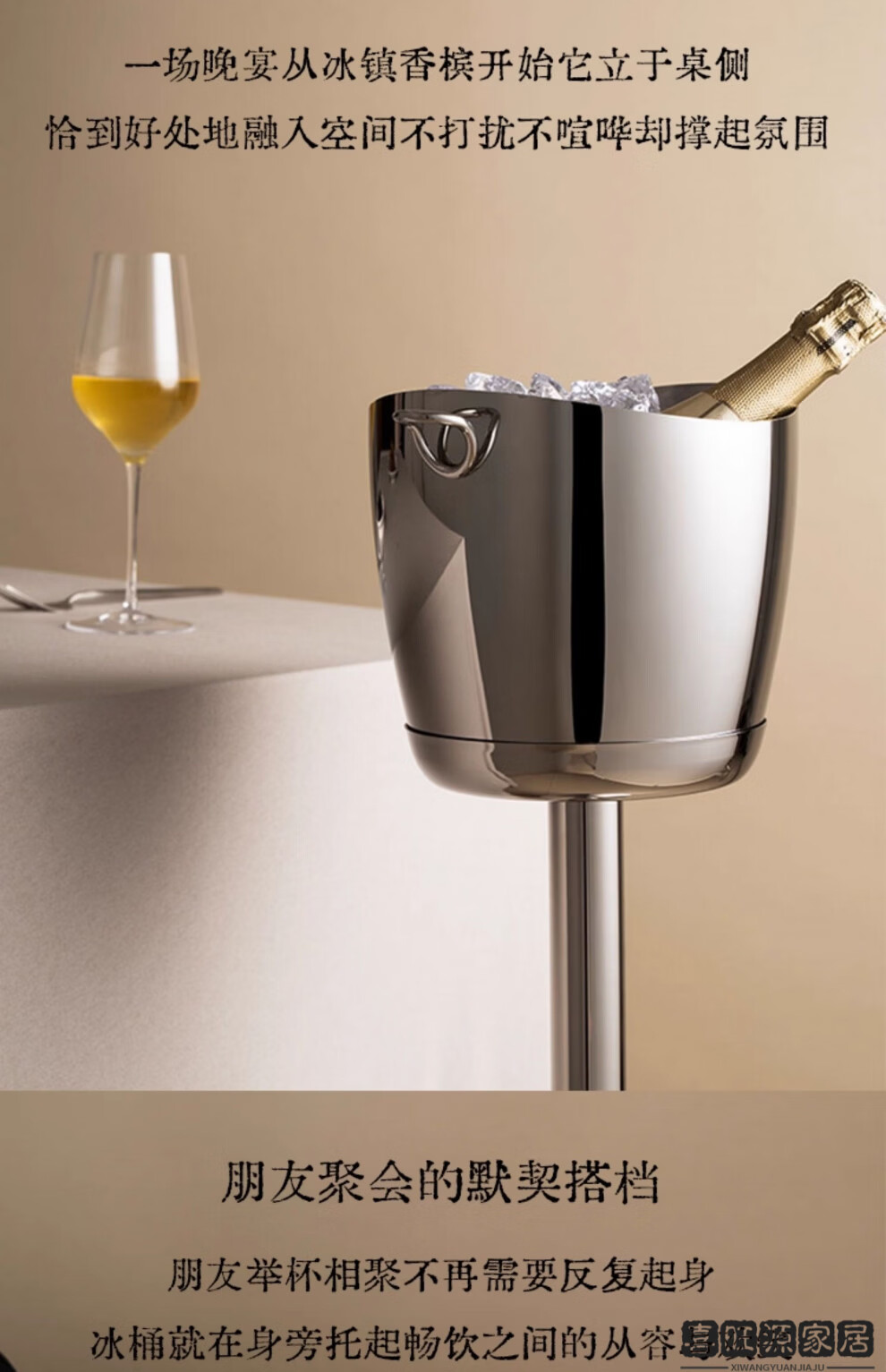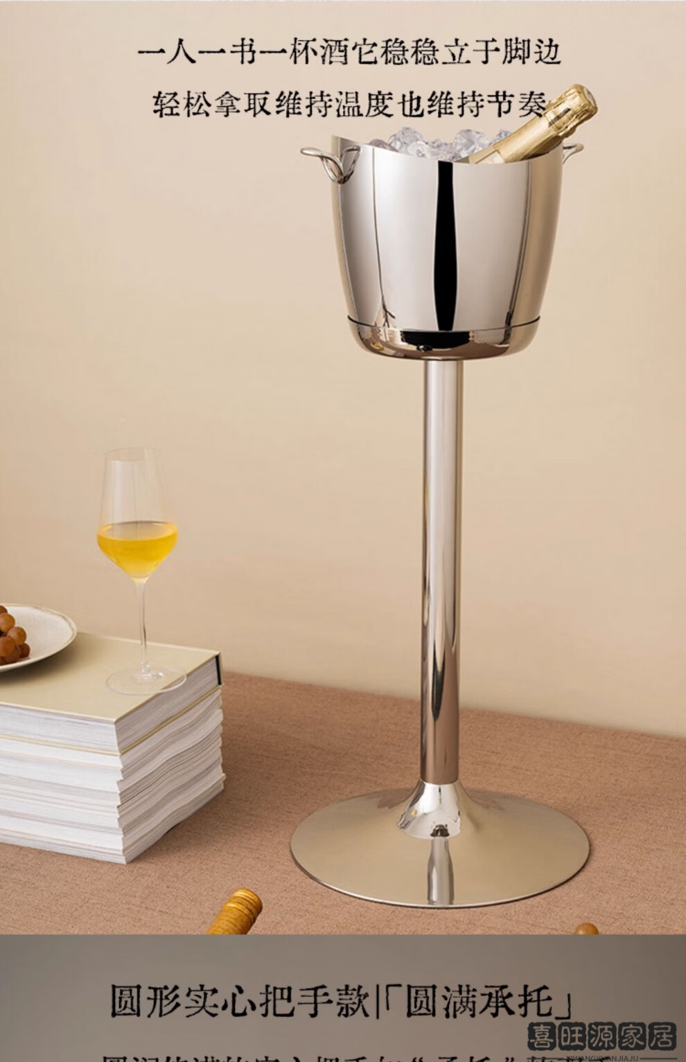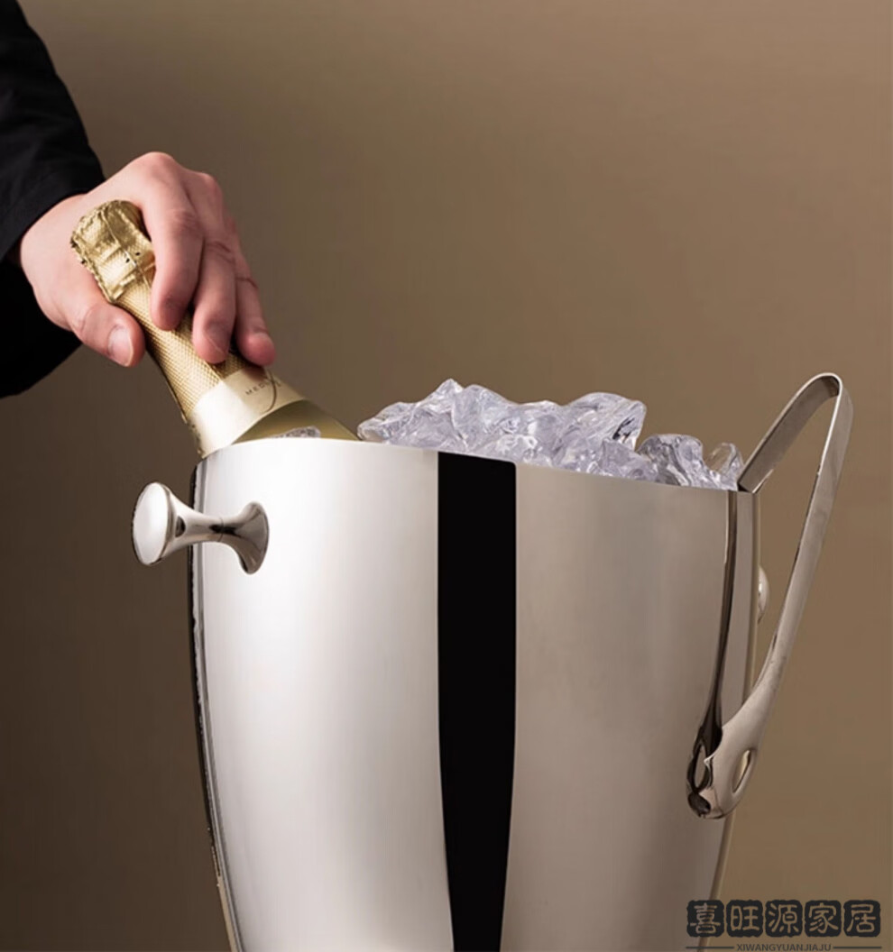 MPPMCK Nordic personality 304 stainless steel ice bucket champagne stainless steel ice bucket ice wine rack red wine food ring ice bucket + floor-standing wine rack pole 63cm