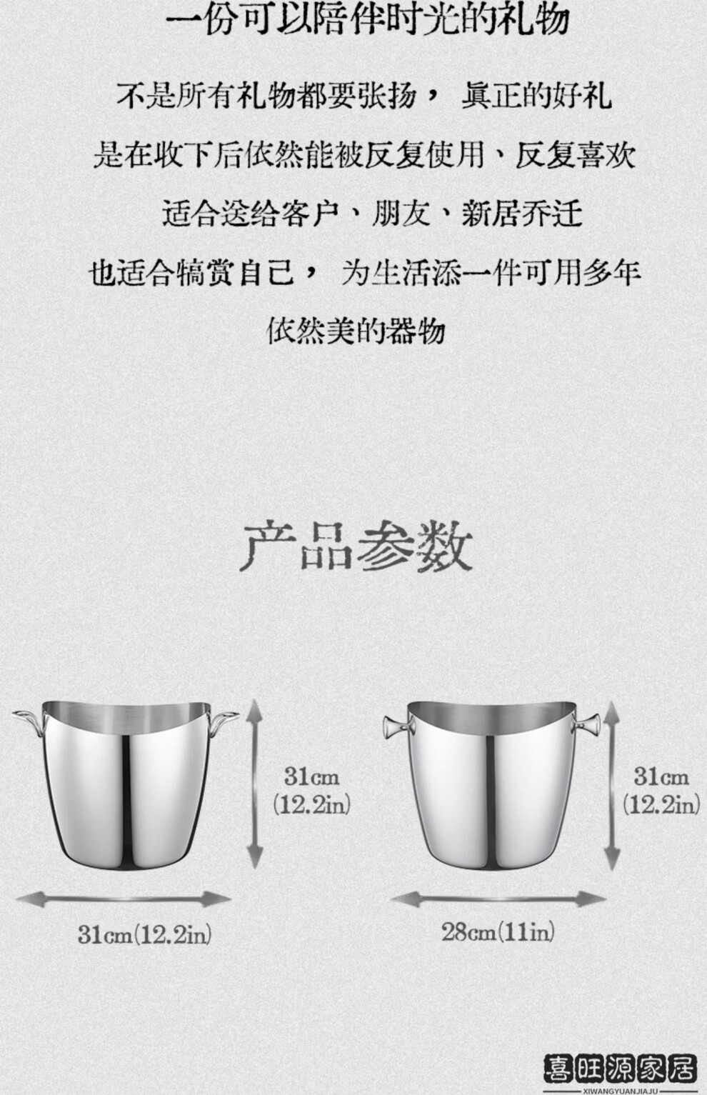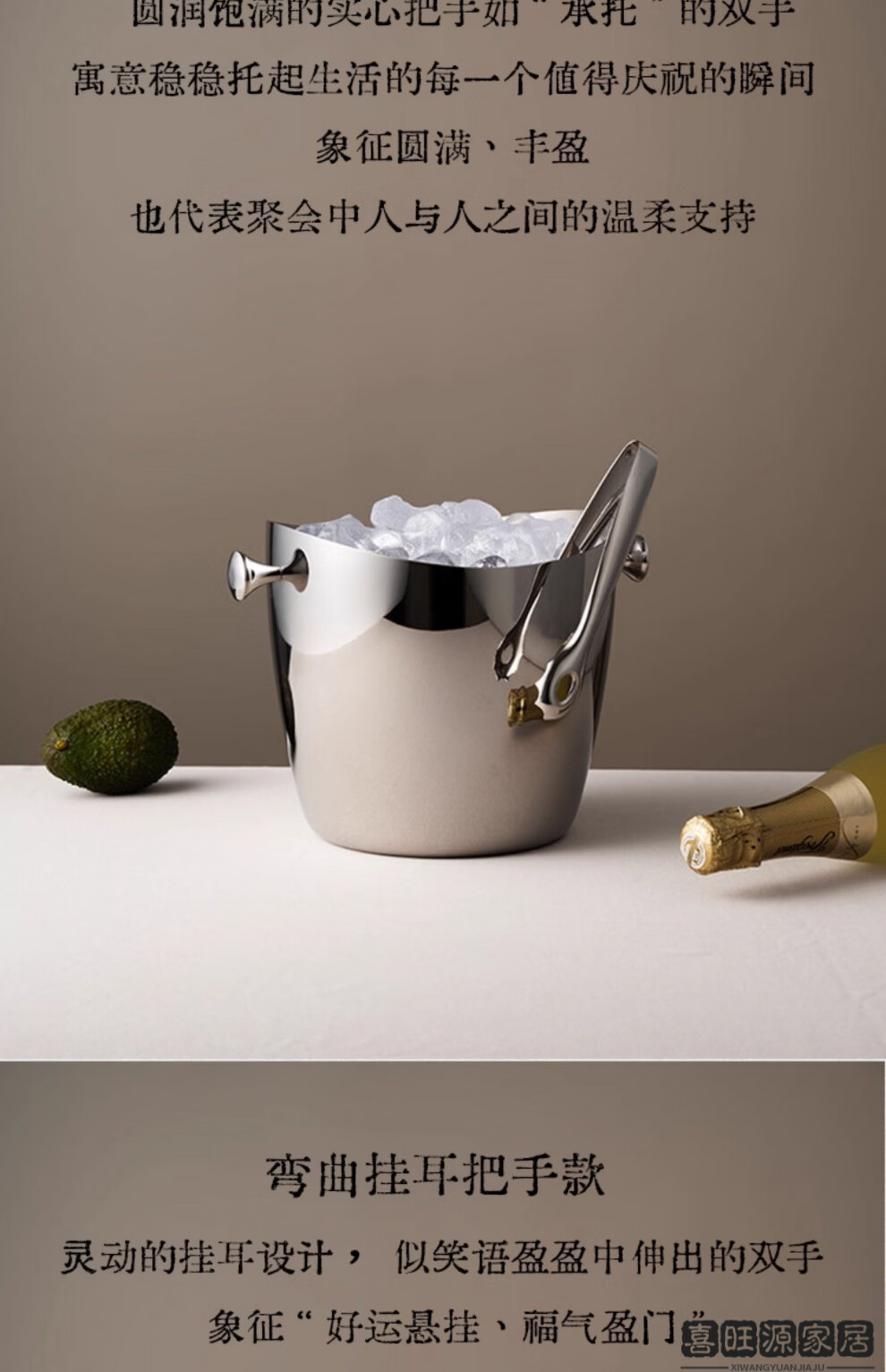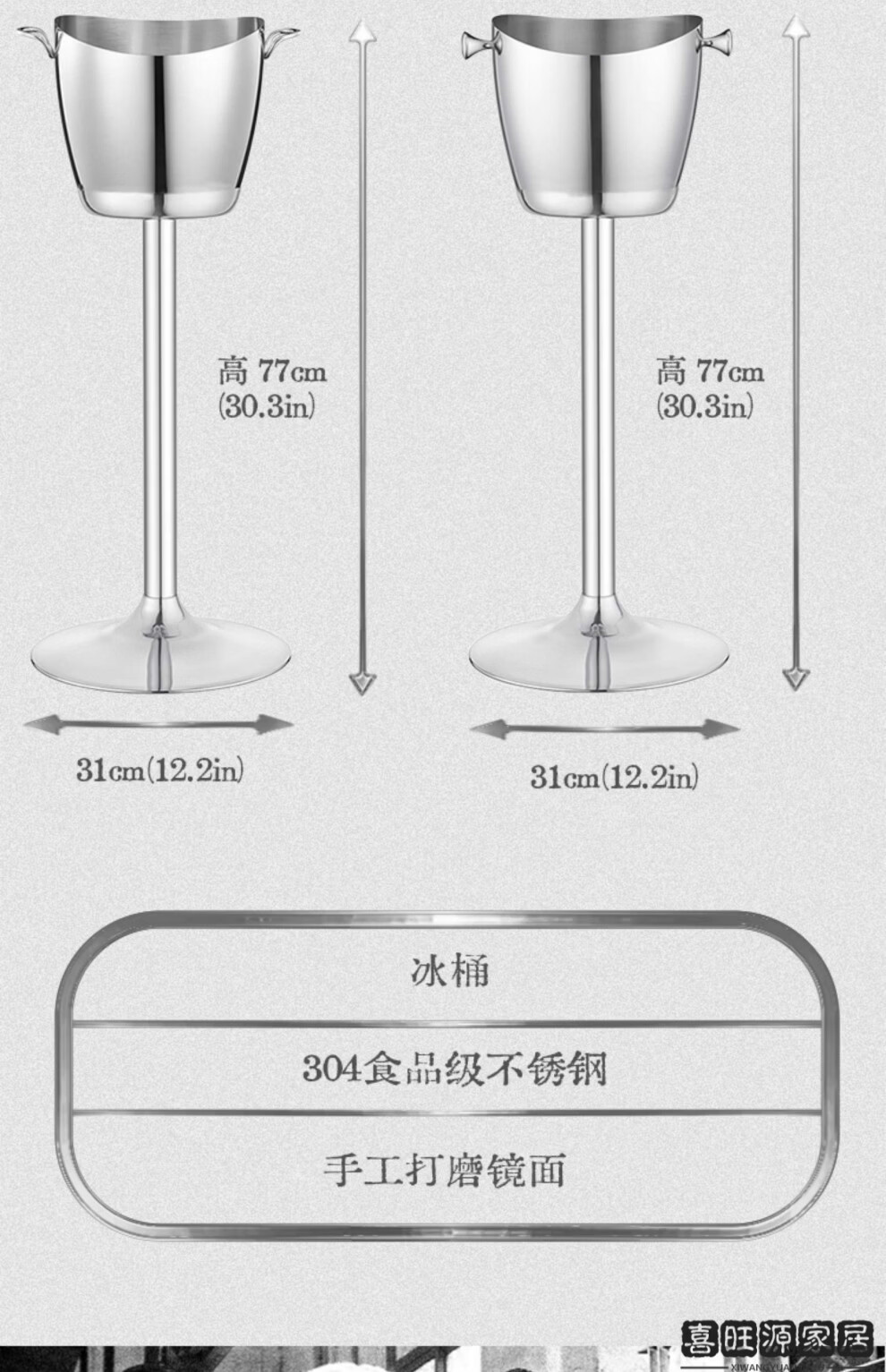 MPPMCK Nordic personality 304 stainless steel ice bucket champagne stainless steel ice bucket ice wine rack red wine food ring ice bucket + floor-standing wine rack pole 63cm