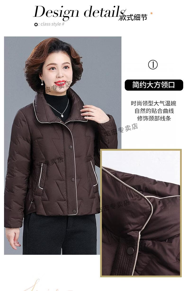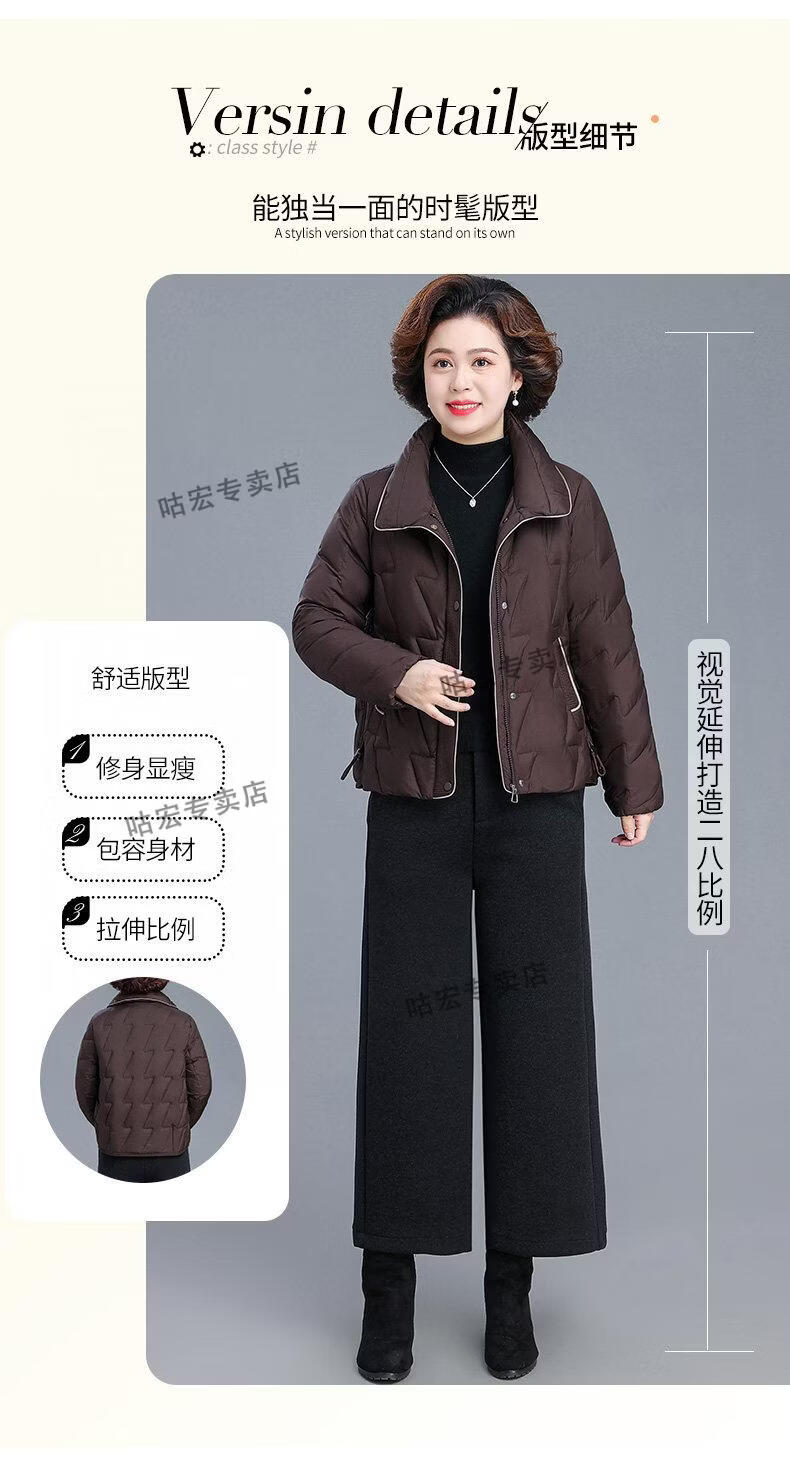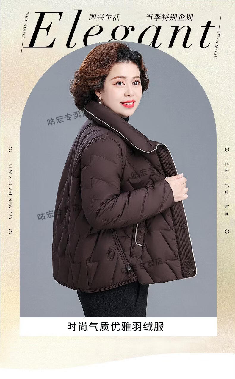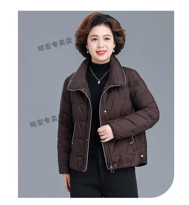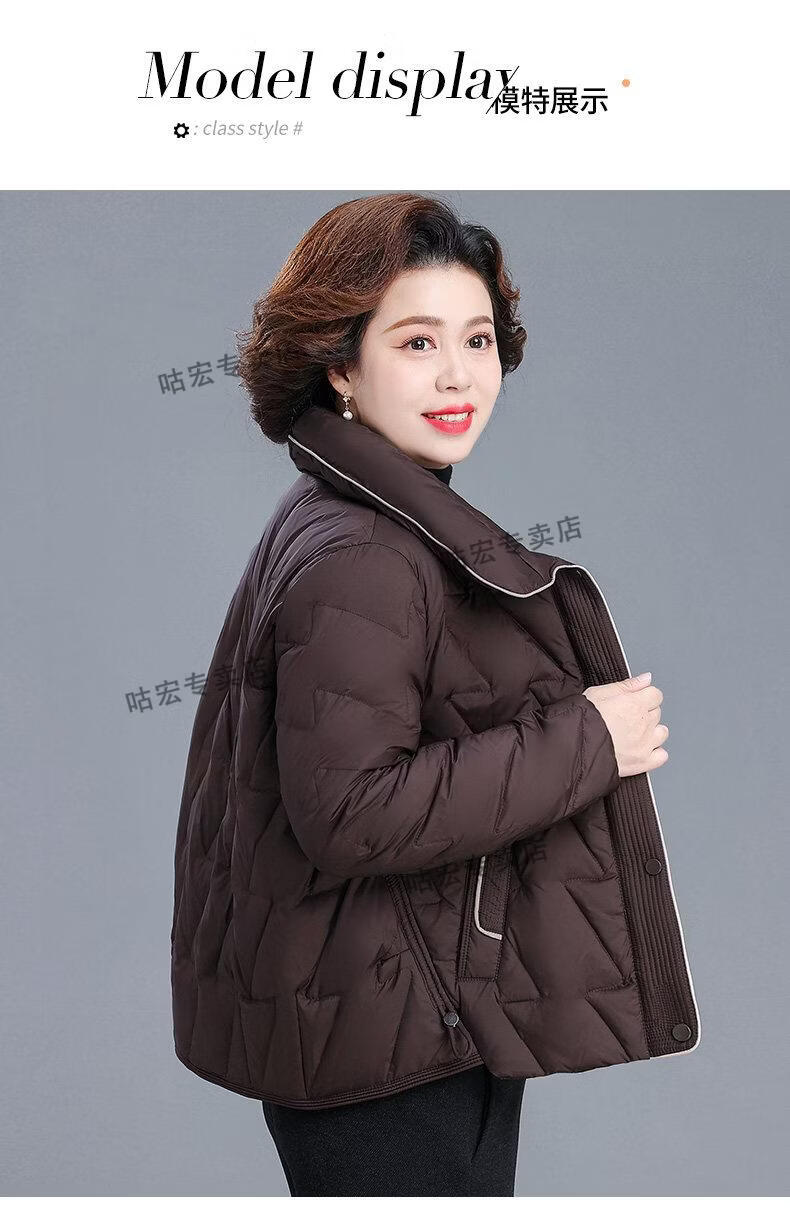 Yalu Light and Thin 2026 Middle-aged Mom Winter White Duck Down Down Jacket Temperament Looks Young, Middle-aged and Old Women Autumn and Winter Jacket Brown_Freight Insurance_Quality Guarantee L_Recommended 85-105Jin Jin equals 0.5 kg