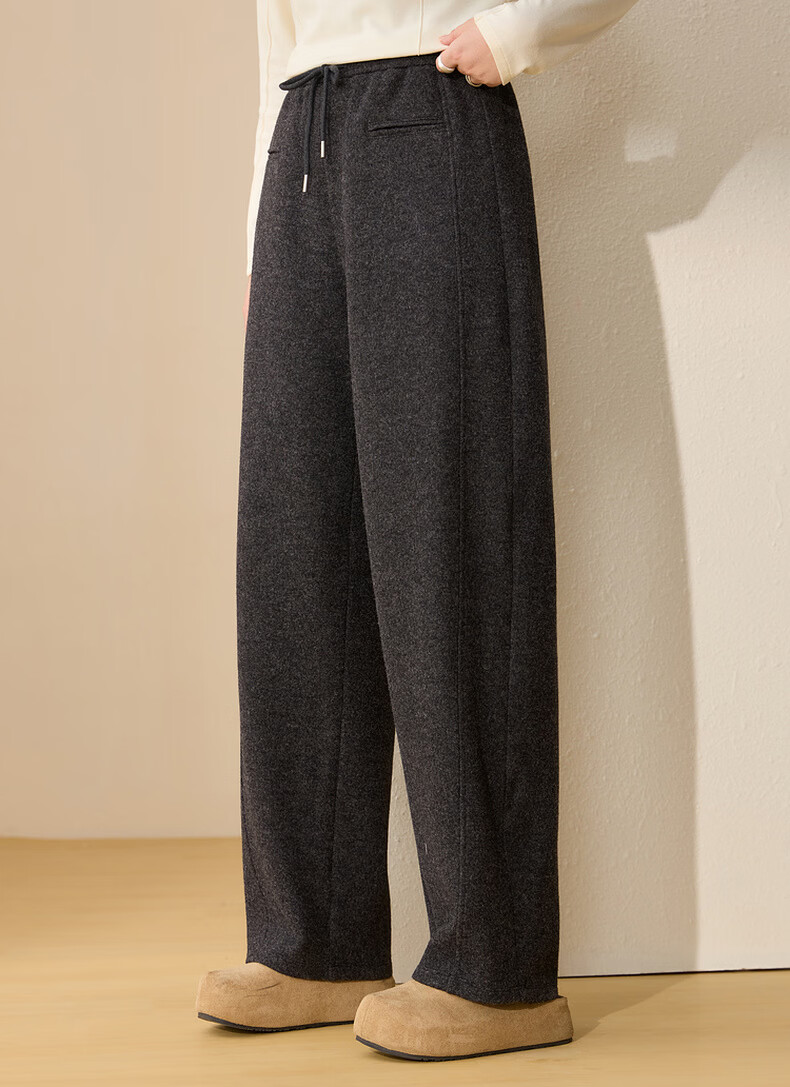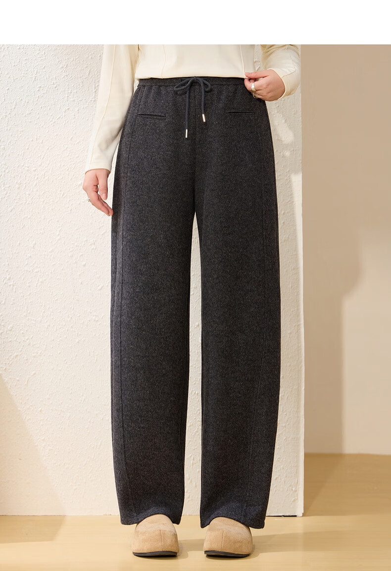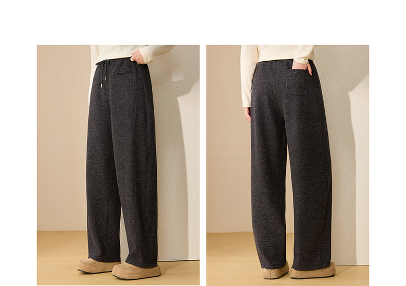 Xianlixiu comfortable warm velvet pants plus size women's simple straight pants fat mm2025 winter new style 4974 dark gray L
